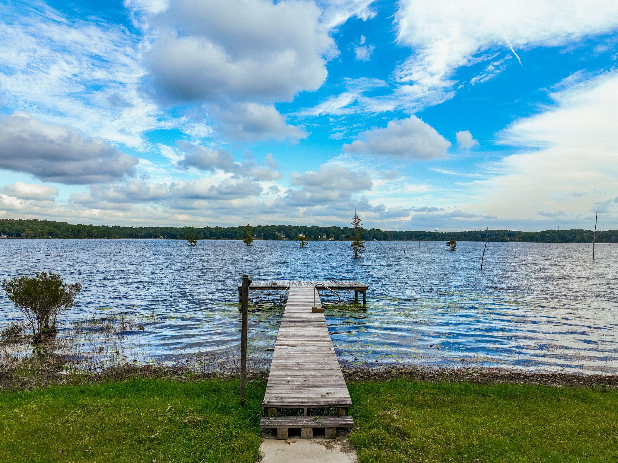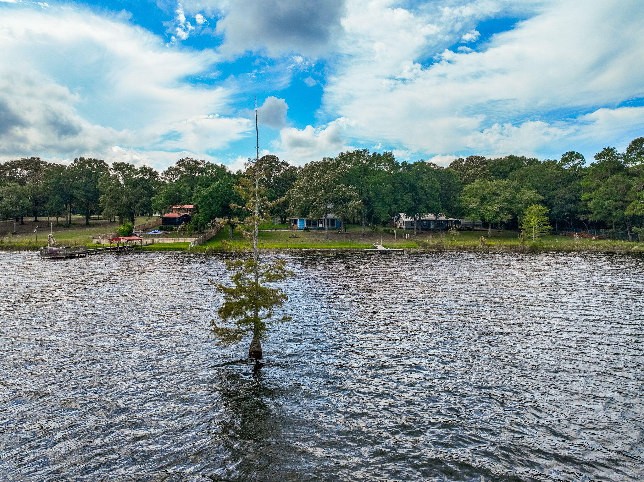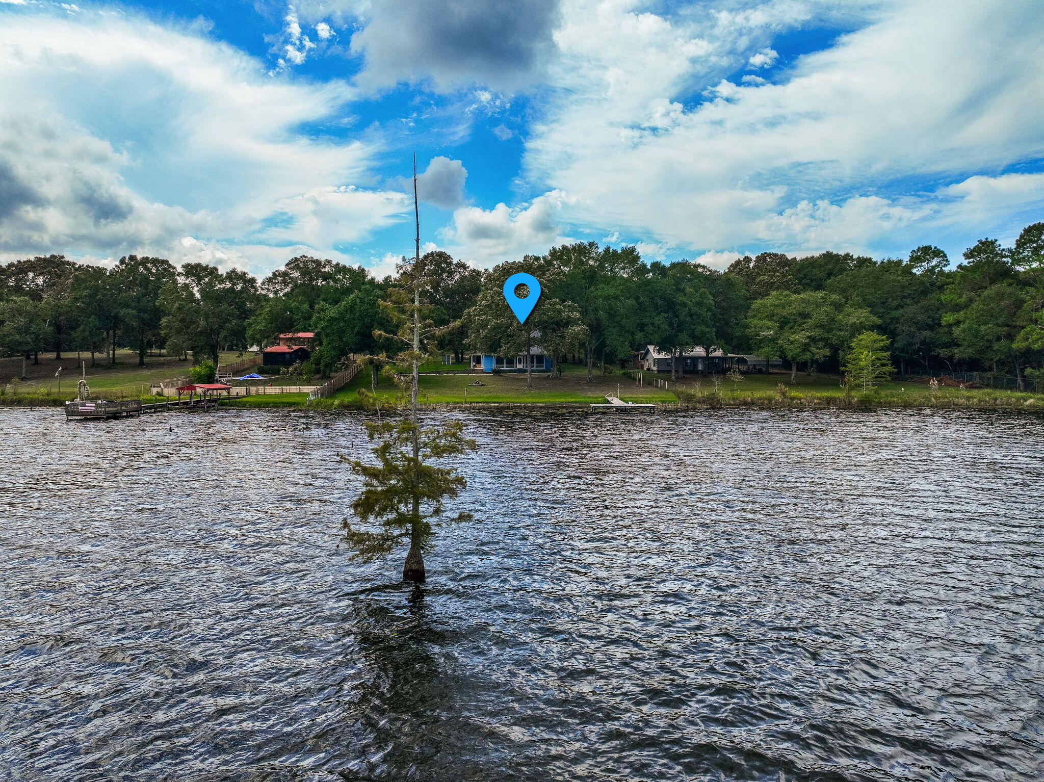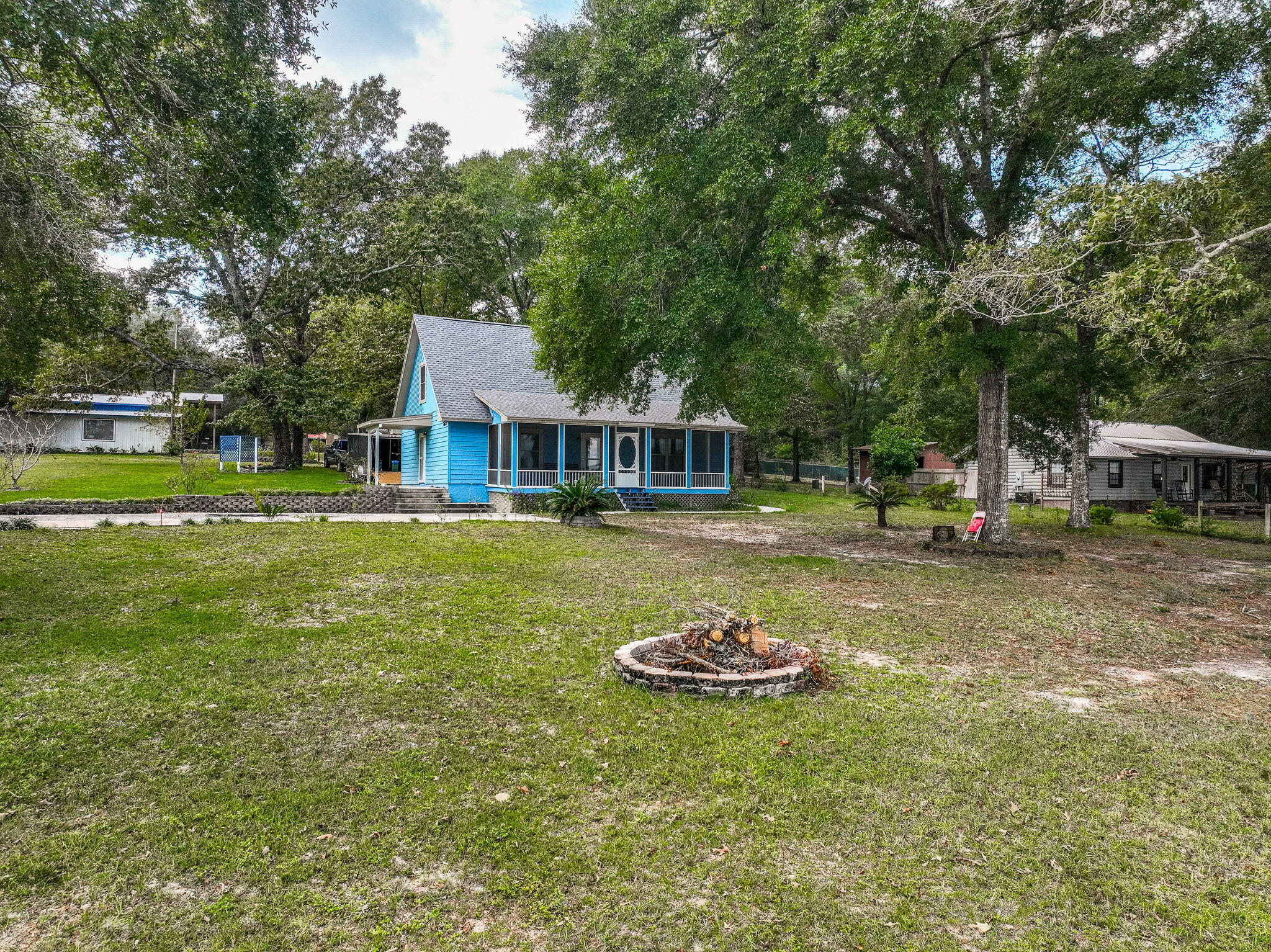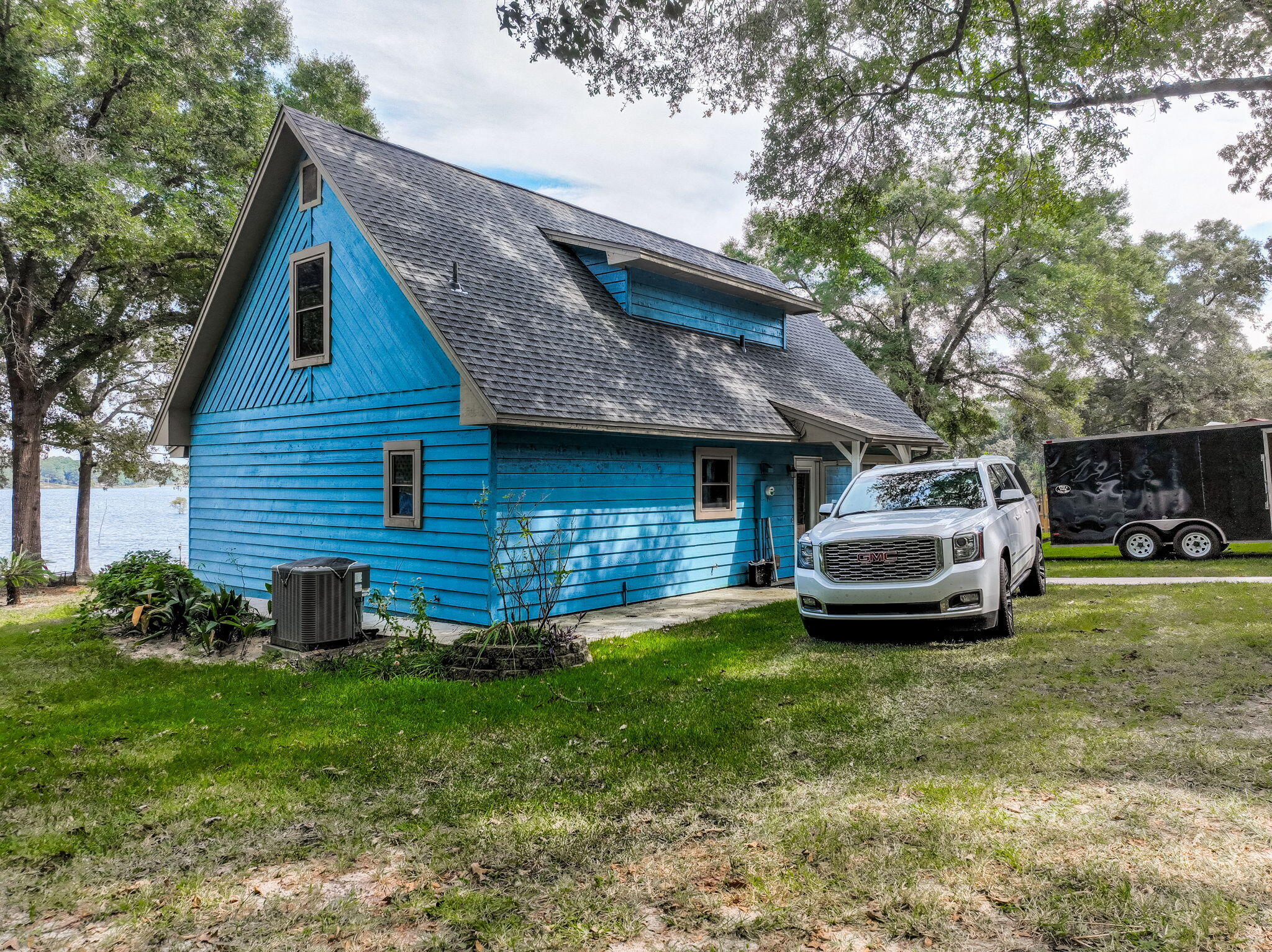 Rare opportunity to own a LAKESIDE RETREAT nearly 2 acres of fully fenced waterfront property on Lake Holley, a 400-acre fishing lake known for trophy bass, bream, and bluegill. This two-story home offers a functional layout with a fully updated kitchen, tile flooring throughout the main level, and hardwood stairs leading to two spacious upstairs bedrooms. The main-floor primary suite provides convenient single-level living, and large windows offer peaceful lake views and natural light. A screened-in back porch overlooks the water, while the private dock is ideal for fishing, kayaking, or simply enjoying the sunset. A detached structure--formerly a she-shed and now accessed by a sidewalk--offers excellent potential as a lock-out guest suite, artist studio, or a short or long-term rental. Multiple outbuildings and covered carports offer storage, workshop potential, and parking for RVs or extra vehicles. With no HOA and endless flexibility, this property is perfect as a full-time residence, weekend getaway, or investment opportunity just minutes from DeFuniak Springs.