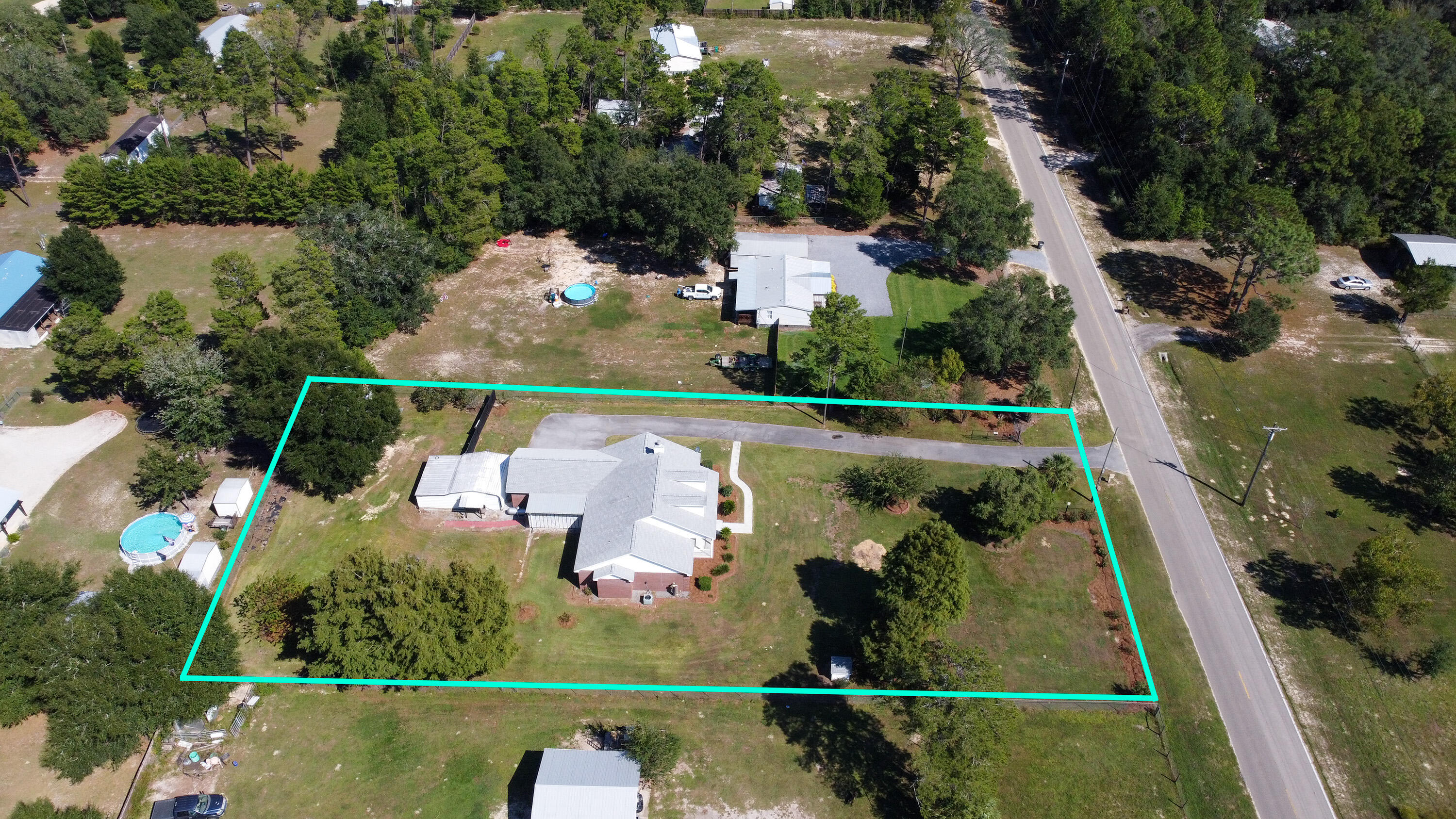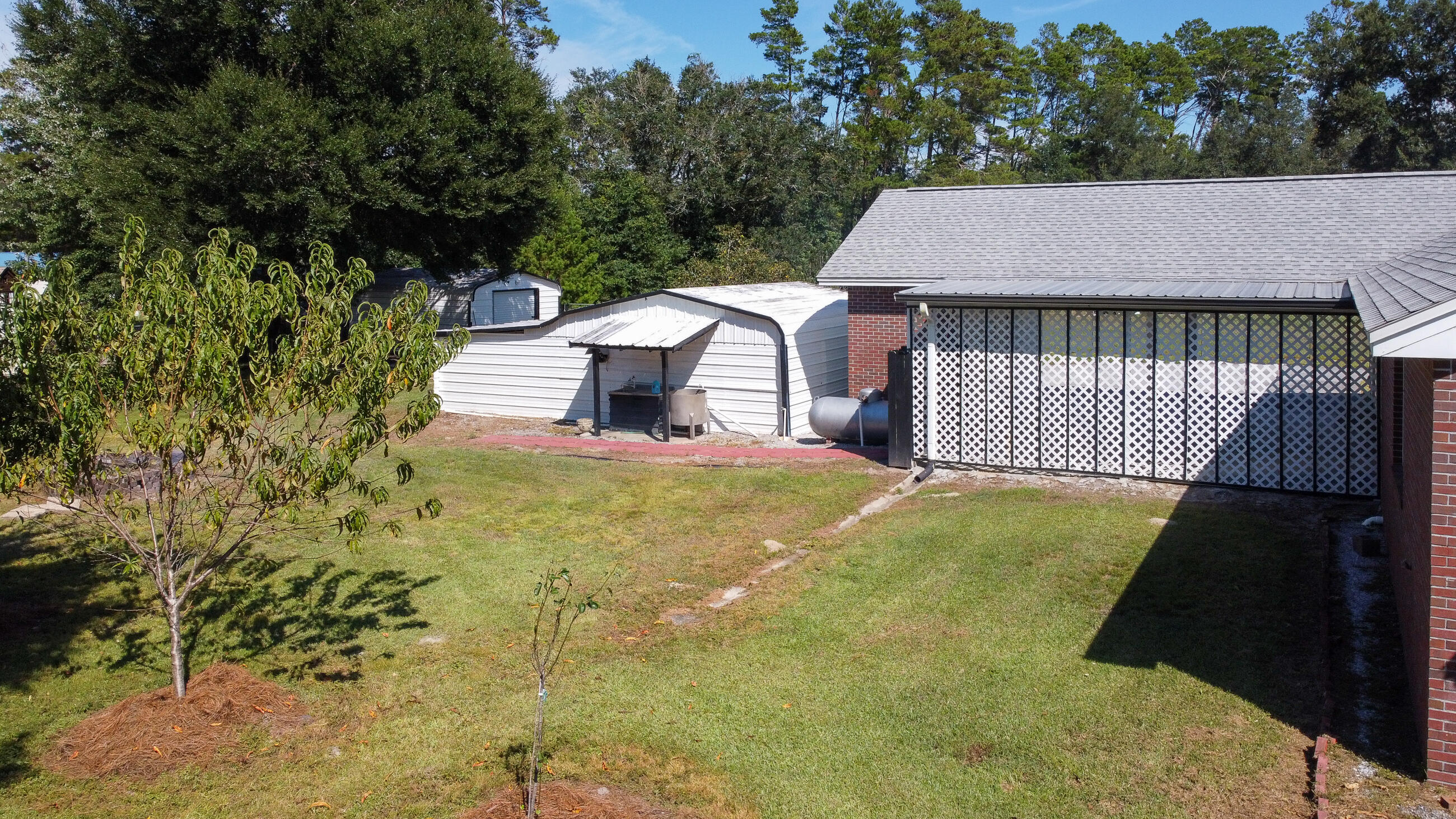 Your Peaceful 1-Acre Retreat - Just Minutes from Town. This all-brick, custom-built 3BR/2BA home sits on a nicely landscaped 1-acre lot in the Sand Hills of Northern Bay County and offers the perfect blend of comfort, function, and country charm. Lovingly maintained by its original owner, this property is loaded with thoughtful details inside and out. Step inside to find a spacious great room with a cozy fireplace and newer plank flooring, a bright kitchen with island and breakfast nook, and an oversized laundry room with a huge wall to wall pantry you'll love. The large primary suite features two walk-in closets and a large double vanity, providing plenty of space to spread out. Outside, enjoy peaceful mornings on the lovely back or front porch overlooking the fenced yard. The property is equipped with an auto-opening front gate, sprinkler system, two sheds, and an oversized 2-car carport with attached storage/workshopideal for projects, hobbies, or extra storage. The owner once cultivated a thriving garden here, making this a wonderful option for food-to-table living. With County zoning, you can even bring your chickens! Tucked away on a paved road yet still convenient to town, this property offers the best of both worldsspace, privacy, and freedom. A true must-see for anyone seeking a well-built home with room to live, grow, and enjoy. (All sizes approximate and taken from public records, buyer to verify any details buyer deems important)