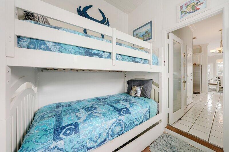 Your deeded Beach Access is just a short walk from this beautiful Caribbean beach home boasting 2 Bedrooms, 2 Full Baths PLUS Bunk Room in the wonderful beachside neighborhood of Terra Cotta Terrace is now available for families to create new beach memories! Tiled roof is only 6 years old with newly painted exterior and newer AC units and irrigation pump! This immaculate home features tall ceilings and tile flooring throughout. Enjoy a gas fireplace on cooler evenings. Take a quick walk to the white crystal sand beach and arrive within minutes! The Terra Cotta community offers a heated pool, volleyball court, tennis courts, dog park, and grilling area with all the amenities of The Enclave included. This home is being sold fully