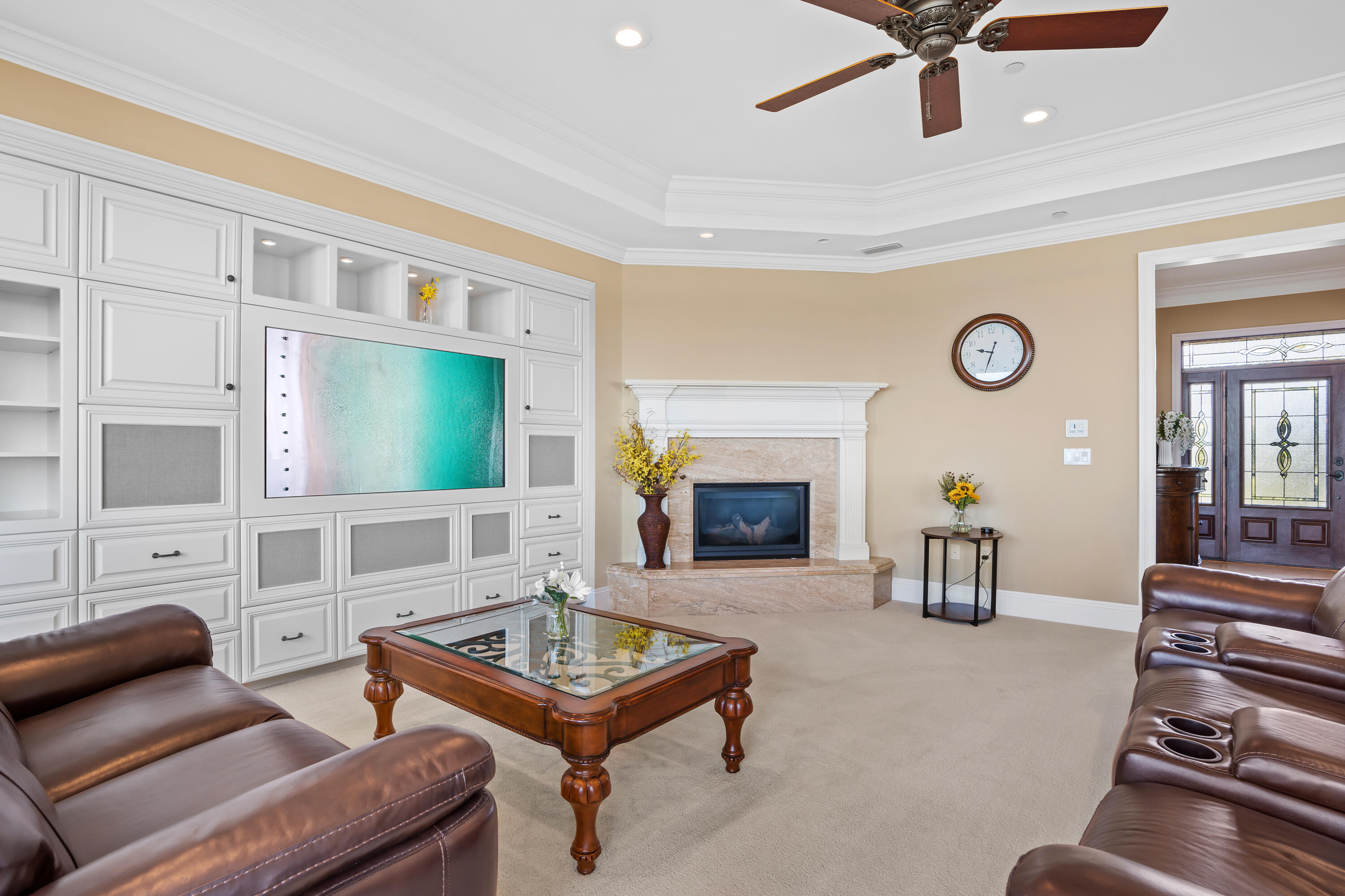 | INTERIOR | Basement Finished,Breakfast Bar,Built-In Bookcases,Ceiling Crwn Molding,Ceiling Raised,Ceiling Tray/Cofferd,Elevator,Fireplace Gas,Floor WW Carpet,Kitchen Island,Lighting Recessed,Pantry,Shelving,Split Bedroom |