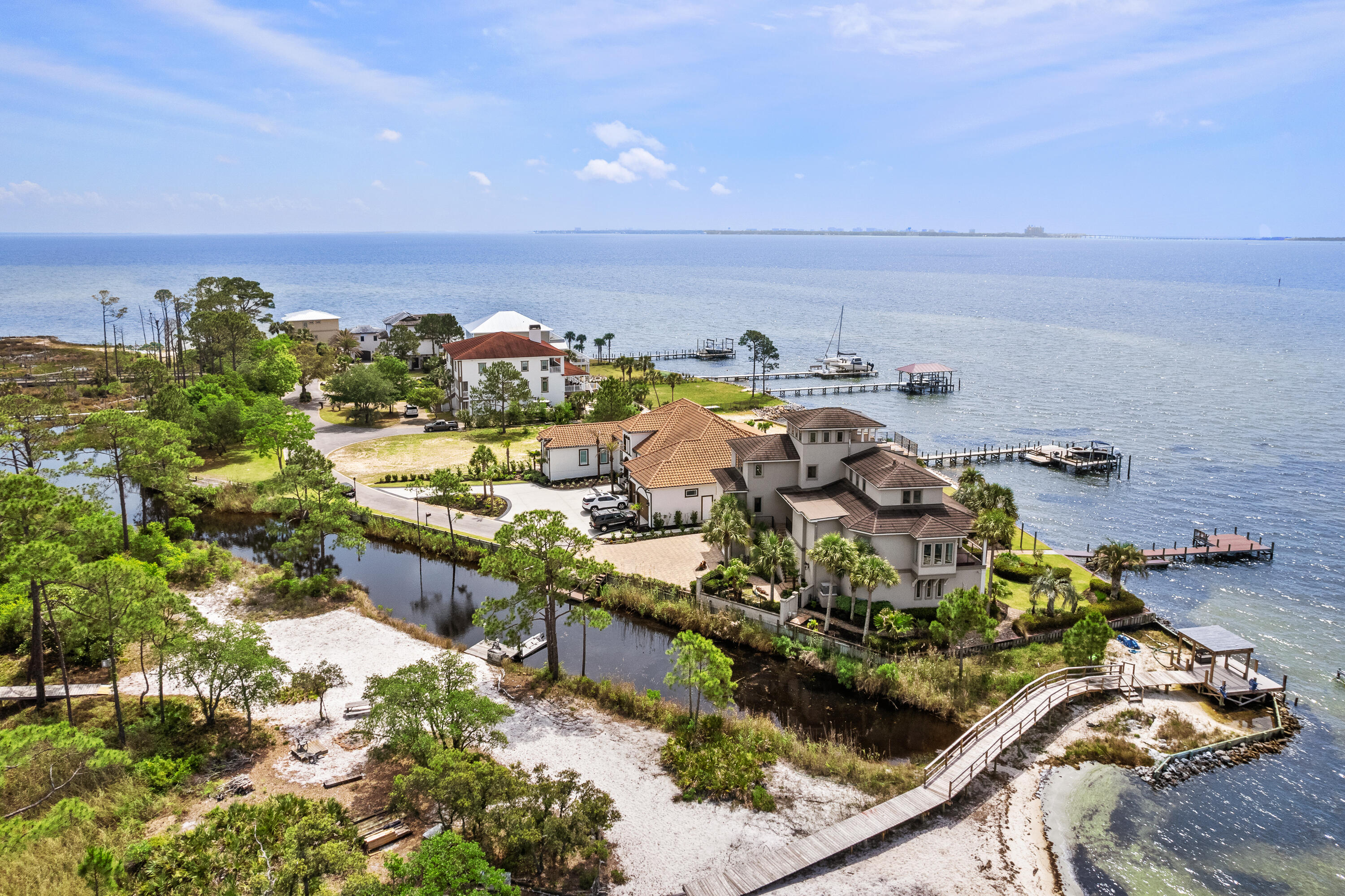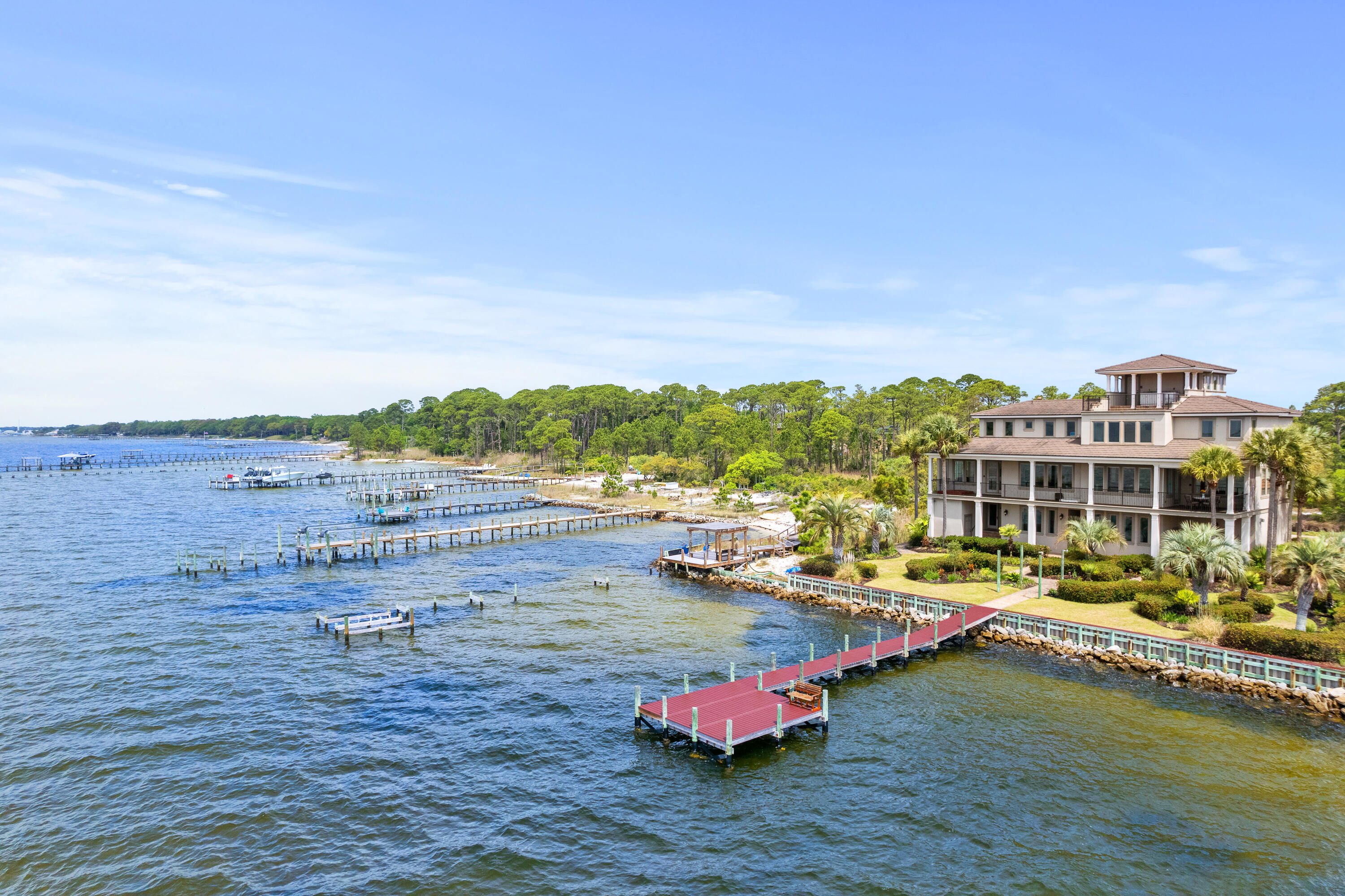 Stunning Waterfront Luxury Home with Panoramic Bay Views!Imagine waking up every day to breathtaking panoramic views of Choctawhatchee Bay. The best part? You can enjoy these stunning vistas from every angle on the top floor of this exceptional home. Whether you're sipping your morning coffee or unwinding at sunset, the views are nothing short of spectacular--stretching from Shalimar and Fort Walton Beach to Destin and the Mid-Bay Bridge.With over 100 feet of deeded waterfront access and two private docks, this property is nestled within a gated island community, offering both privacy and exclusivity. You'll be just minutes from beaches, airports, military bases, and shopping--yet tucked away from the crowds of tourists.
