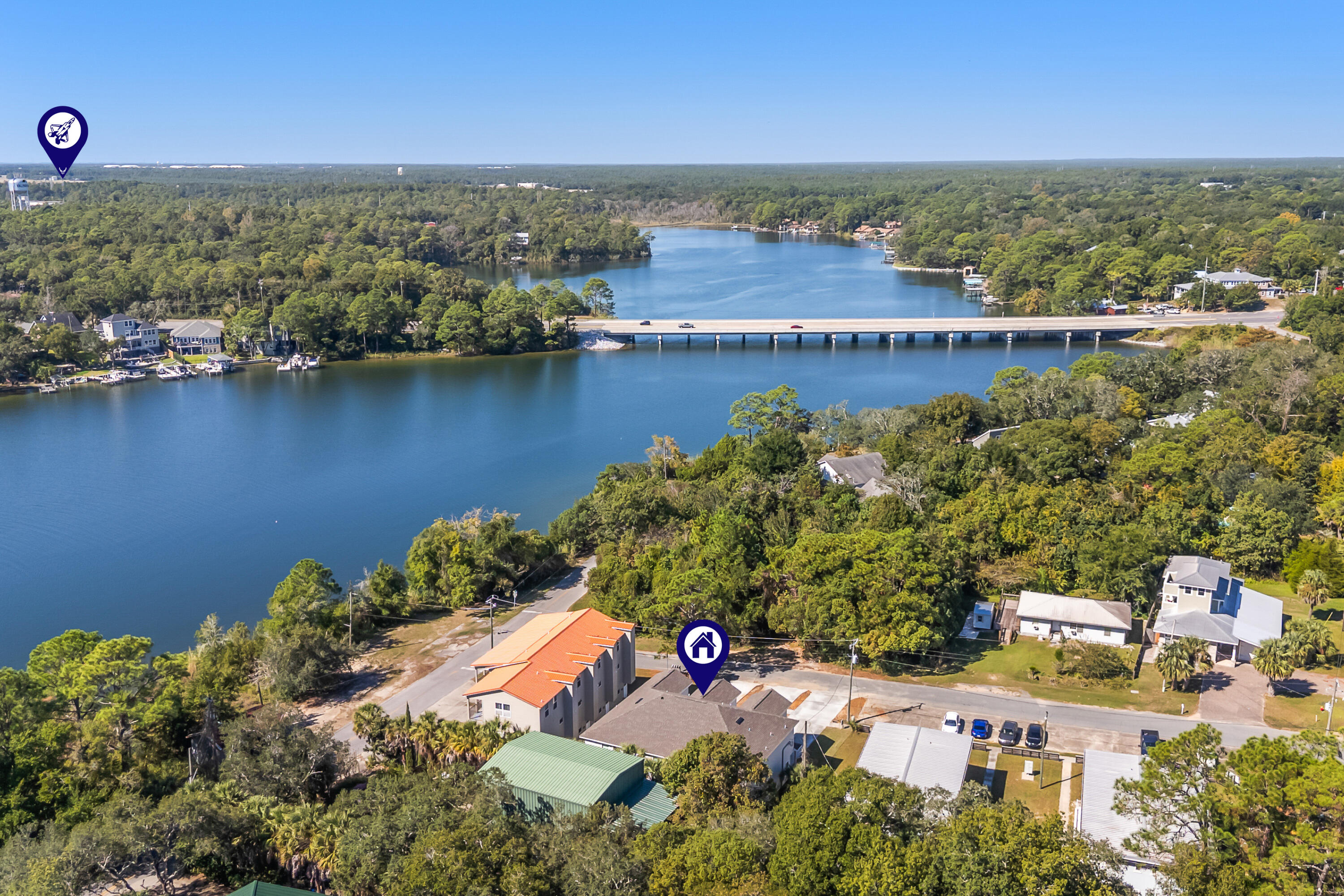 Take Hwy 20 West toward the Eglin Gate, once in Valparaiso continue turn left on North Bayshore just before bridge, take second left onto Westview Avenue, Townhomes are on your right.