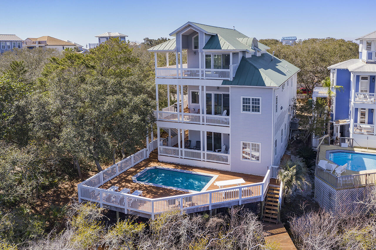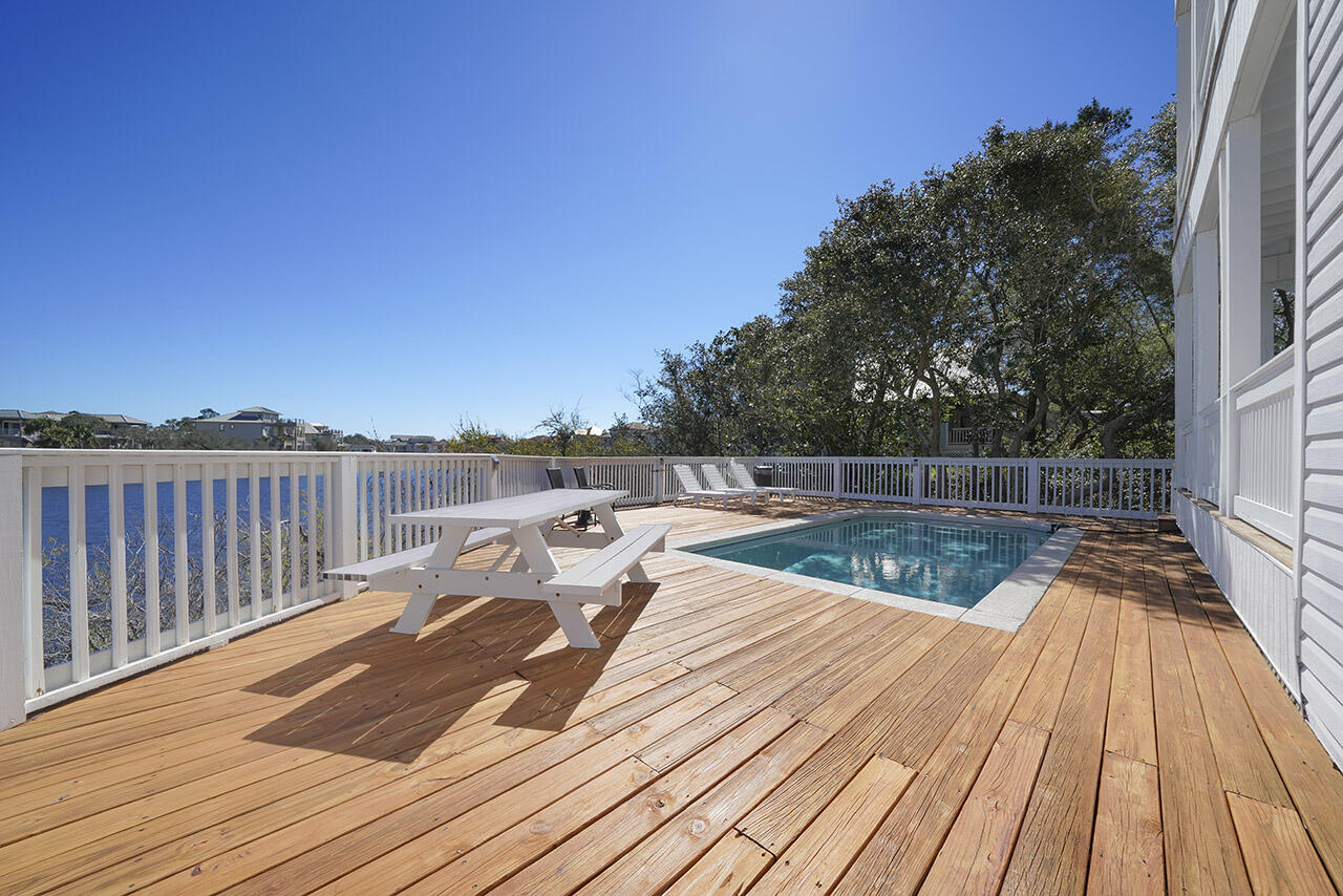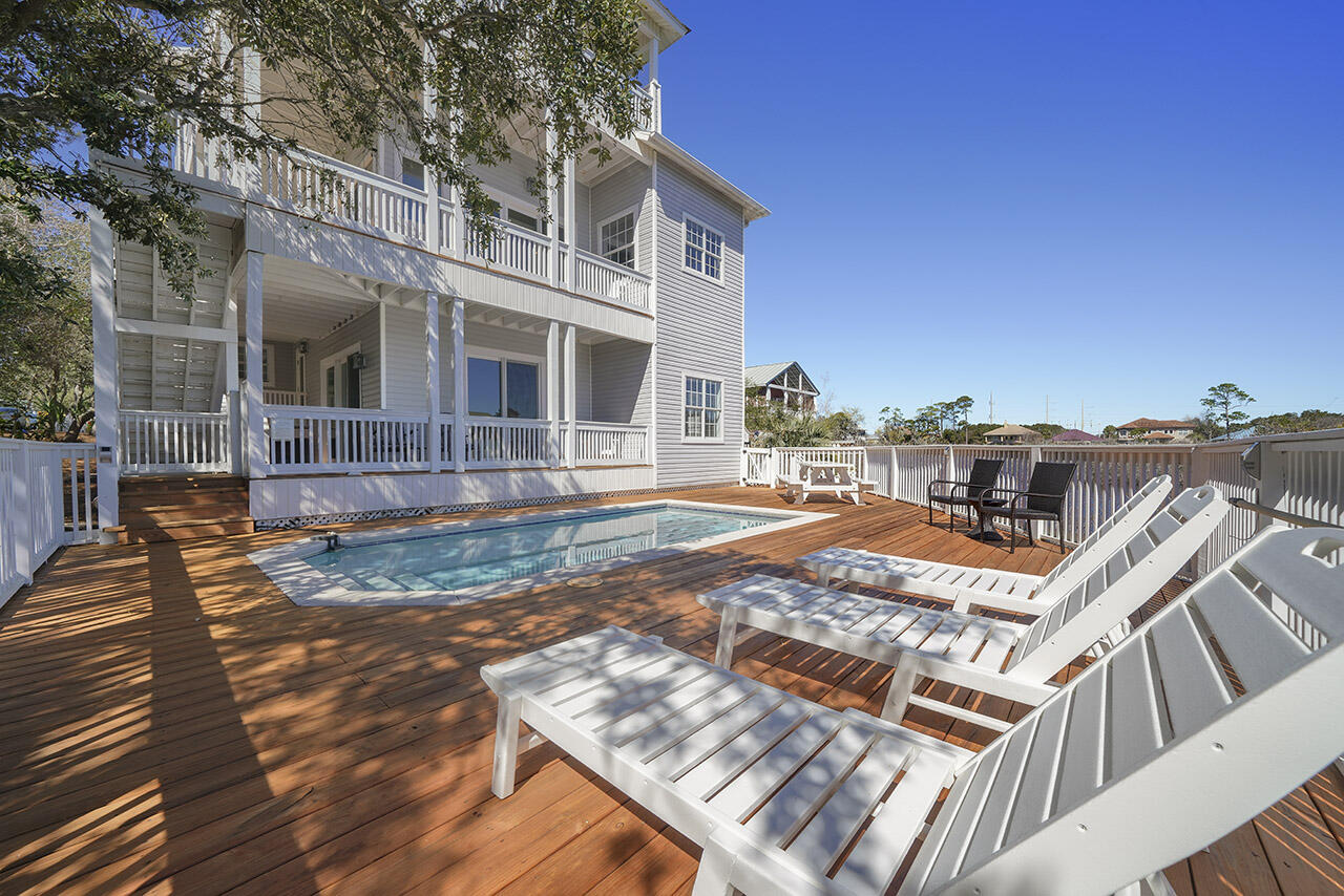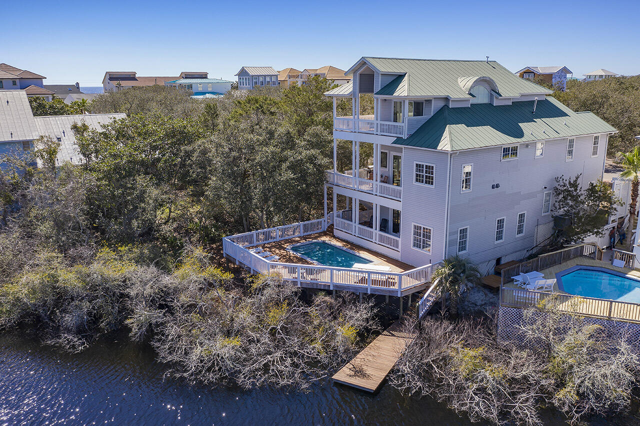 Fantastic Investment Opportunity!Beautifully furnished 5-bedroom, 6-bath home with 3 bunk areas, a private pool, and a lakeside dock in the sought-after Kokomo Kove community of Crystal Beach. The gourmet kitchen features high-end appliances, including a Viking stove and two dishwashers. Designed for gatherings, the home offers two living areas, a spacious dining room, and three wraparound balconies with tranquil lake views.Relax by the pool, fish off your private dock, and enjoy parking for five. Sold furnished (with a few exceptions); golf cart negotiable. Kokomo Kove offers private beach access and is close to Destin's top dining and shopping.