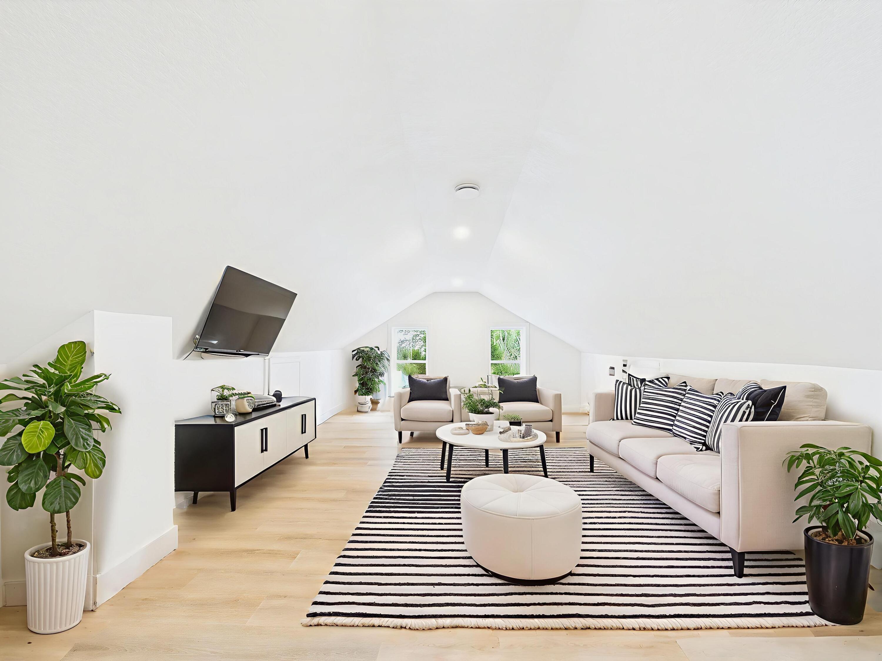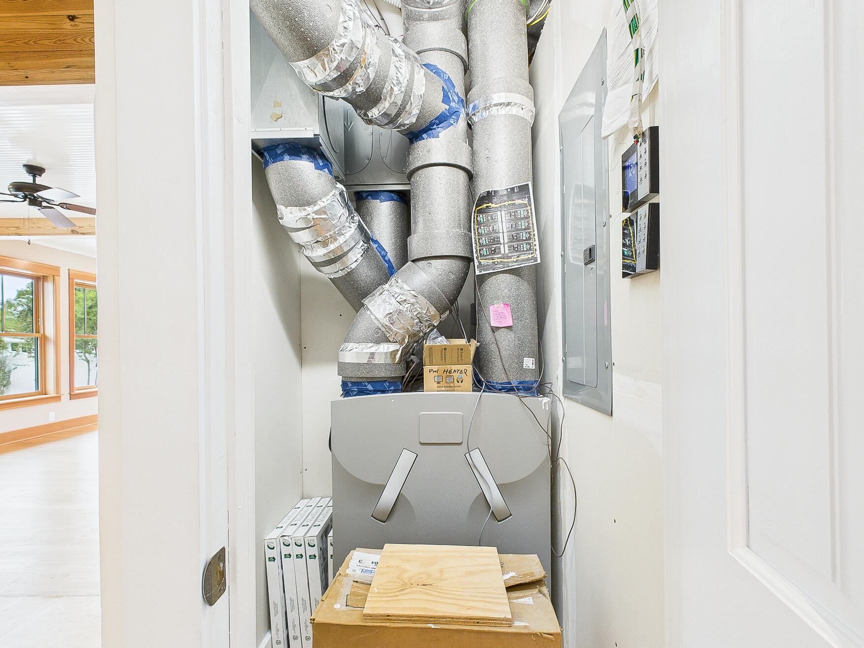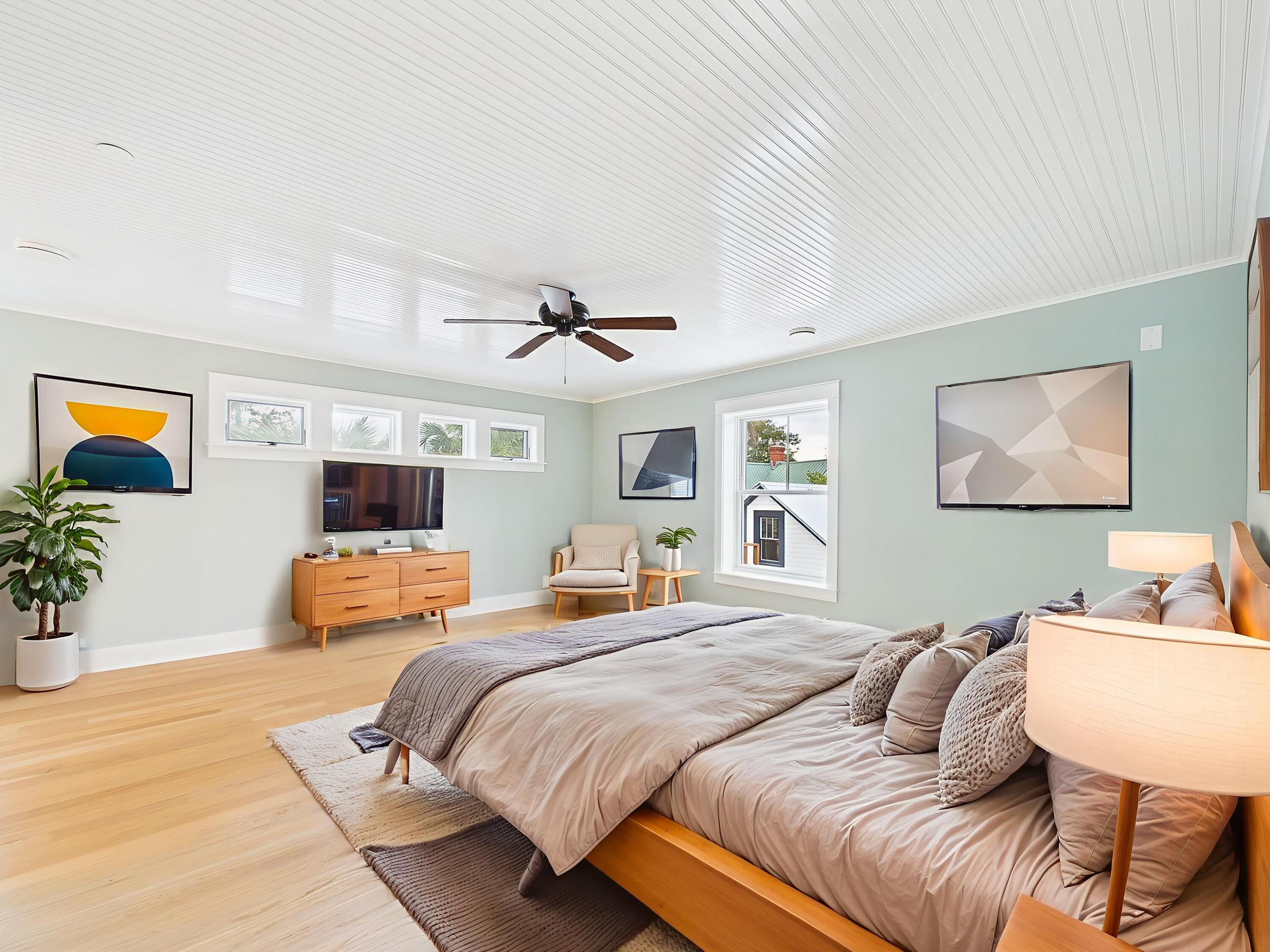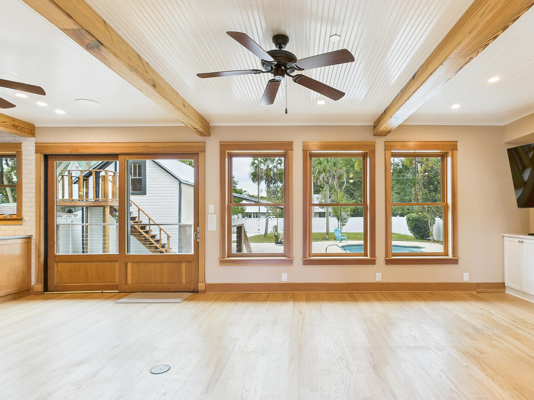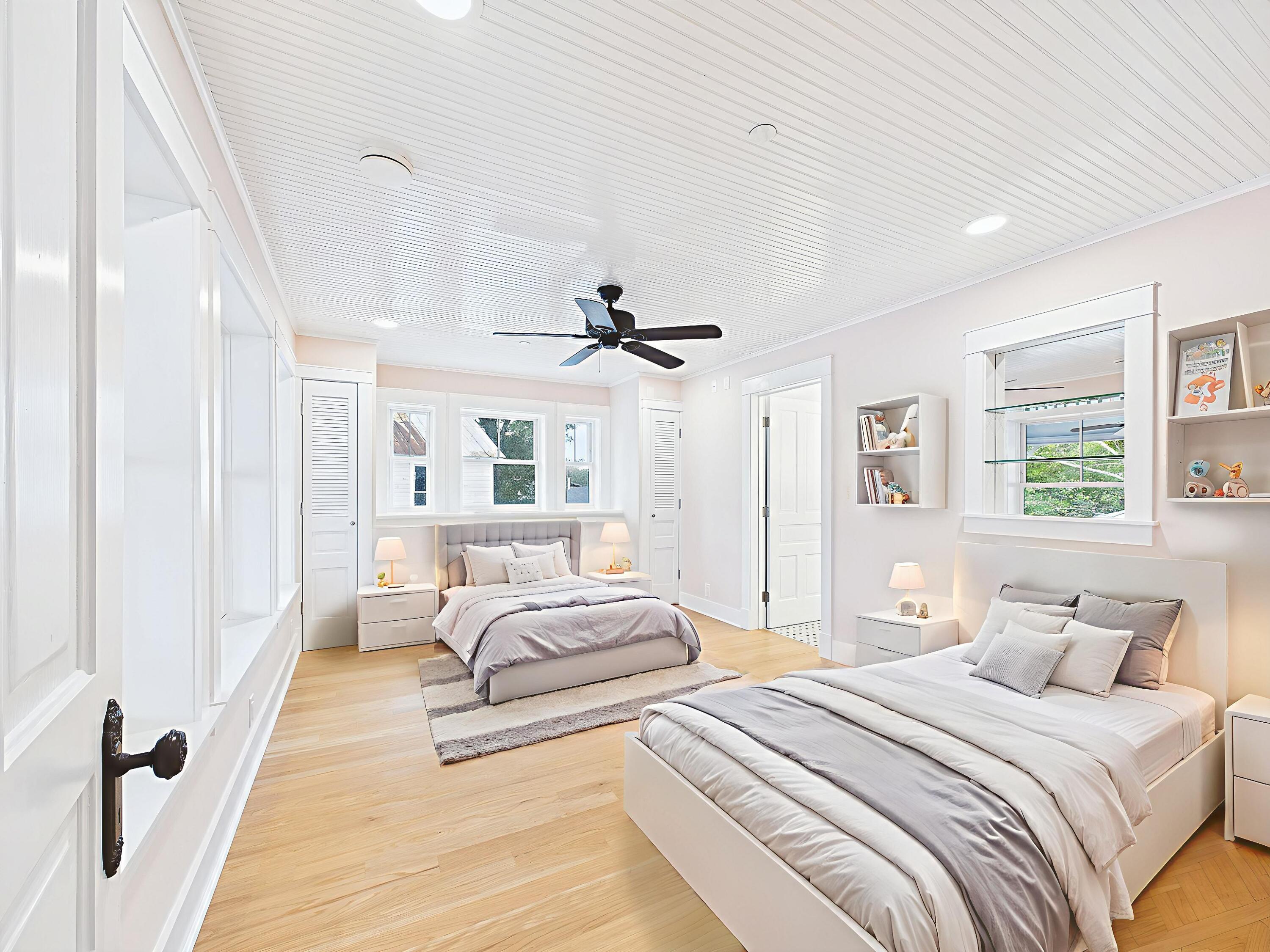 Welcome to this fully restored 1888 architectural gem blending historic charm with modern luxury, located in the heart of a thriving community poised for thoughtful growth. Originally constructed during DeFuniak Springs' founding era and once home to renowned University of Kentucky professor Robert McKnight, this one-of-a-kind residence has been meticulously reimagined with no expense spared. Spanning over 4,625 square feet of cooled living space across three beautifully finished levels, the main home features 5 bedrooms plus a large bonus room, 3.5 bathrooms, and is already plumbed for an additional full bath and half bath on the third floor. Interior upgrades include premium wood flooring, soundproof wool insulation, state-of-the-art kitchen appliances with gas range and hood, 2 laundry rooms, and a high-end Menco fireplace with dual remotes, all framed with 2x6" construction for added strength, insulation, and soundproofingeven between interior rooms and ceilings. Enjoy outdoor living like never before with over 1,250 square feet of covered porches plus a 450 sq ft rooftop deck perfect for sunset viewing or future conversion into a rail-protected entertainment space. And for true Florida relaxation, take a dip in the custom guitar-shaped gunite pool, a nod to DeFuniak Springs' growing reputation as a North Florida music hub. This themed pool is both a showpiece and a private retreat, ideal for entertaining or unwinding under the stars. Every exterior door and window is top-of-the-line in quality, security, and soundproofing, and the NASA-donated roof insulation paired with a whole-home dehumidifier ensures year-round comfort and energy efficiency. The fully restored Carriage House, approximately 600 sq ft across two levels (uncooled but newly wired and lit), features a new concrete foundation, roof deck, and high-heat peel-and-seal metal roofing. It's primed for additional finished space, studio, or guest retreat potential. Safety and technology enhancements abound with five security cameras with lights and alarms, wall humidity sensors, a sprinkler system across all levels (currently dry for safety), and speaker wiring throughout. Additional highlights include premium kitchen cabinetry, built-ins, tankless water heater, Bidet-style commode, period-correct black gutters and downspouts, and a landscaped, fenced backyard with security gates and keyed access.