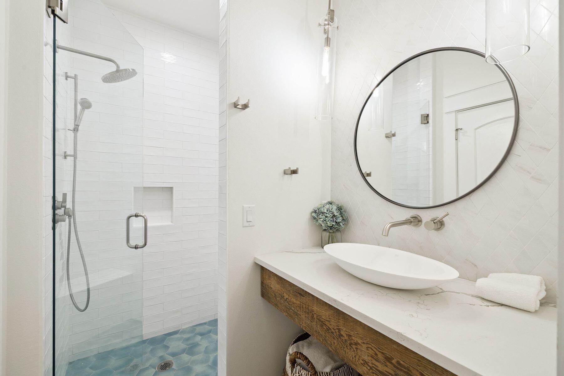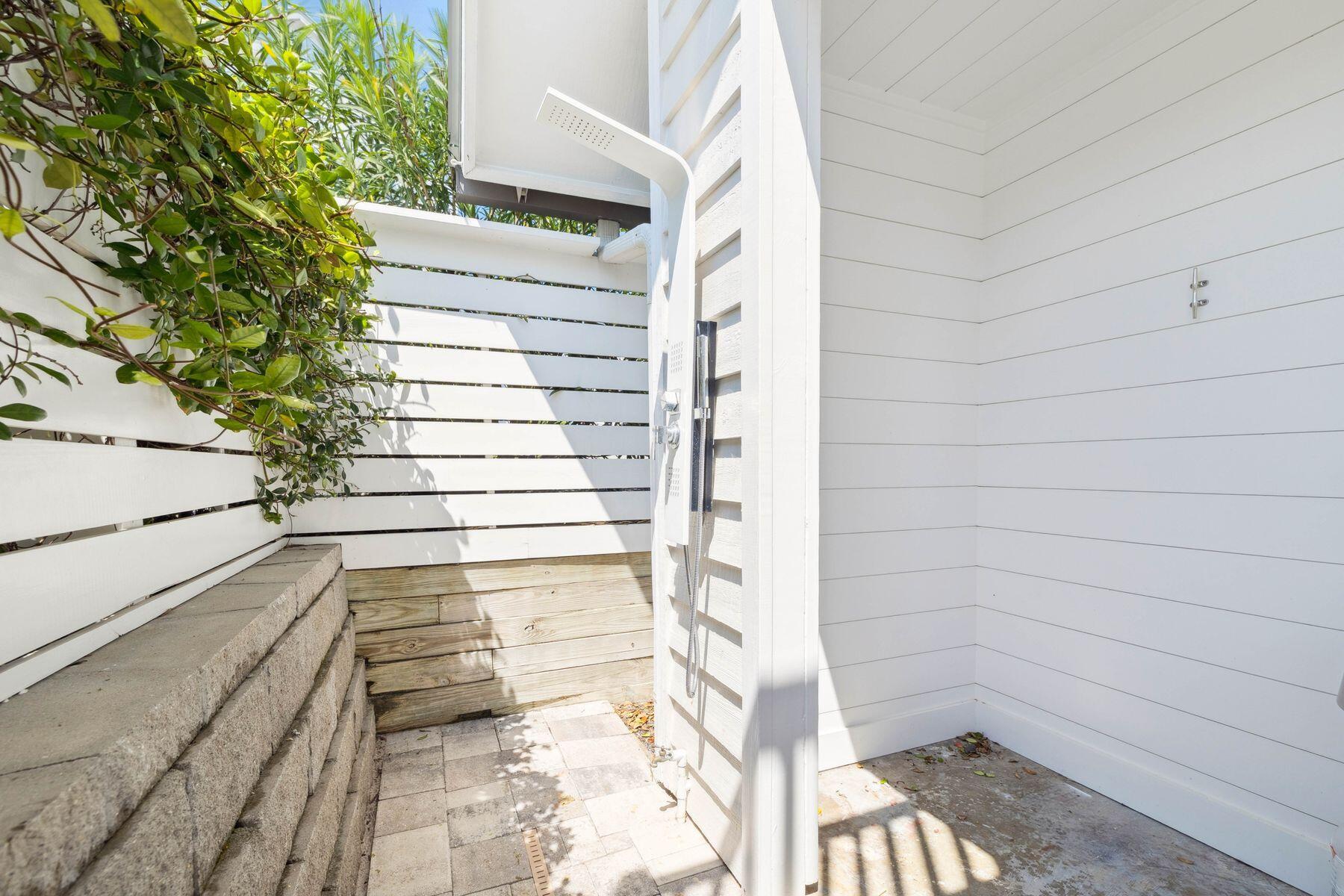 This exceptional seven-bedroom, six-bath residence is thoughtfully designed to accommodate every lifestyle, whether as a full-time family home, a vacation retreat, or a multi-generational gathering place. Situated just moments from the sugar-white sands of the gulf, it offers a private pool, carriage house, and two additional lock-out units, providing unmatched flexibility for owners and guests alike. Inside the main house, light-filled living spaces are framed by minimalist white walls, warm wood accents, and graceful crown molding. Wide-plank flooring leads toward the heart of the home -- a striking kitchen anchored by a vast island and bar with seating for five.