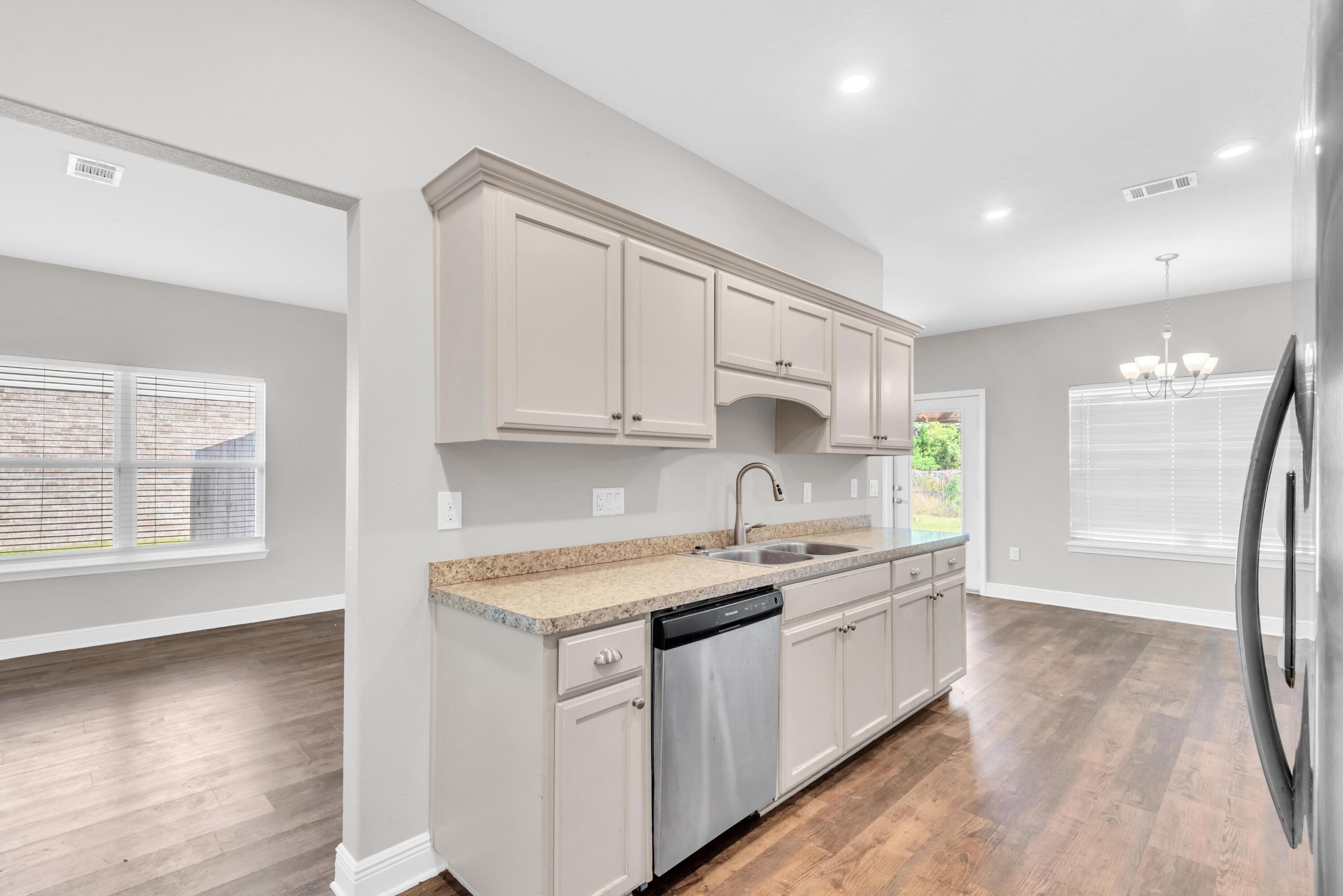 Sunset Pines is a well-kept community, located between Navarre and Gulf Breeze. This two-story home features 4 bedrooms and 2.5 bathrooms. As you enter the home the Great Room with high ceilings is straight ahead, windows throughout keep the room light and airy. The dining room is off to the side of the Great Room and also is very light. Adjoining is the kitchen, featuring a pantry, ample cabinets and plenty of counter space has all stainless appliances. This level also has a half bath. The upper level has all the bedrooms with the master suite to the back and 3 additional bedrooms to the front. The master features a trey ceiling, and the master bath has a double sink vanity. The full laundry is also on the upper level. Downstairs the back door opens to an oversize patio with a pergola. The back yard is spacious and is totally privacy fenced. A small storage shed is in the back yard as well. The entire yard has an irrigation system to aid in yard maintenance. With a location close to shopping, restaurants and quality schools this a perfect for all. Come schedule your tour of this home.