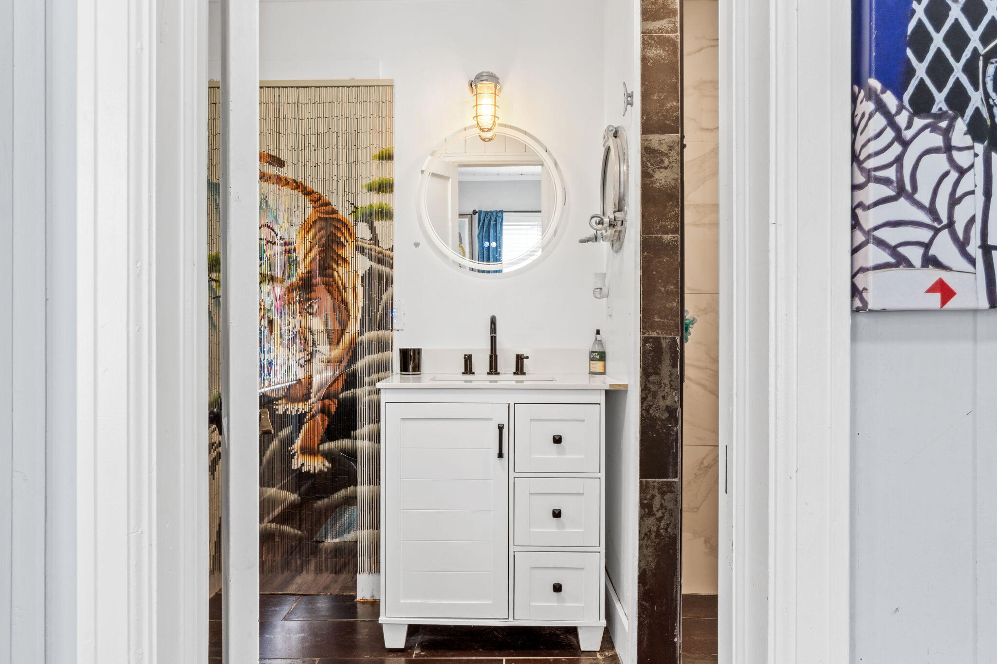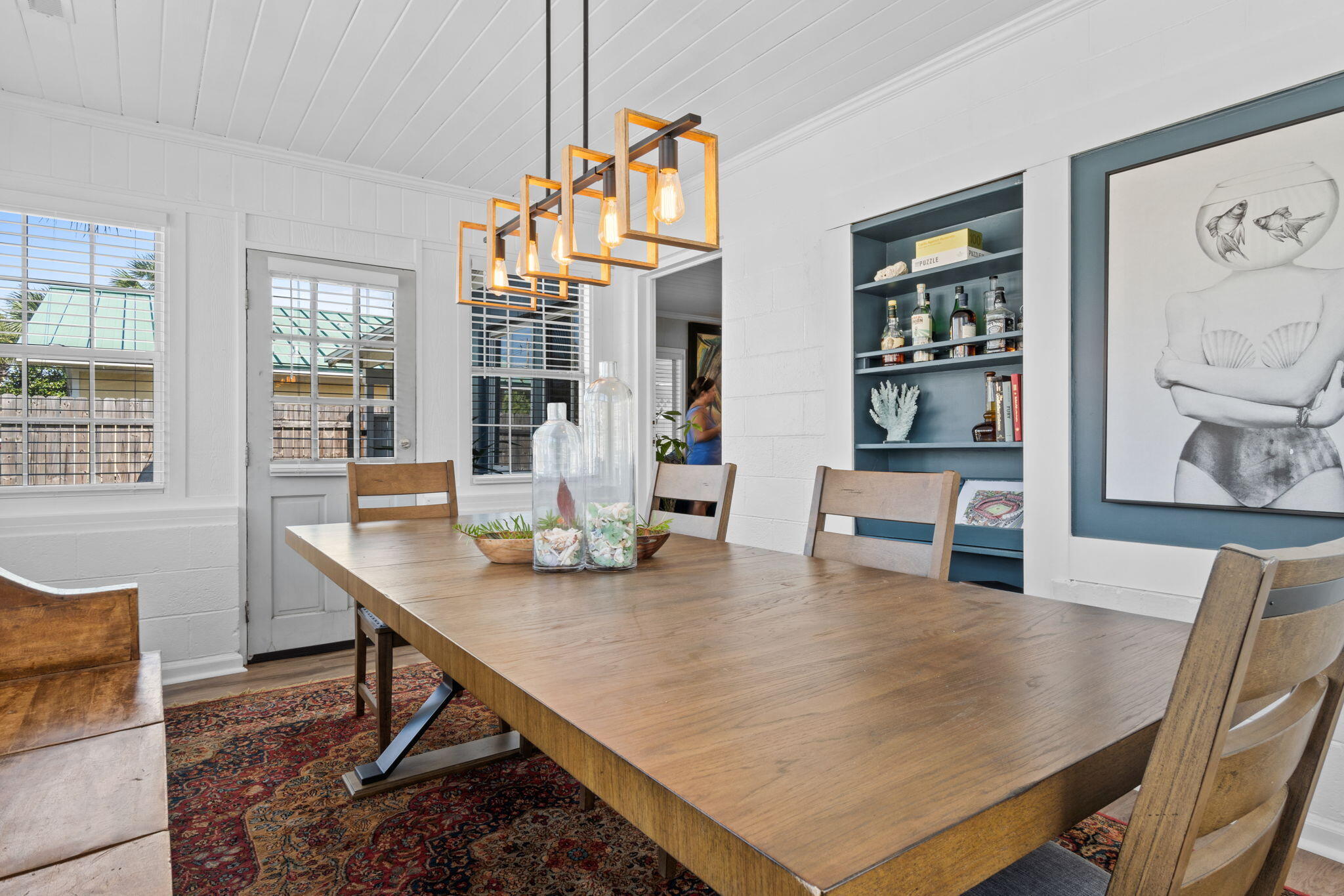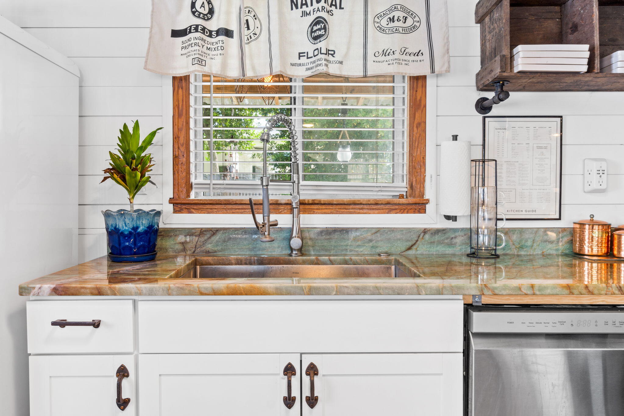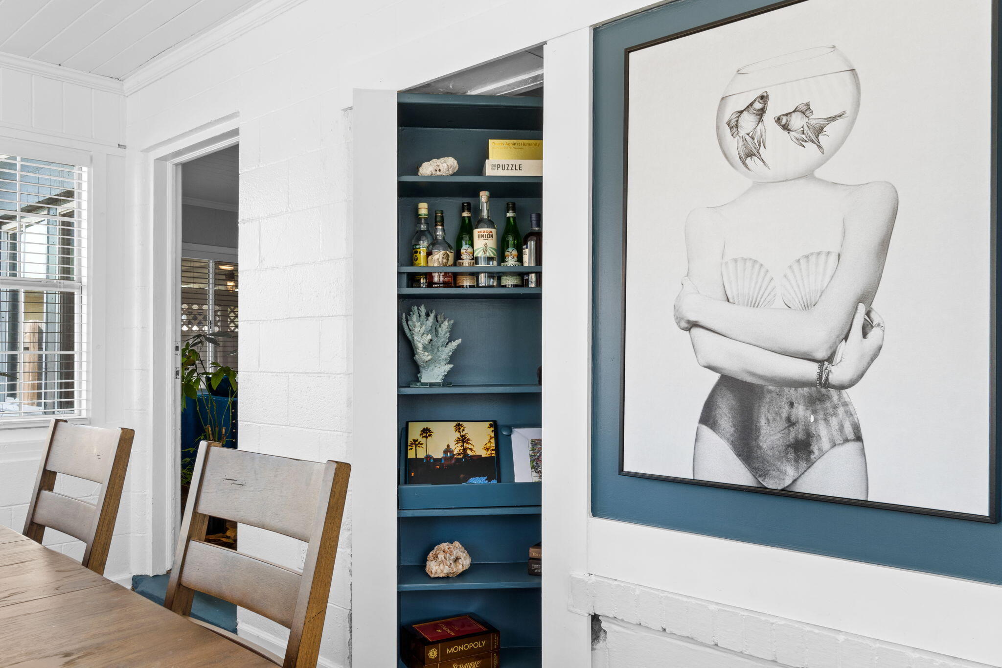 Coastal Charm Meets Modern Luxury: Your Renovated Beachside Retreat Awaits! Discover the perfect blend of seaside living and contemporary elegance in this beautifully renovated beach cottage, located just a 5-7 minute stroll from the world's most beautiful beach. This is more than a home; it's a lifestyle, offering a tranquil escape with all the modern comforts you desire. Step inside and be greeted by brand-new flooring that flows seamlessly throughout the home. The heart of this cottage is its stunning, fully renovated, including electrical and plumbing completed in 2023. It features sleek modern finishes, premium Caribbean Sunset Brazilian granite countertops, new appliances, and ample counter space--ready for you to craft your favorite meals after a day at the beach. Adding to its uniqueness, a custom-built light fixture made from a surfboard casts a warm, inviting glow, bringing coastal character into your everyday living. The bathroom has also been completely transformed with contemporary fixtures and a spa-like feel, featuring a spacious walk-in shower highlighted by a large rainfall shower head. A standout detail is the unique porthole, salvaged from a beloved local restaurant that closed its doors in recent years, bringing a special piece of Panama City Beach history into your home and adding both character and charm to this inviting retreat. The home's thoughtful layout offers remarkable flexibility. The main living space connects to a versatile flex room, currently used as a chic dining area. This space can easily be converted into a second bedroom, a home office, or a cozy den to suit your needs. Adjoining the flex room is a spacious walk-in closet, providing generous storage. Prepare to be charmed by a truly unique feature: a hidden door, cleverly disguised as an elegant bookshelf, connecting the flex room and closet. A gentle pull on a specific book reveals the secret passage, adding a touch of whimsy and wonder to your home. The beauty extends outdoors. Meticulously planned landscaping creates exceptional curb appeal, welcoming you home each day. The private backyard is a true oasis, thoughtfully designed with stylish pavers and a dedicated grilling area. It's the perfect setting for hosting summer barbecues with friends, enjoying quiet morning coffee, or simply relaxing under the stars. This coastal gem offers a rare opportunity to own a move-in-ready home where every detail has been considered. The home will come furnished, with the exception of a couple of pieces that hold sentimental value to the seller. Live the life you've imagined, with salty air, sandy toes, and the luxury of a fully updated retreat. Don't miss your chance to experience this enchanting property. Contact us today to schedule your private viewing and see this captivating beach cottage for yourself.