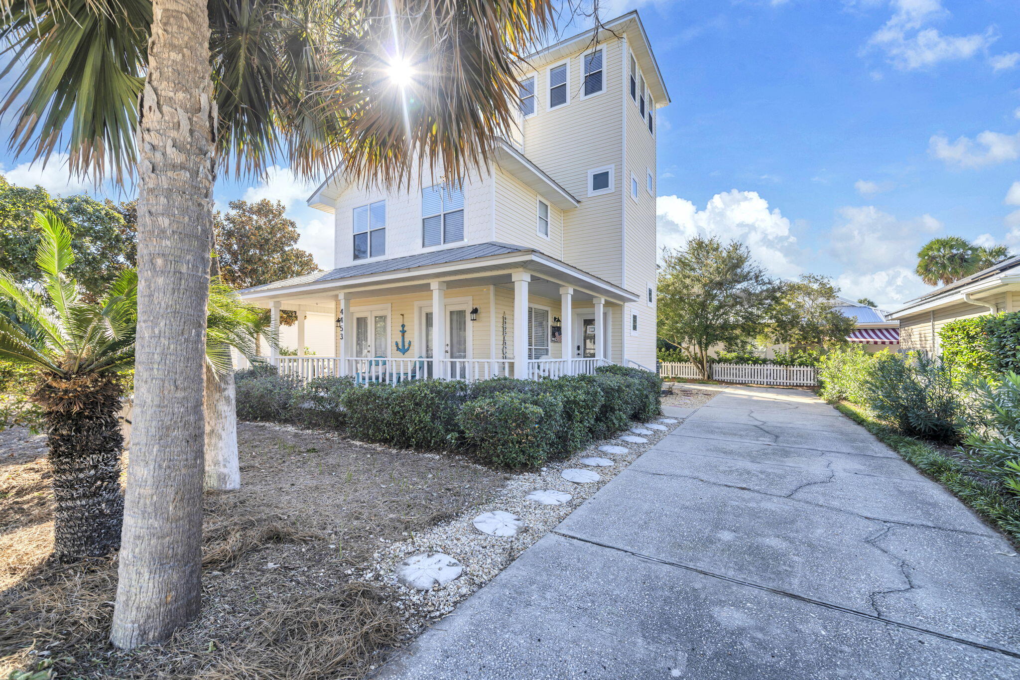 Nestled in one of the most lush and coveted locations along scenic highway 98 in Crystal Beach, this turnkey beach house is what you've been waiting for on a quiet cul de sac right on Clipper Cove! A very short walk to the neighborhood pool, this 3 bedroom (plus loft) and 3.5 bathroom offer accommodations for all with inviting, light-filled rooms welcoming you, while the home's coastal chic ambiance suggests casually elegant living and entertaining in all seasons. Cozy on Clipper has a spacious fully stocked and remodeled kitchen with all stainless steel appliances, quartz countertops, 4 brand NEW bathrooms including all Delta fixtures, new doors and decor, and much more! In 2024, this property produced over $84K in rental income and has over 77K YTD for 2025! Enjoy a tropically landscaped exterior with ample covered patio space for alfresco dining and entertaining, plus porches galore allow for tons of fun in the sun and shade! A short walk to the sugar white beaches, Destin Commons shopping, golf courses and great restaurants awaits. This charming beach home is perfect as a primary residence, second home or short/long term rental income producer! Do not miss your chance to purchase this well maintained home in Crystal Beach today.