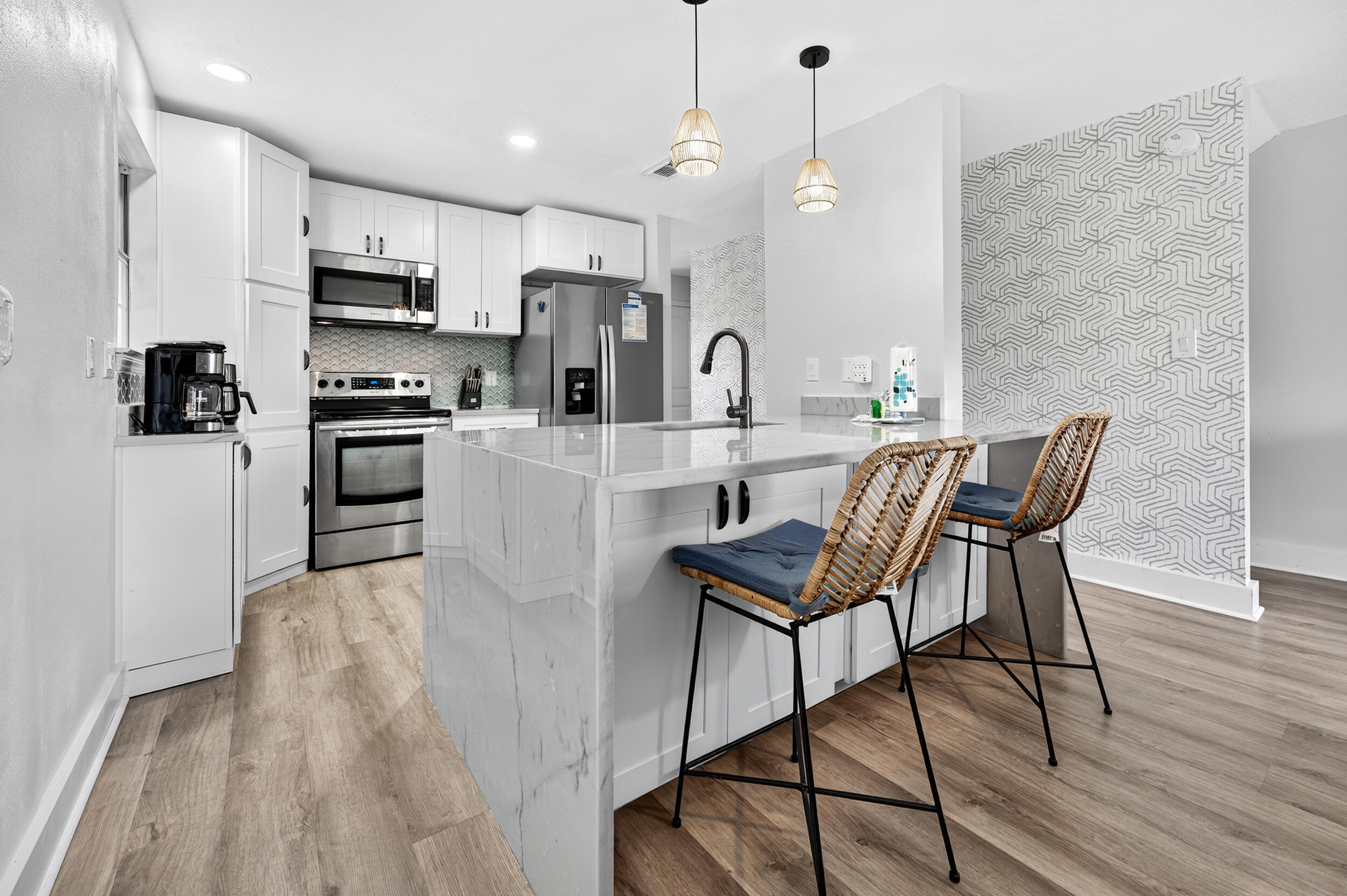 Experience coastal living at its best in this beautifully remodeled and fully furnished end-unit townhome at 6209 Don Carlos Drive #D in Perdido Key. Updated in 2024, this two-bedroom, two-and-a-half-bath home offers the perfect blend of comfort, sophistication, and freedom--with no HOA restrictions. The property features two private balconies and a welcoming front porch overlooking a peaceful canal just off the Intracoastal Waterway. Inside, every detail has been refreshed: new flooring, designer lighting, kitchen quartzite countertops, stainless-steel appliances, and updated baths with modern fixtures and tile. The home is also equipped with a Rain Soft whole-home water filtration system, ensuring premium water quality throughout. The open-concept layout creates a bright and airy feel, ideal for relaxing or entertaining. The spacious garage and extended driveway provide ample parking for a boat, RV, or jet skis, a rarity in Perdido Key. As an end unit, the property enjoys enhanced privacy and natural light, with outdoor living spaces on every level to take in Gulf breezes and coastal views.