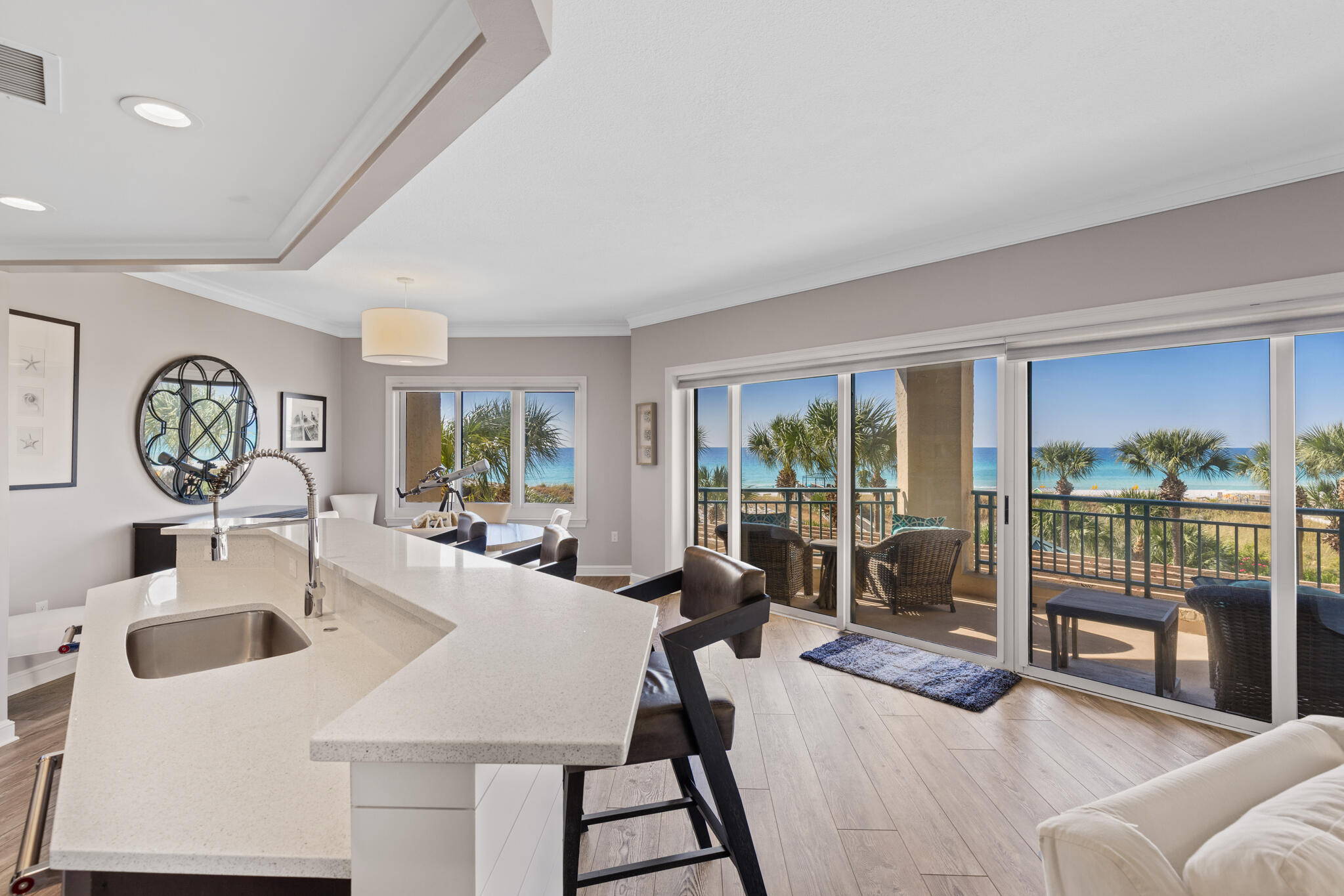 This unit offers the best of both worlds-- it's located on the third floor which offers quick access to the beach walkover, convenient access to the parking lot, and still has incredible Gulf views! Elevate your coastal lifestyle in this fully renovated 3-bedroom, 3-bath condo in Southwinds, one of Sandestin Golf & Beach Resort's most prestigious non-rental communities. The interior is thoughtfully designed with custom cabinetry, quartz countertops, shiplap accents, automated window treatments, durable luxury vinyl plank flooring, and elegantly updated bathrooms. The spacious wraparound balcony spans 251 sq ft and is accessible from both the main living area and the primary suite, offering sweeping views of the Gulf, resort-style pool, and manicured courtyard leading to the private beach boardwalk. Each bedroom is generously sized, including two with private en suite baths. The third full bathroom, accessible from the hallway and third bedroom, is ideal for guests. The primary suite features a large walk-in closet, dual vanities, and a beautifully tiled walk-in shower. Offered fully furnished with high-end pieces and minimal exclusions, this turn-key home promises effortless ownership and immediate enjoyment.
