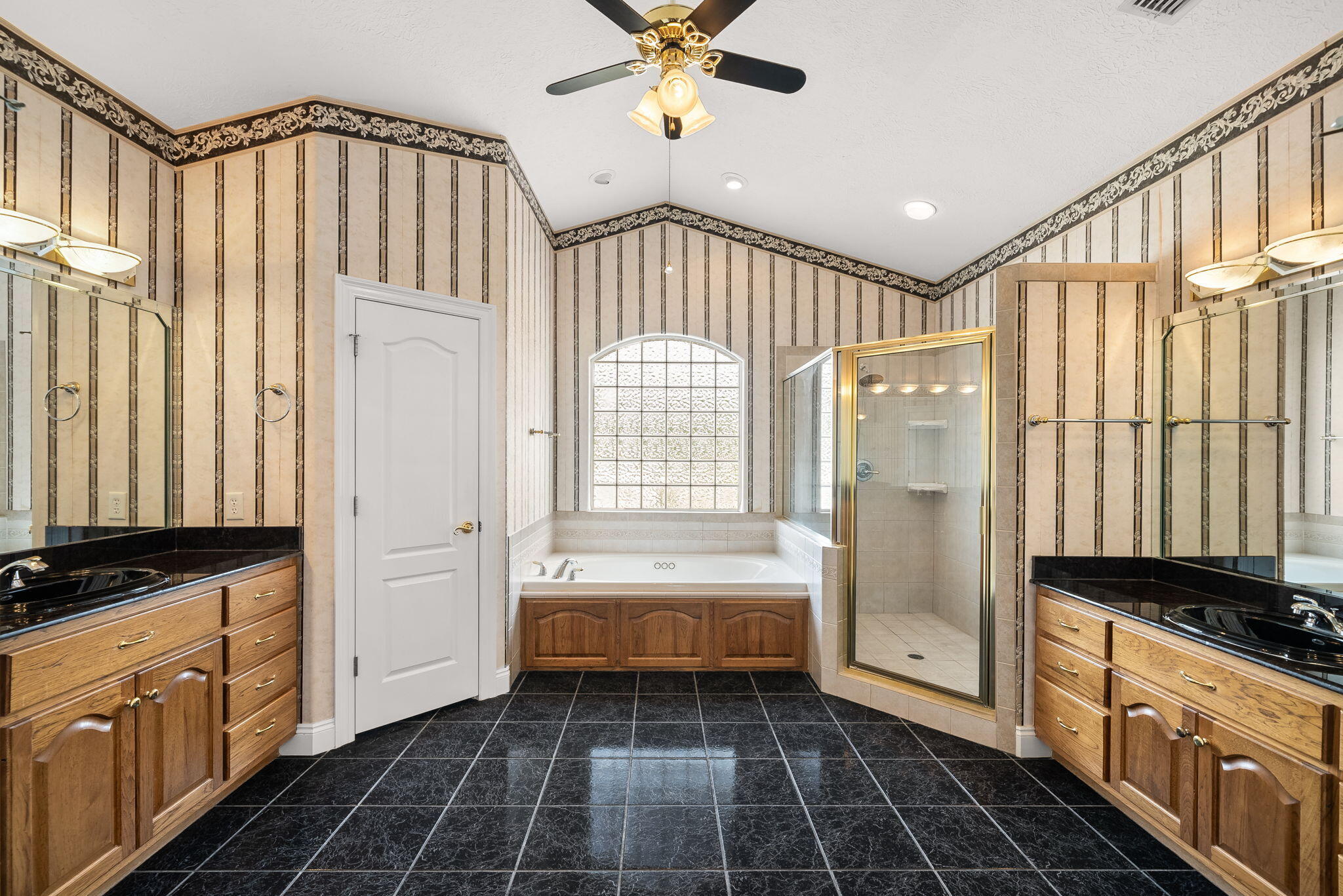Although this one-of-a-kind home is beyond incredible on the inside, the outdoor space is where it truly separates itself from the rest. The custom designed 20' x 30' inground Gunite pool with waterfall is surrounded with extensive concrete decking, an 8' x 19' retractable awning, and a custom-built stone grilling station. The front 1/4 acre of the property was left natural for absolute privacy, and the remaining greenspace has been meticulously landscaped with lush Zoysia grass, Leyland Cyprus Trees, Sago Palms, Argentine Queen Palms, Crate Myrtle Trees, Oleander Trees, and beautiful Rose Bushes. An extensive vinyl (216') and wood (300') fence perfectly surrounds the property, and a sprinkler system maintains the landscaping beautifully.