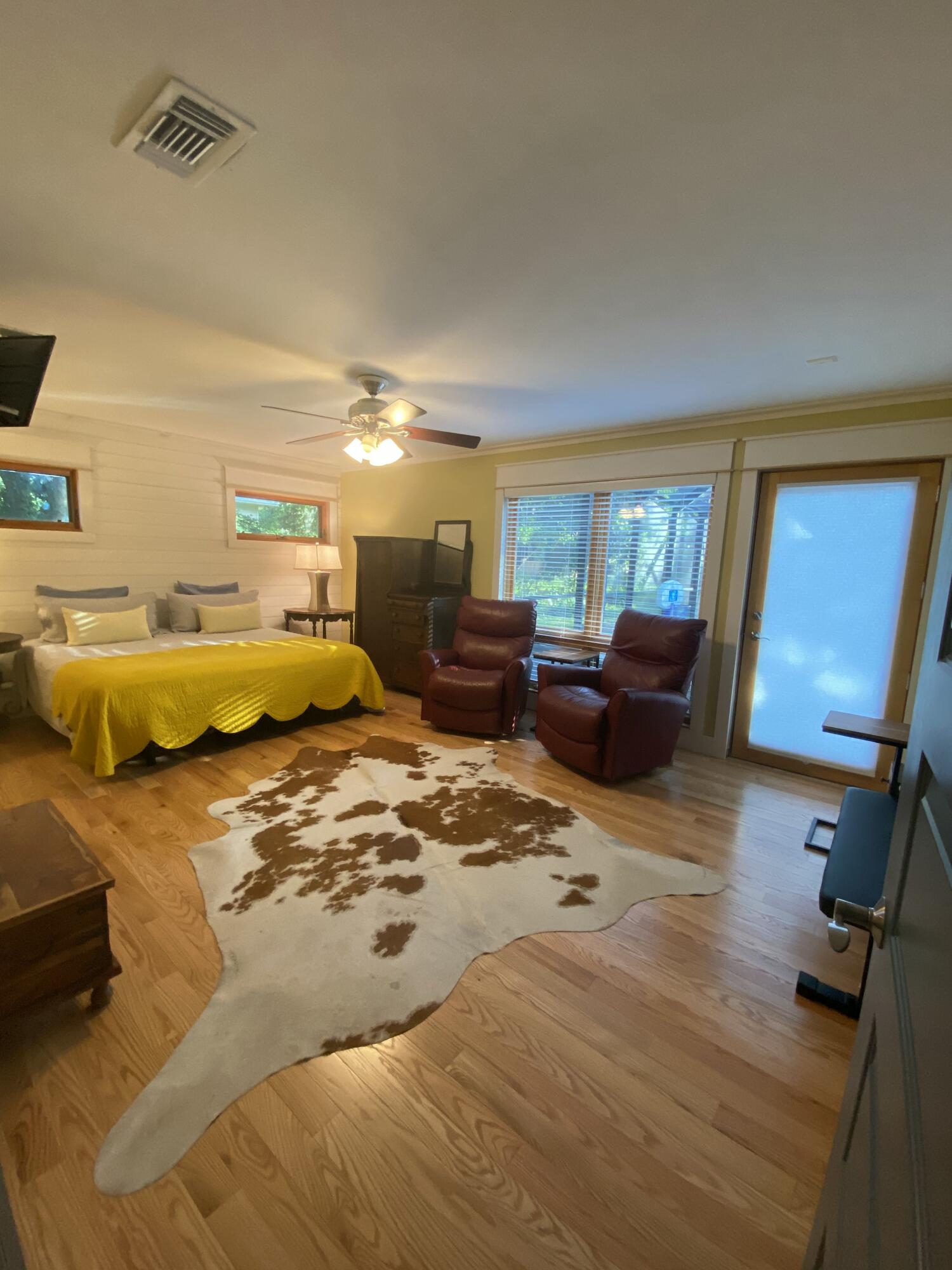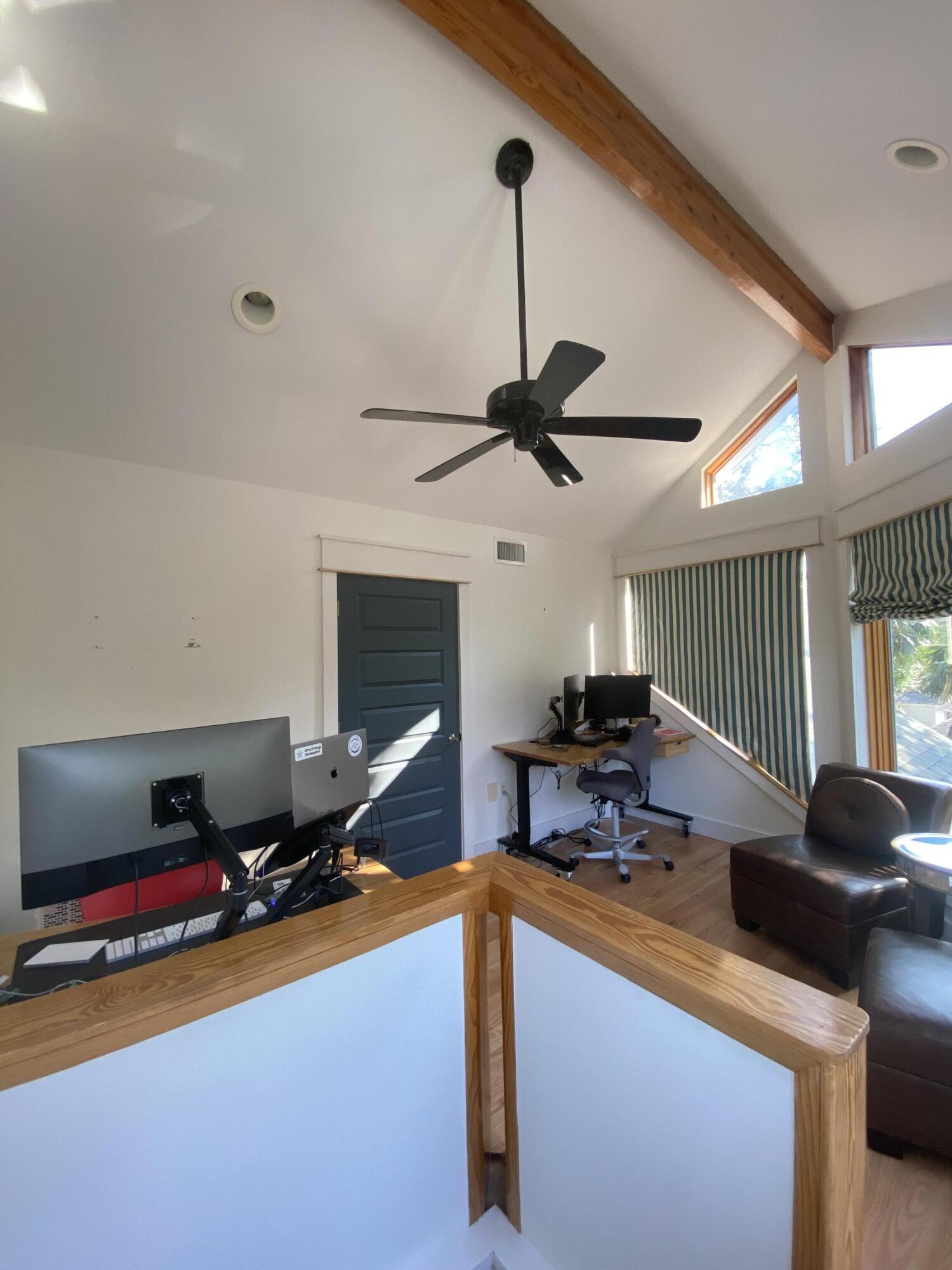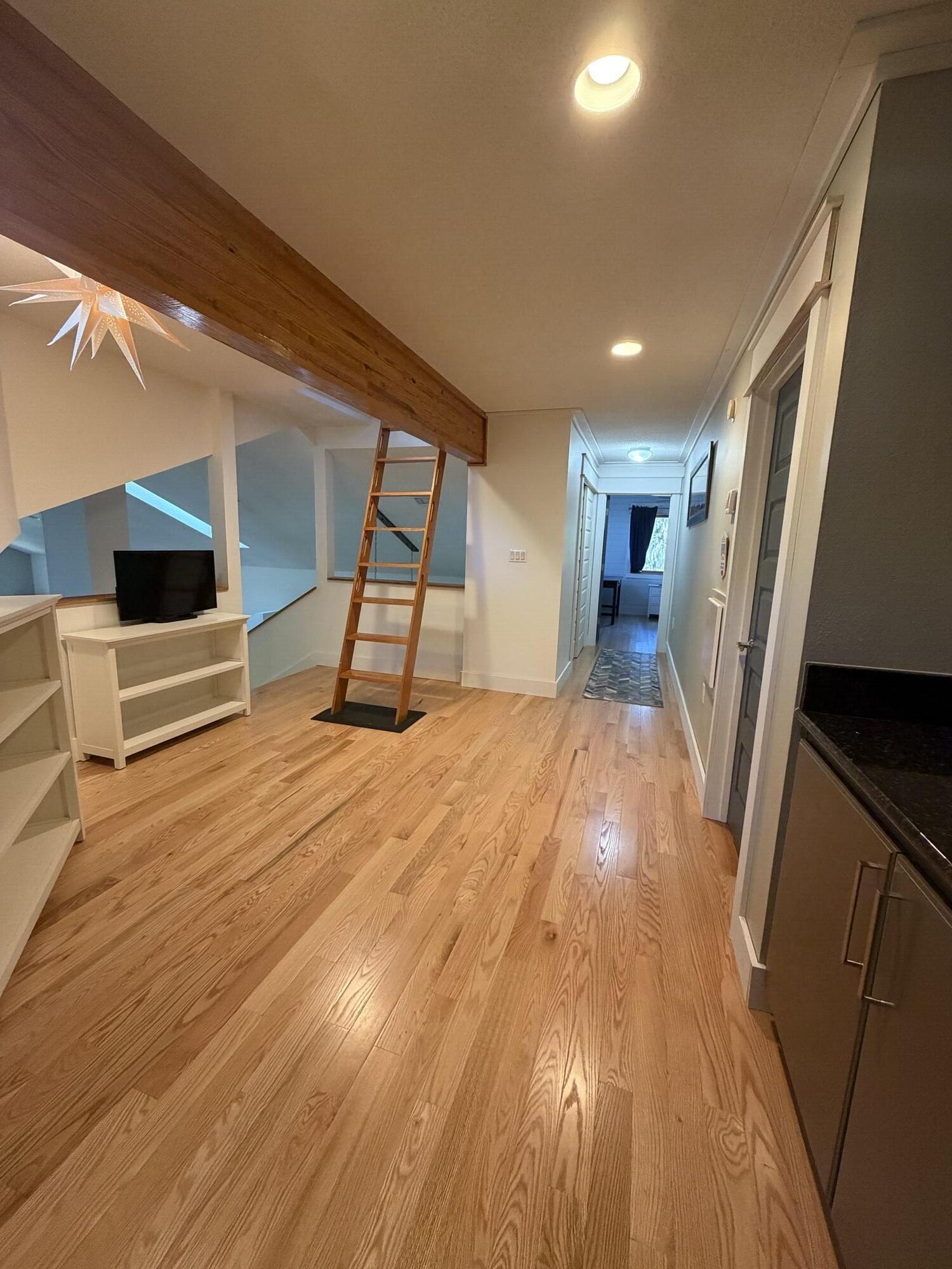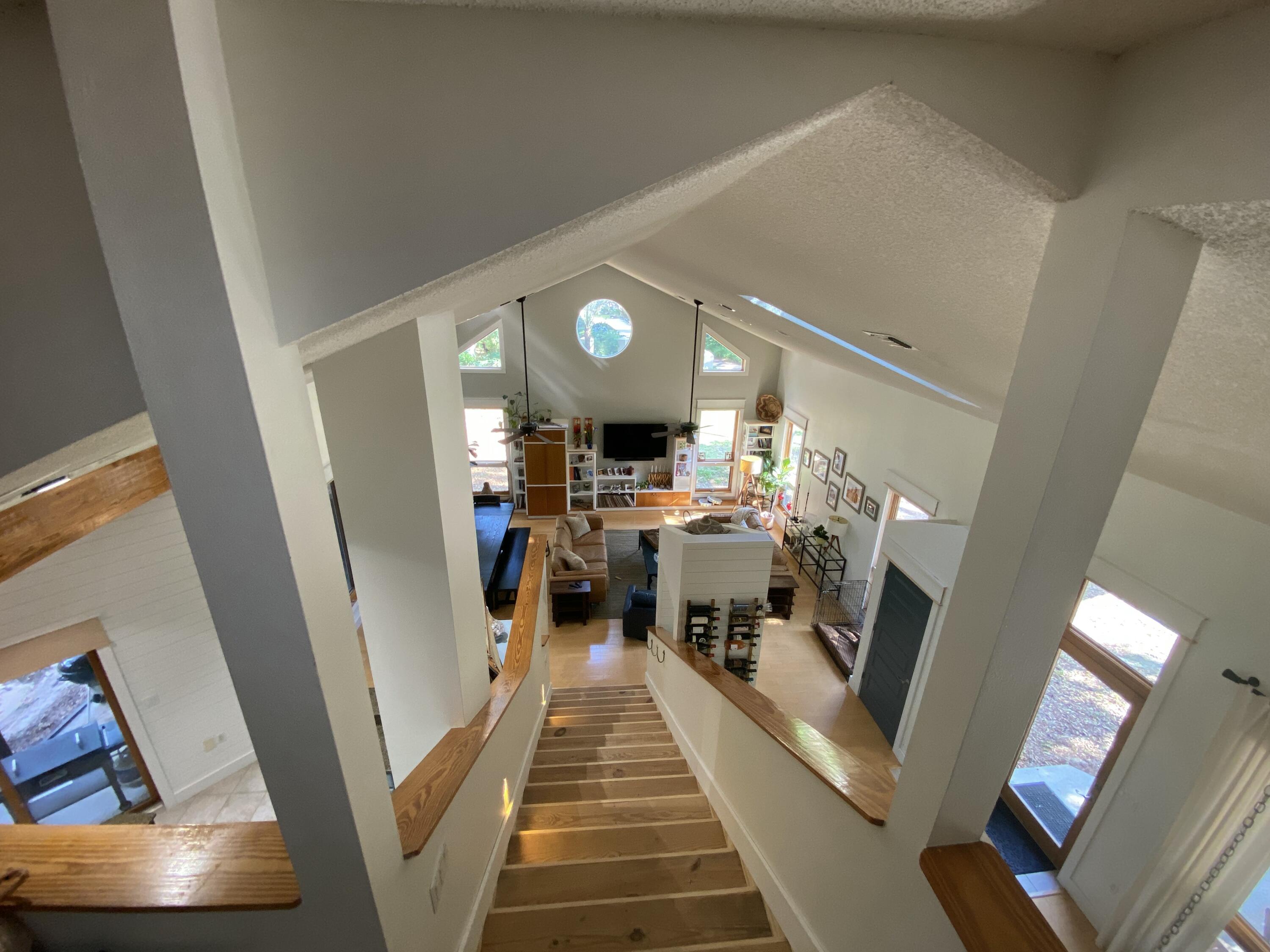 Accessible by ladder, the third-floor crow's nest is a true gemsurrounded by windows and treetop views, it's ideal for an office, reading nook, or creative space.