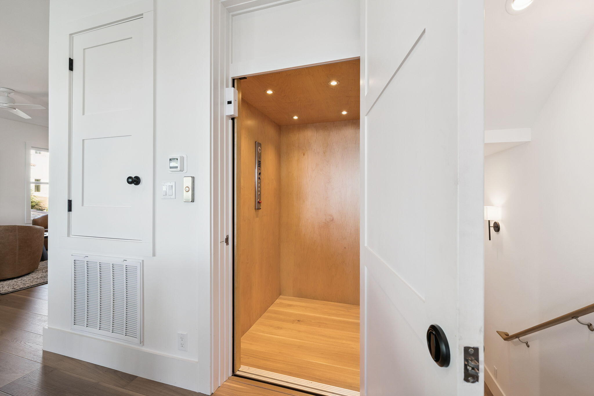Additional features include a residential elevator, a two-car garage with storage, and high-quality craftsmanship throughout, showcasing modern coastal design and attention to detail at every turn.
