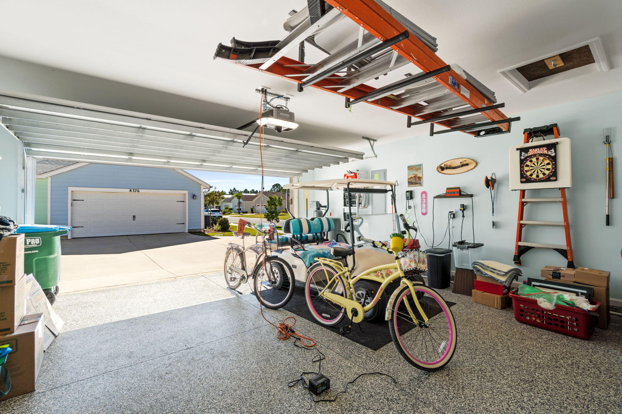 This beautifully upgraded Aloha cottage is one of only 48 homes built in Phase 3, offering both exclusivity and convenience as the closest phase to the Town Center. Enjoy a quick stroll or 5-minute golf cart ride to Latitude's state-of-the-art amenities -- resort-style living with access to world-class amenities including the Latitude Bar & Chill Restaurant, resort-style pools, live entertainment stage, and community fire pits perfect for gathering with neighbors. Stay active with pickle-ball and tennis courts, a fully equipped fitness center, indoor Olympic/Lap pool, bocce ball, dog park, biking and golf cart trails, and an amphitheater hosting regular concerts and events. Step inside this bright and coastal-inspired home and you'll immediately notice the attention to detail and numerous premium upgrades, including: " Street-facing corner lot with exceptional curb appeal " Hurricane shutters for added peace of mind " Whole-house water softener & reverse osmosis drinking system " Smart garage door opener and epoxy-finished garage floor " LVP flooring throughout - no carpet! " Quartz countertops, soft-close cabinets, and pull-out drawers " Samsung Bespoke refrigerator with custom coastal and white doors " Full backsplash, deep sink, and premium interior paint " Can lighting and ceiling fans in every room " Screened porch with epoxy flooring - perfect for morning coffee or sunset lounging " Window and door tint, 2'' blinds, and raised TV outlet in living room " Just a short golf cart ride to the Latitude Margaritaville Town Center. This Aloha floor plan offers an easy-flow layout, ideal for entertaining guests or relaxing in your private coastal retreat. Whether you're drawn by the vibrant community lifestyle, the close-knit cottage group, or the meticulous design and finishes, this home captures the spirit of laid-back luxury that Latitude Margaritaville is known for.
