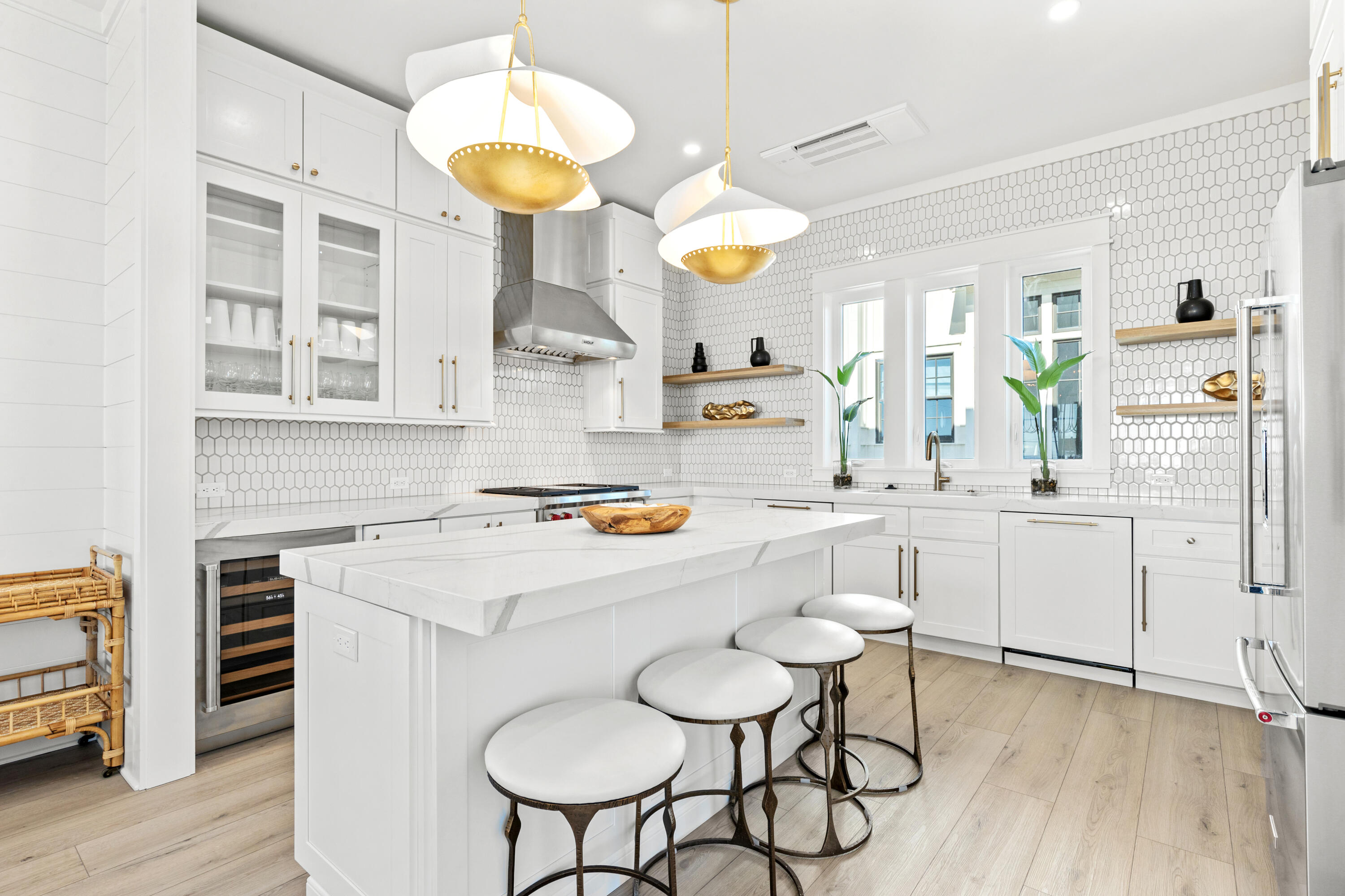 Welcome to 306 W Park Place Avenue, where contemporary luxury meets the best of beach living. This brand-new, professionally designed home is fully furnished with impeccable style, offering breathtaking Gulf views from nearly every room--a rare feature that ensures your view will remain pristine. With 5 bedrooms and 5.5 bathrooms, this property seamlessly blends modern convenience with coastal charm.Located just steps from the beach boardwalk, you can easily access the stunning shoreline, putting you just moments away from the sand and surf.The main living area is located on the second floor, where an expansive, open-concept layout invites natural light to flood the space. The spacious living room flows effortlessly into the chef's kitchen, designed for both functionality and elegance, featuring high-end appliances, custom cabinetry, and a large central island perfect for preparing meals or gathering with friends. Perfect for entertaining, the living area opens up to an expansive balcony with a summer kitchen and built-in grill. Imagine preparing dinner while enjoying stunning views of the Gulfa true chef's dream.