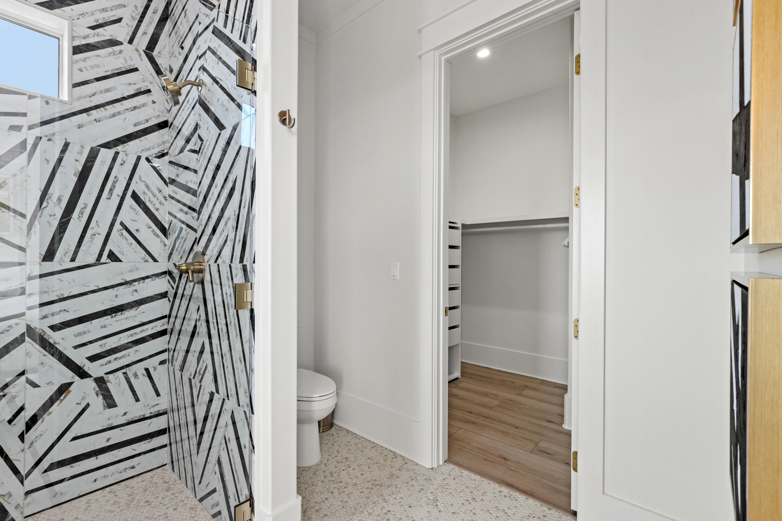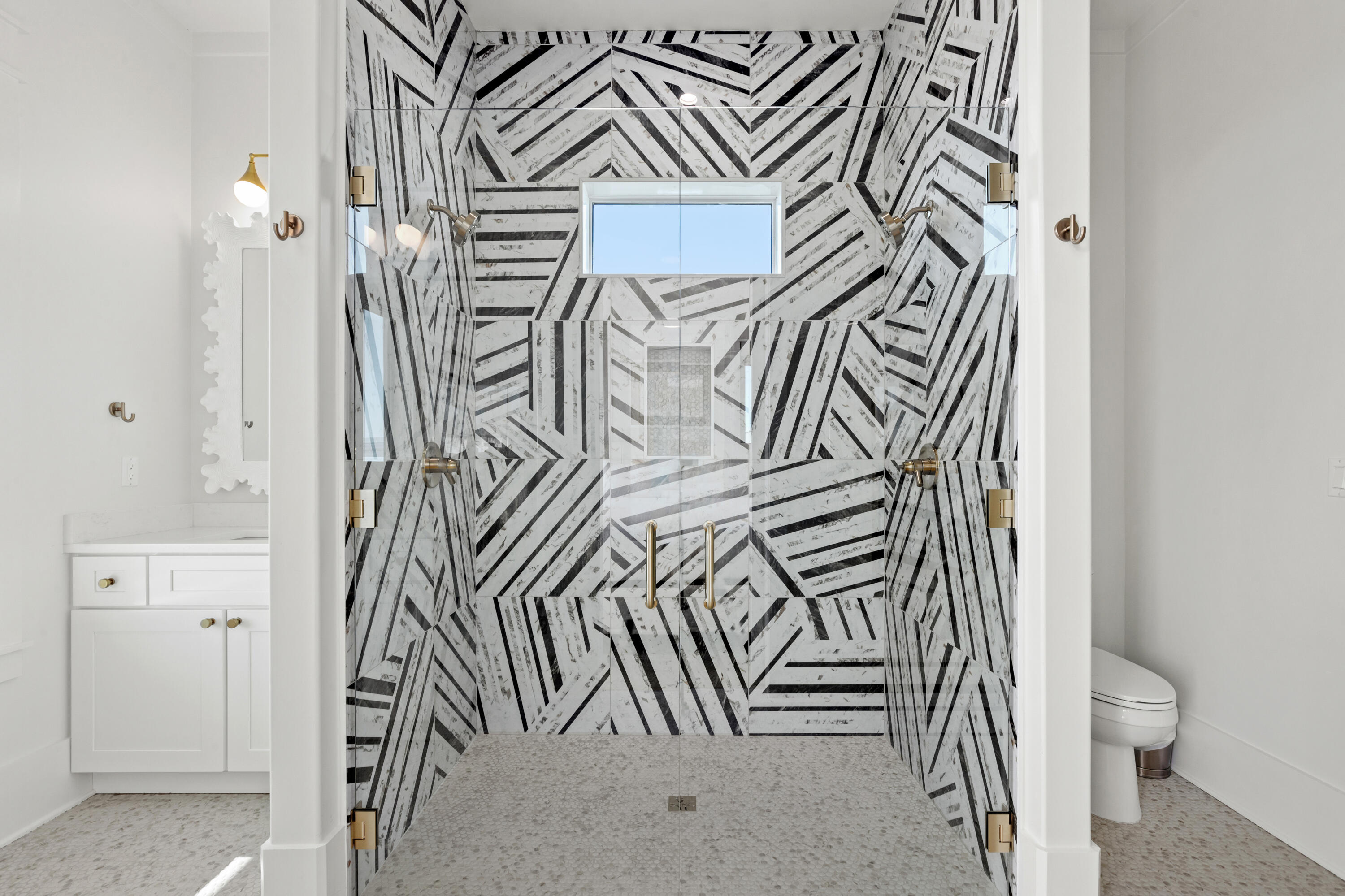 The luxurious primary suite on the third floor offers an unmatched retreat, where you can wake up to the tranquil sight of the Gulf. The private, spa-inspired bathroom features a walk-in shower with views of the ocean, while a large walk-in closet provides ample space for your wardrobe. Two additional bedrooms are outfitted with custom-built bunk beds, ideal for guests or family, offering both style and space.