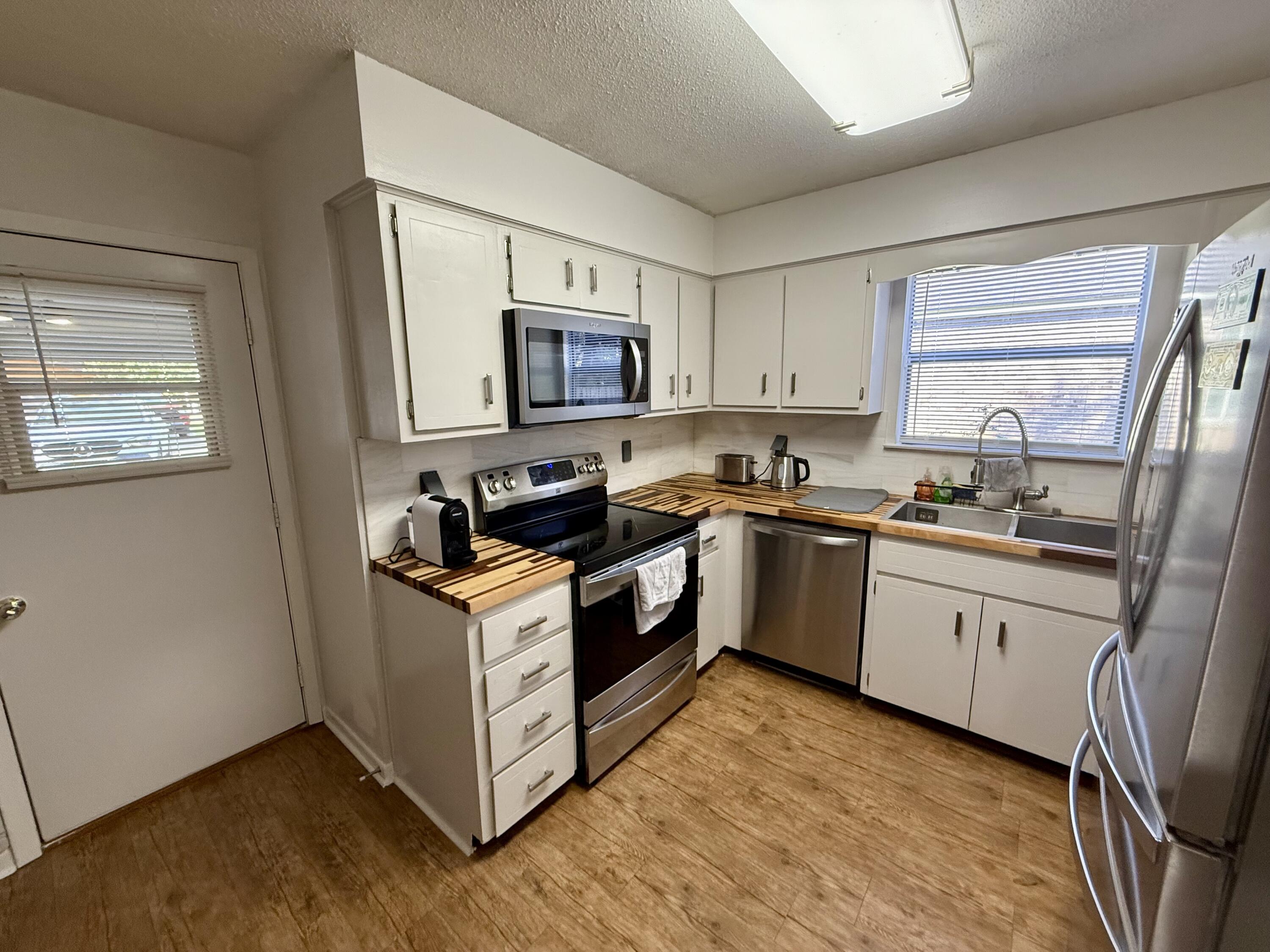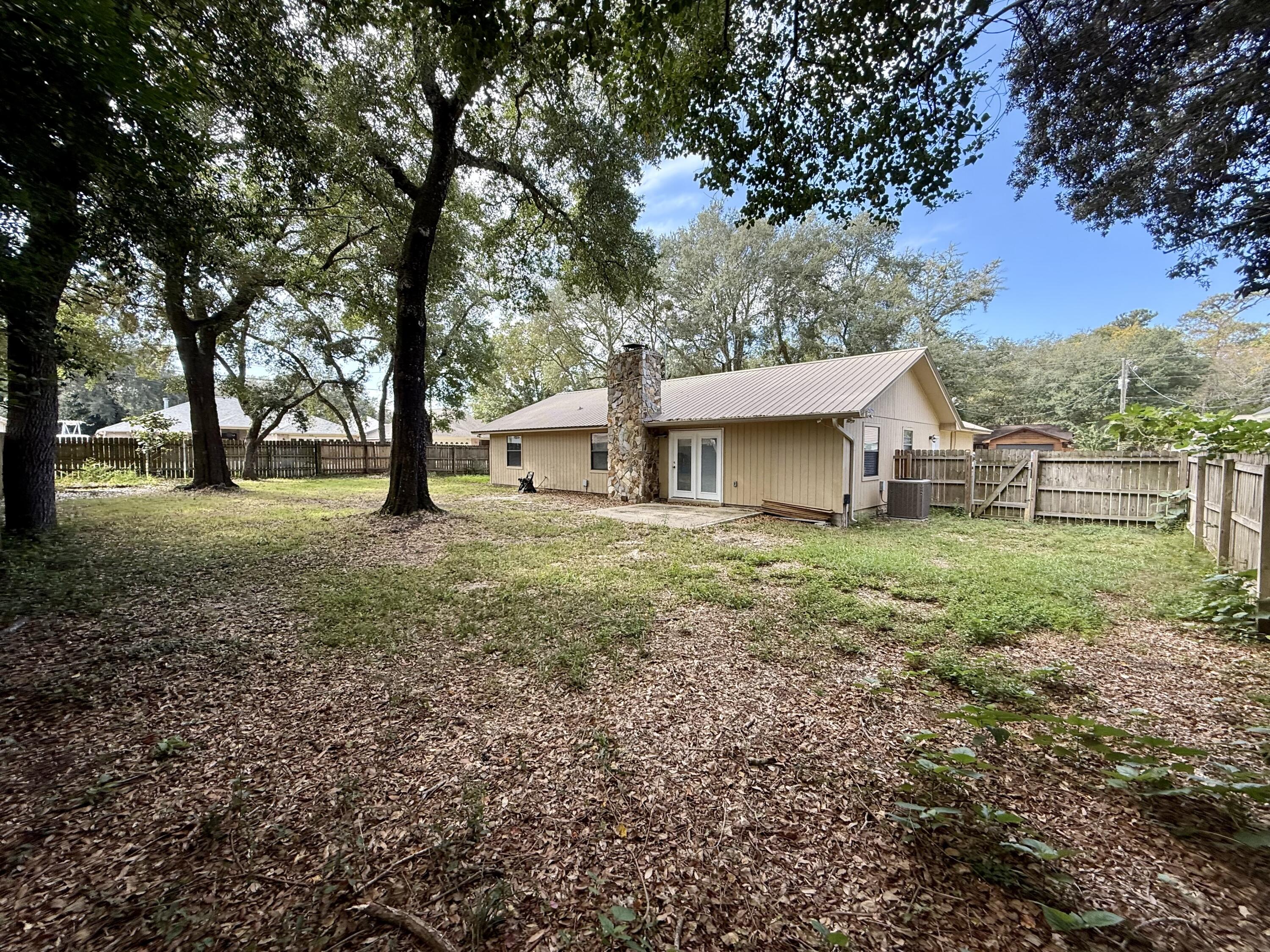Nestled in the heart of Niceville, this move-in-ready 3-bedroom, 2-bath ranch sits on a shaded over 1/3-acre corner double lot with a metal roof and a fully fenced backyard. Inside, LVP flooring flows throughout with fresh paint brightening the open layout. The living room features a wood-burning fireplace with a blower; the kitchen boasts butcher-block counters (2023) and stainless steel appliances: 2024 microwave, 2021 fridge, 2018 stove, and a new dishwasher (2025). The primary suite includes an updated vanity. Upgrades include 2008 windows, 2014 re-plumbing, 2021 air ducts, 2015 HVAC, and garage door opener (2025). Centrally located for your convenience, please take a look at it today.