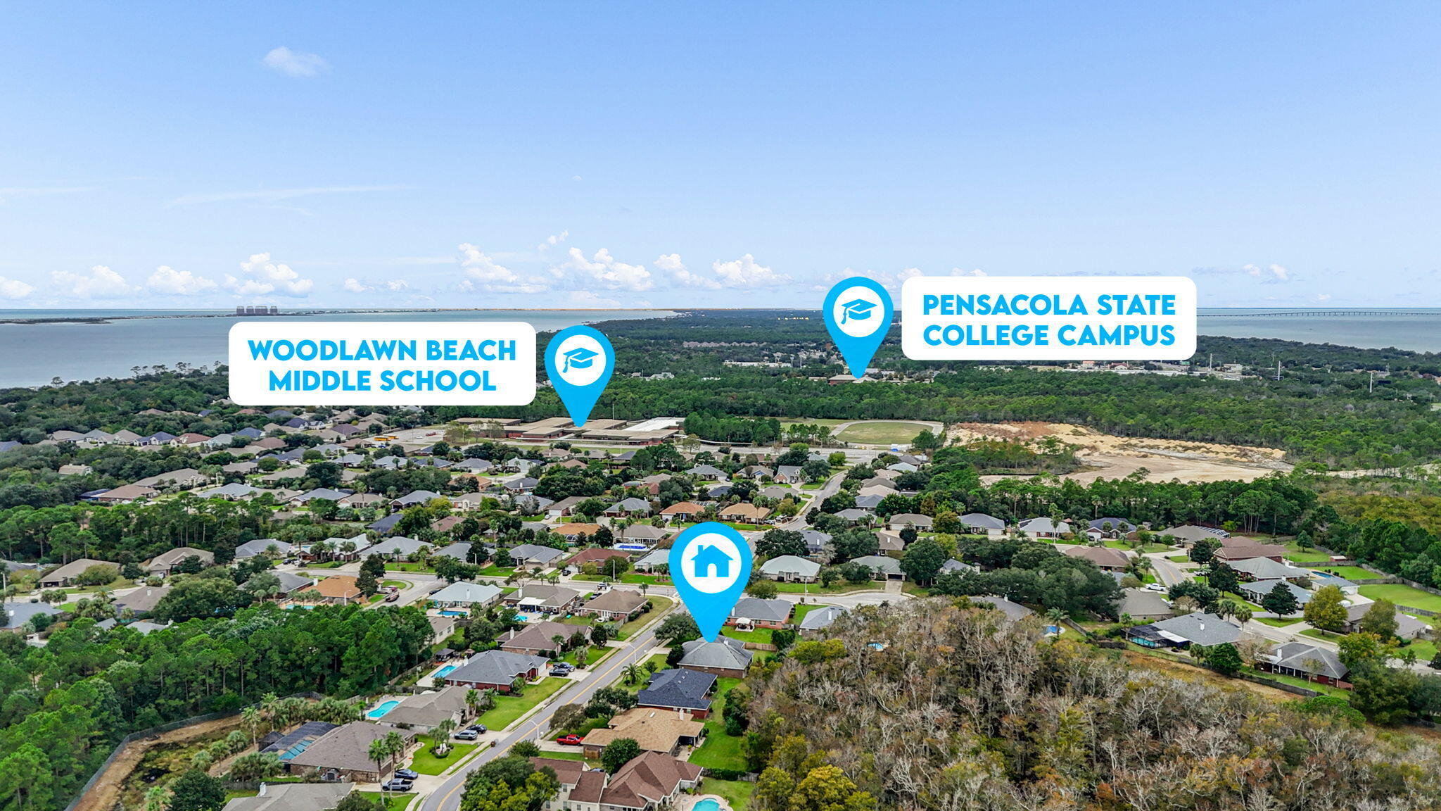 Welcome to this beautifully updated home in the well-established Woodlawn Heights community of Gulf Breeze. Inside, you'll find new luxury vinyl plank flooring throughout the main living areas and brand new carpet in all bedrooms, with over 2500 sq ft of living space. The bathrooms have been upgraded with elegant new quartz countertops, adding a modern touch to the home's classic layout. The master bath has a double vanity, two walk-in closets and jetted tub. A screened-in patio overlooks the fenced backyard, which backs up to a wooded area for added privacy.Woodlawn Heights offers sidewalks, streetlights, a community playground, underground utilities, and a community area with a gazebo and two small lakes. Boat and RV storage is also available through the HOA (currently waitlisted)
