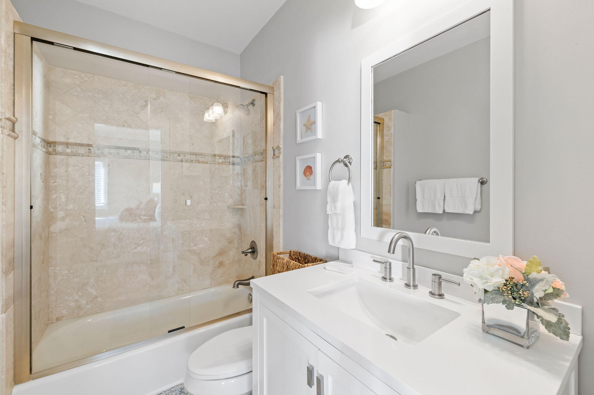 This beautifully updated 4-bedroom, 4-bath home in Coastal Dunes captures the essence of modern coastal living just steps from the beach, Shunk Gulley, and all of the shopping and dining at Gulf Place. Set within one of Santa Rosa Beach's most desirable gated enclaves, this intimate community of only 13 residences offers a rare blend of privacy, sophistication, and walkability.Inside, an open and airy layout welcomes you with abundant natural light and seamless flow between the living, dining, and kitchen areas. The chef-inspired kitchen features quartz countertops, high-end appliances, and custom cabinetry designed for both style and functionality. The spacious primary suite is a peaceful retreat with a double vanity and a soaking tub-and-shower combination, creating a spa-like experience. Secondary bedrooms feature beautifully finished bathrooms, offering flexible options for guests, a second primary suite, or a fun bunk room for the kids.