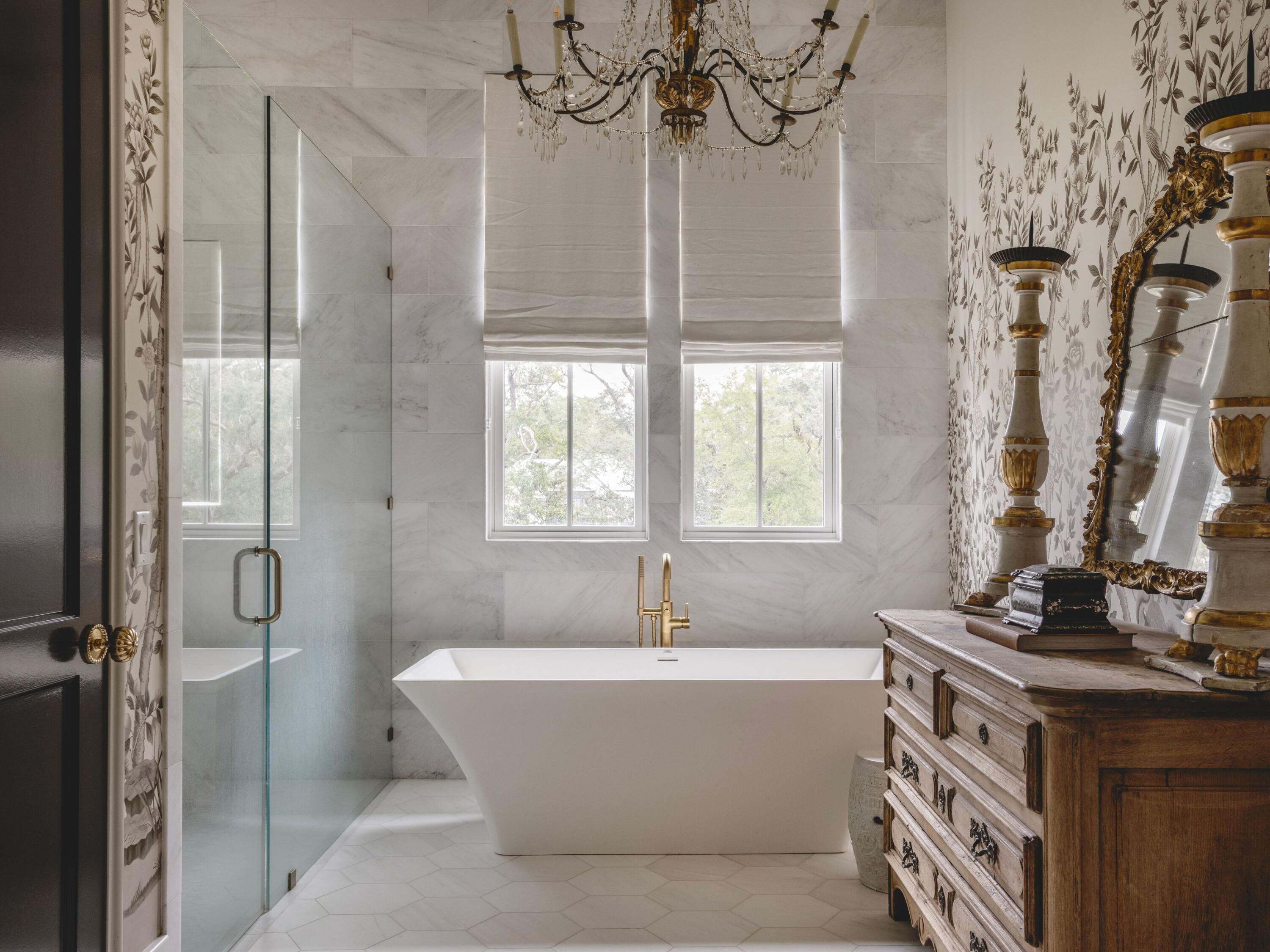 A masterfully designed retreat tucked away on a peaceful cul-de-sac in the sought-after gated community of Churchill Oaks, this residence is the personal home of a national designer who has artfully curated every detail to embody the essence of a life well-lived--a perfect balance of refined elegance, comfort, and effortless coastal living.Set on one of the most private lots in Churchill Oaks, with only one adjacent neighbor, this home offers an uncommon sense of seclusion and tranquility rarely found within the community. Designed by Matthew Savoie and constructed by Grand Bay Construction, this four-bedroom, four-and-a-half-bath home showcases timeless architecture and thoughtful functionality. Recently enhanced with custom wallpaper, designer lighting, and curated finishes, the interiors exude warmth, texture, and depthreflecting a home where beauty and authenticity coexist.