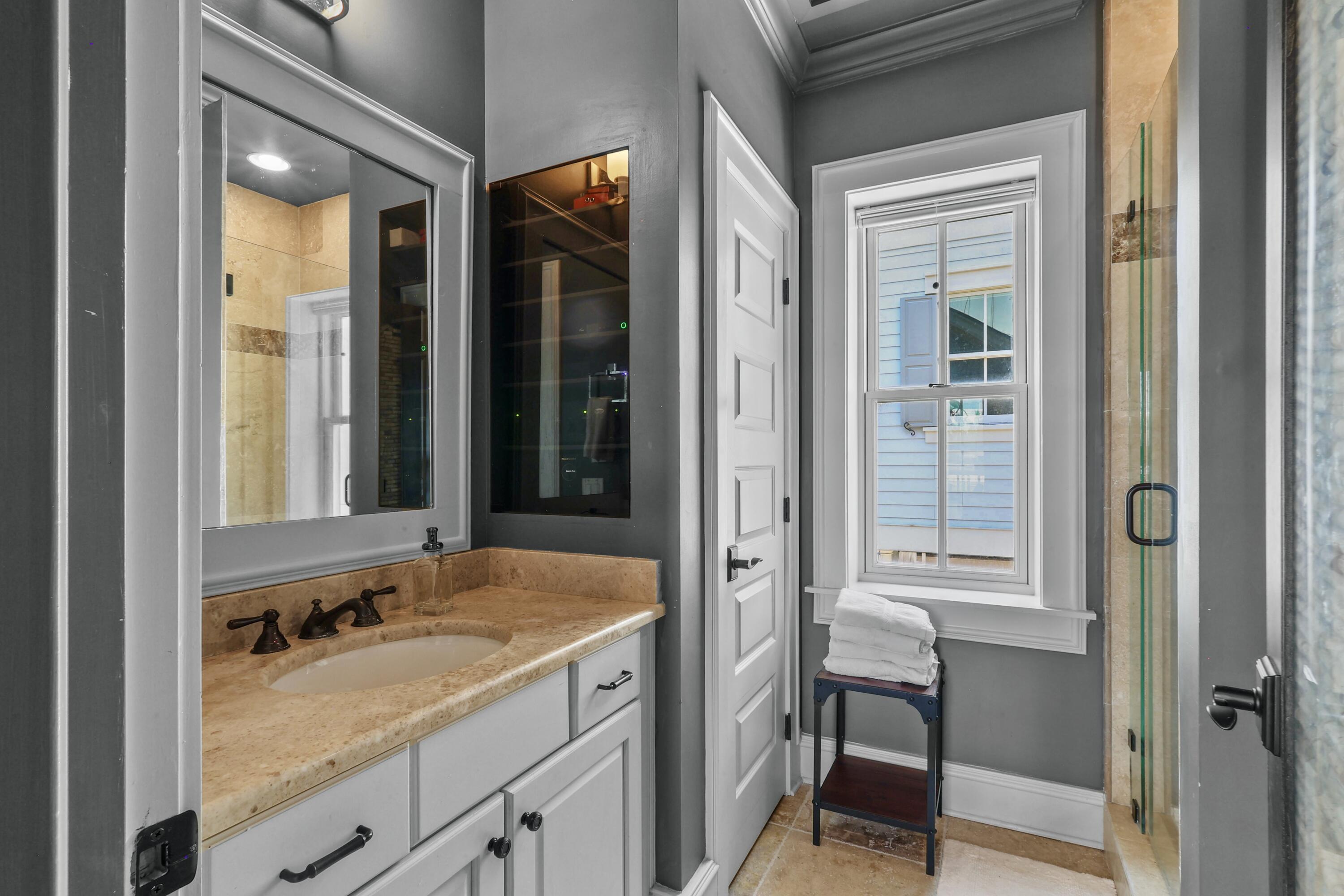 BEST PRICED HOME ON THE SOUTH SIDE OF EASTERN 30A! Discover luxury living at 35 Pleasant Street, a stunning townhome nestled South of 30A and just steps to the Watersound Beach Club. This exceptional property boasts ICF construction, an elevator, hurricane-rated windows, and a durable standing seam metal roof, ensuring peace of mind.Inside, you'll find 10 foot ceilings and an elegant living room with custom fireplace, creating a warm and inviting atmosphere. The kitchen is a chef's dream complete with a pecky cypress accented bar--perfect for entertaining.A carriage house provides privacy for the 5th bedroom, which is currently being used as a state of the art theater equipped with a 4K projection system, 120' drop-down screen and Dolby Digital audio system. The Savant Control smart home system adds modern convenience and whole-house entertainment right from your smartphone