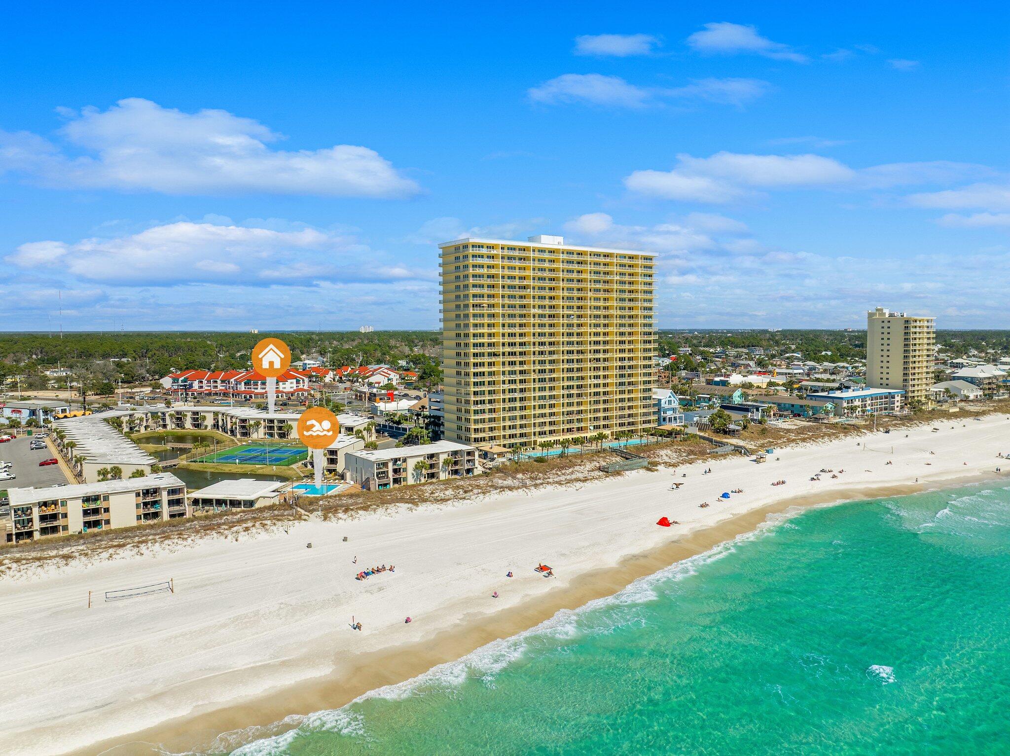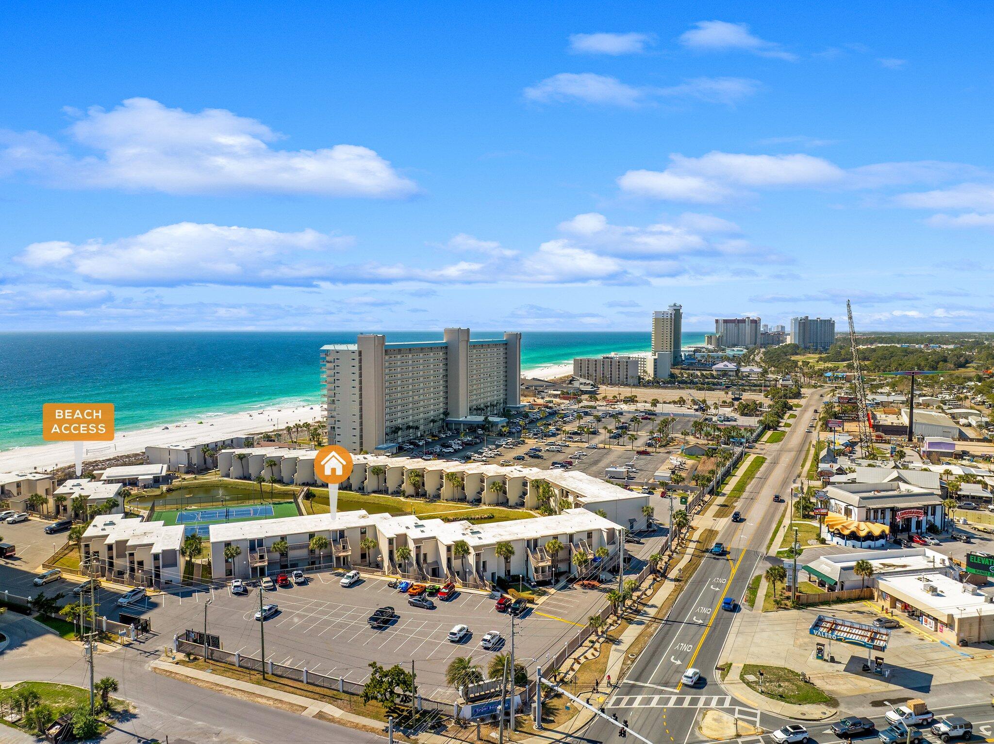 This exquisite ground-floor unit, nestled in a premier beachfront resort, offers 1,086 square feet of elegant living space. Featuring two spacious bedrooms and two full bathrooms, this property is perfect for personal enjoyment or as a lucrative investment. Enjoy direct access to the Gulf of Mexico's pristine beaches, where the ocean's soothing sounds and stunning sunsets await. The open-concept living area is ideal for entertaining, while large windows fill the space with natural light. As part of a well-maintained community, residents have access to resort-style amenities, including a pool and recreational facilities. Conveniently located to major attractions, this property balances relaxation with convenience. Seize the rare opportunity to own a piece of Florida's stunning coastline.