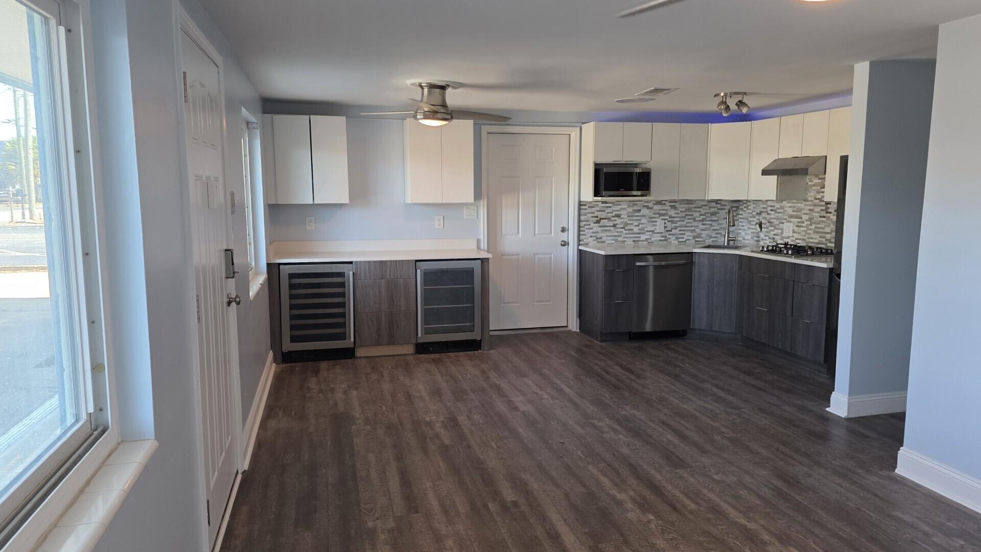This freshly painted 1,100 sq. ft. space offers an inviting living space with 3 rooms, 1 tastefully remodeled bathroom, a cozy living room, and a modern kitchen with an eating area. Previously utilized as a cosmetology and massage business, each room is equipped with a small sink and storage closet, offering flexible potential for a variety of uses. The bathroom has been thoughtfully upgraded and now features a luxurious heated, jetted deep tub. The kitchen has also been renovated and includes a deep sink, a 3-burner natural gas stove, and with 3 refrigerators. Ample parking for up to 8 vehicles. The back of the property is accessible via two 12' wide electric gates. rear grounds feature a concrete pad, a shed, and a sauna, all served by a 50-amp sub-panel on one side and a full RV hookup