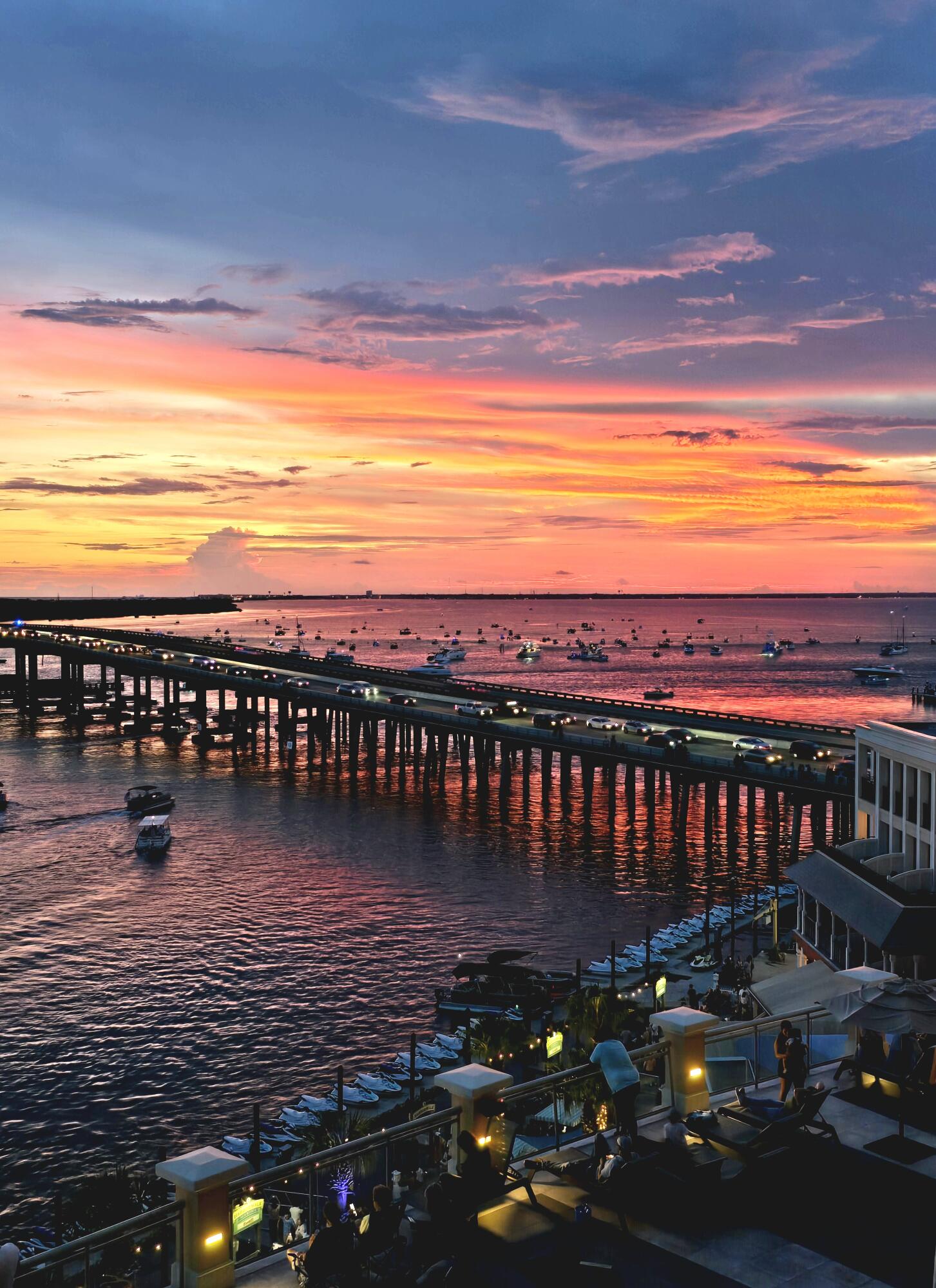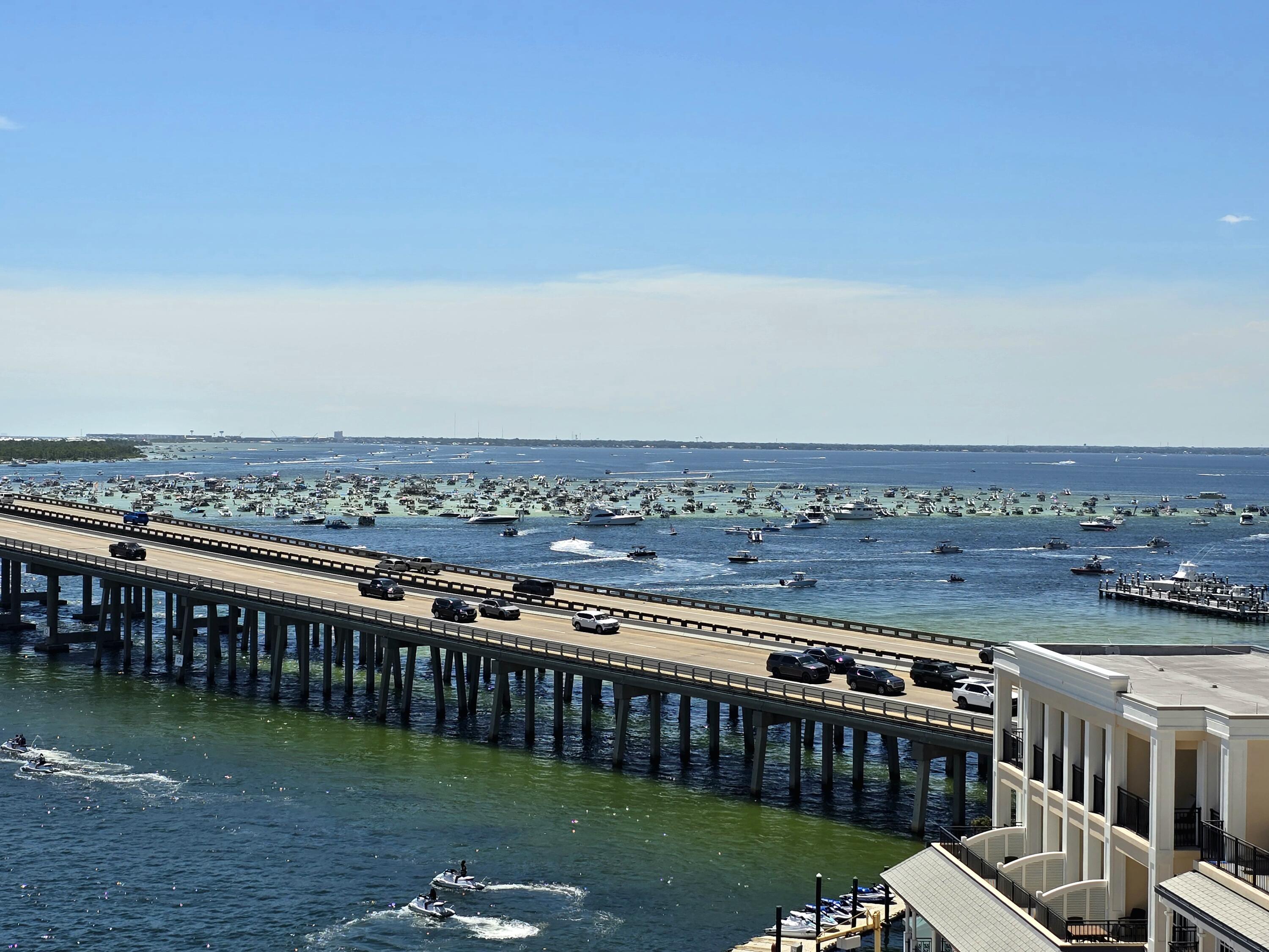 Located at the end of the Destin Bridge, overlooking the Destin Harbor, East Pass, Gulf and Crab Island.