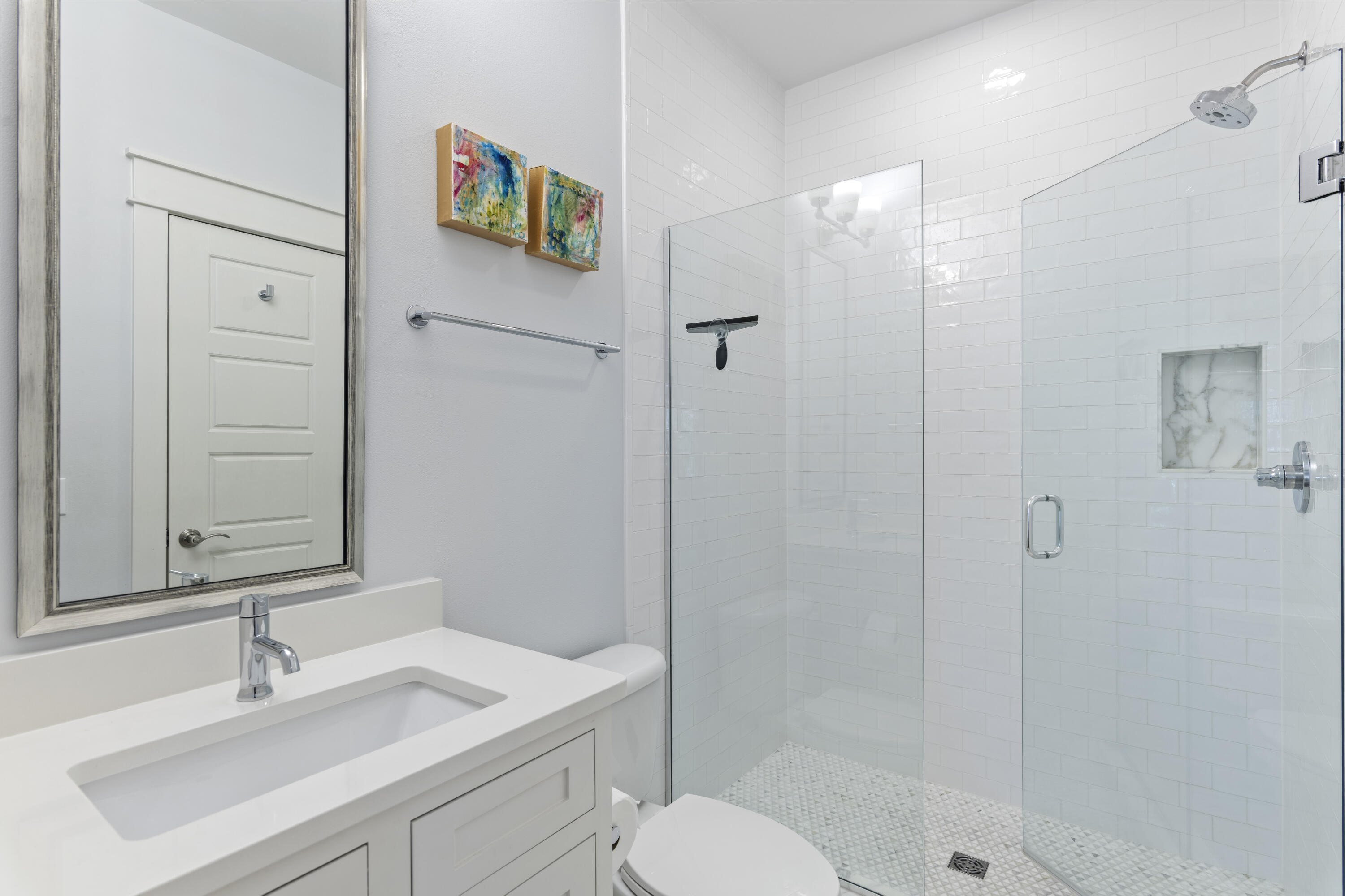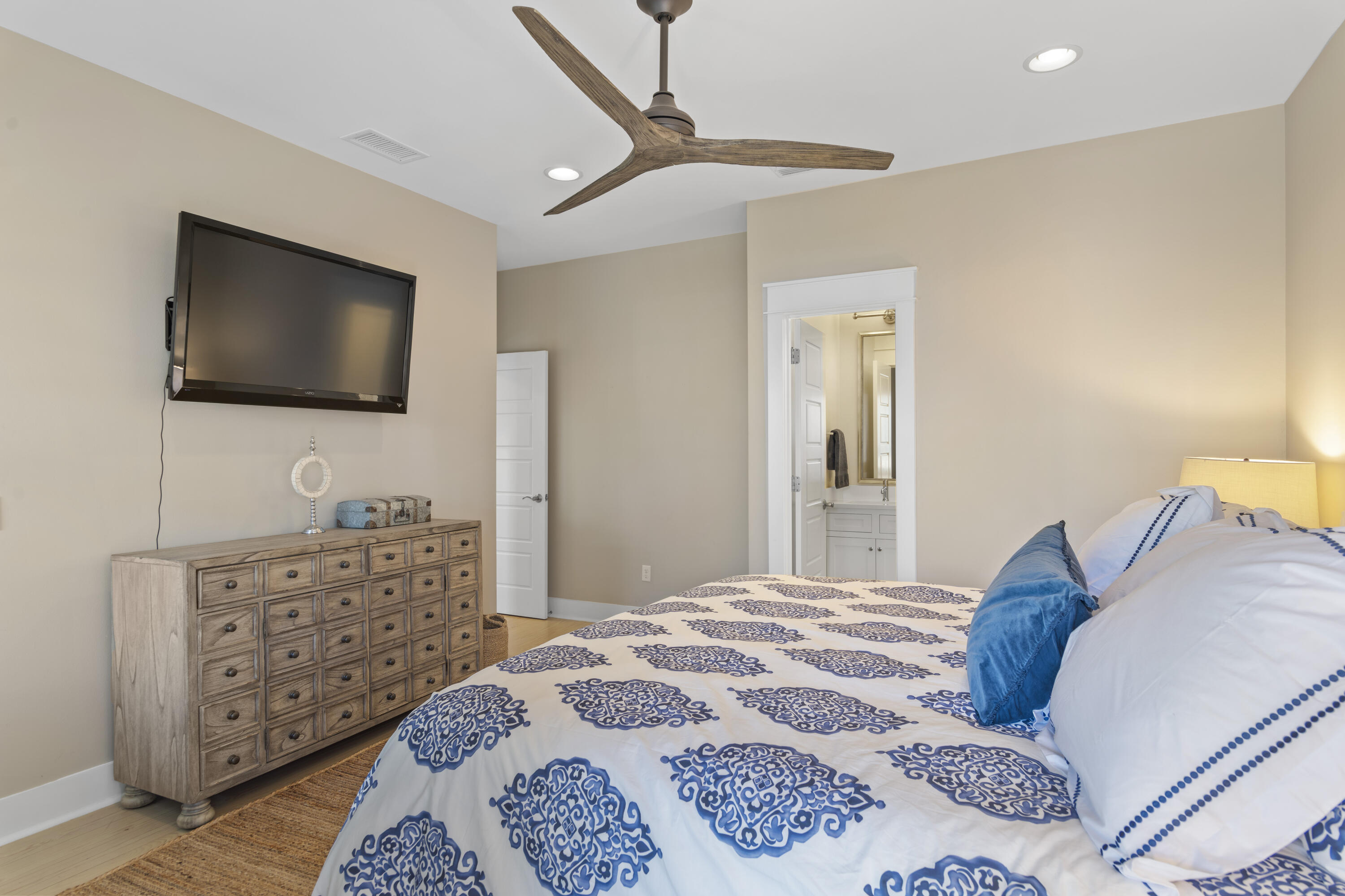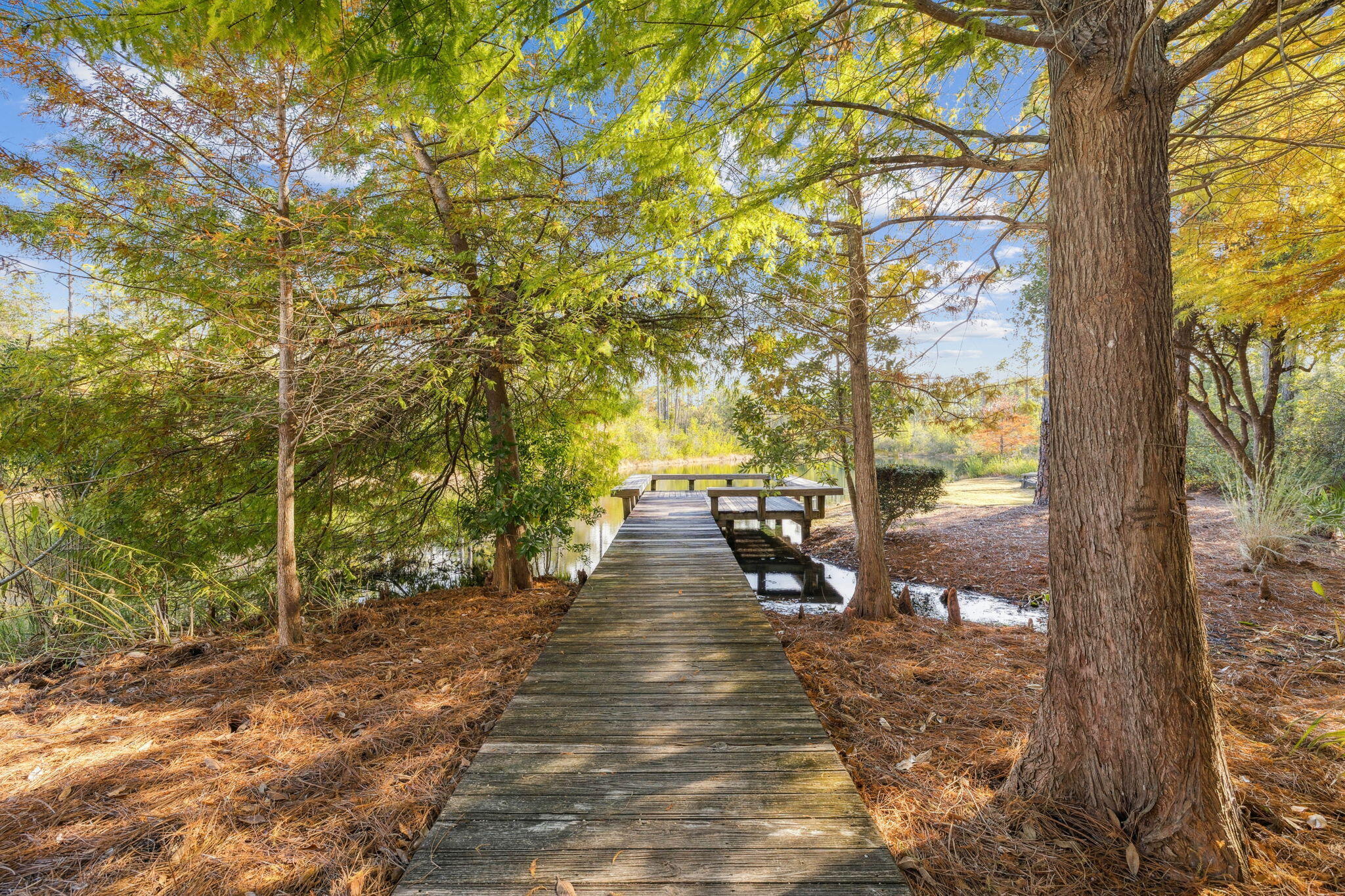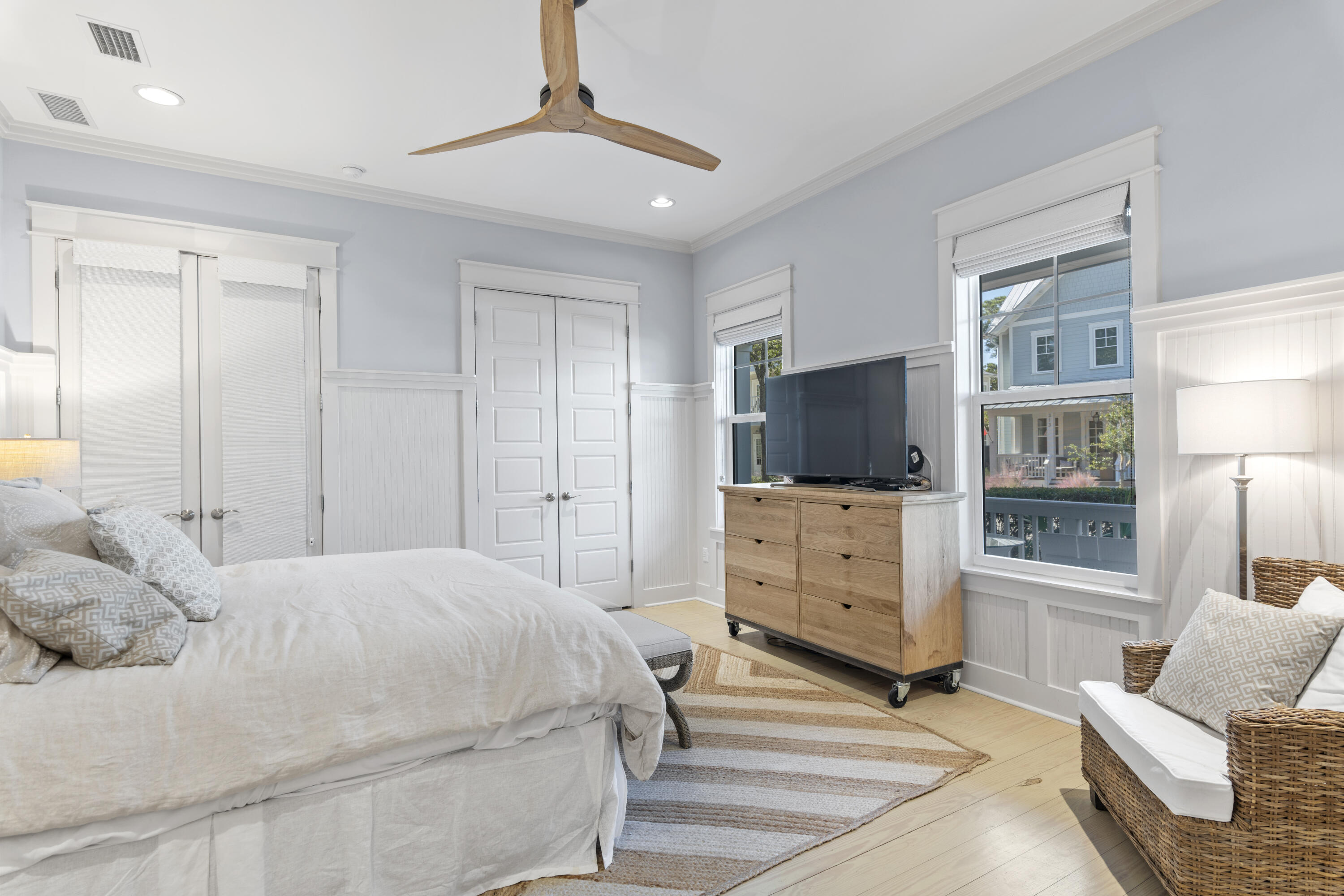 This Watercolor home is in the Cedar Woods area in Phase 4. The house features 4 bedrooms, 4.5 bathrooms, a bunk room, and a carport with three additional parking spaces.Aptly named On Golden Pond, the home is situated on of the prettiest lots in Watercolor, featuring a retention pond in the backyard and designated preserve areas on two sides of the house, which offer beautiful views and privacy. It is within easy walking distance to the Dragonfly pool, Publix and Seaside,along with all Watercolor amenities, including the WC Beach Club, tennis, and pickleball courts, nature trails, and private beach access. The first floor features a primary bedroom with an en-suite bathroom, storage space under the stairs, a walk-in pantry adjacent to the kitchen, and enclosed outdoor storage, as well as a powder bath. The laundry room has been updated to include a bar area with built-in cabinetry, an ice maker, and a Kitchen Aid beverage fridge. The kitchen has been updated with designer tile and quartz countertops.