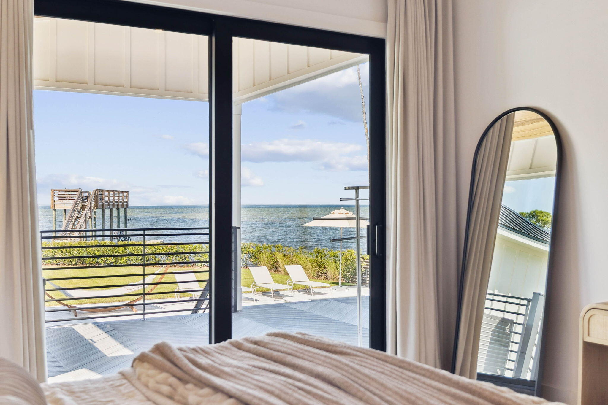 Welcome to this stunning new construction bay-front home in Miramar Beach, offering 3,035 square feet of well-designed living space. This property features four bedrooms and five bathrooms, along with a dedicated office and versatile loft, providing plenty of room for both comfort and functionality.The home boasts over 550 feet of covered porch, perfect for enjoying the beautiful bay views. A detached carriage house offers additional space for guests. For water enthusiasts, the private dock comes with a boat slip, making bay access easy and convenient.Enjoy the luxury of a heated and cooled pool and spa, ideal for relaxation and entertainment. The second-story viewing deck provides a perfect vantage point for taking in stunning sunsets or hosting gatherings.