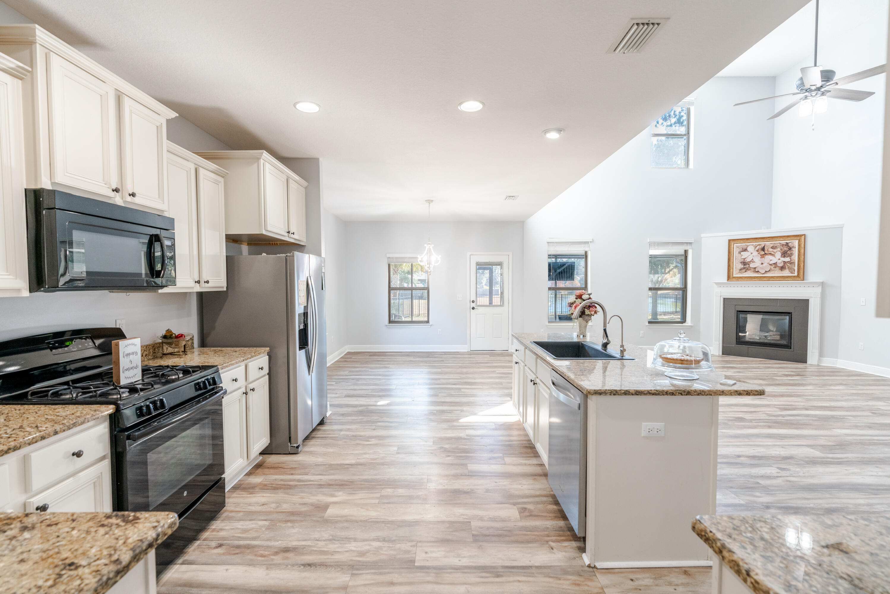 There's no place like (your new) home for the holidays! Brand new carpet, fresh paint throughout! Move in ready!!Welcome to 279 Windchime Way--where space, style, and serenity meet in the heart of Hammock Bay. This beautifully maintained 4-bedroom, 3.5-bath home offers over 3,100 square feet of living space across two stories, with thoughtful upgrades (see list in docs) and a peaceful pond view out back.Step inside to find two spacious living areas, a gas fireplace, trey ceilings, and a kitchen built for entertaining--complete with a large island. The primary suite is located on the first floor and features a sitting area, walk-in closet, and a luxurious bath with double vanities, garden tub, and separate shower. Upstairs, you'll find three generously sized bedrooms and two full baths, perfect for guests or growing households. One bedroom has its own en-suite full bath-perfect for guests or multigenerational living. Outside, enjoy a screened-in porch overlooking the pond, an open patio, and a sprinkler system, all on a 56-foot waterfront lot.
