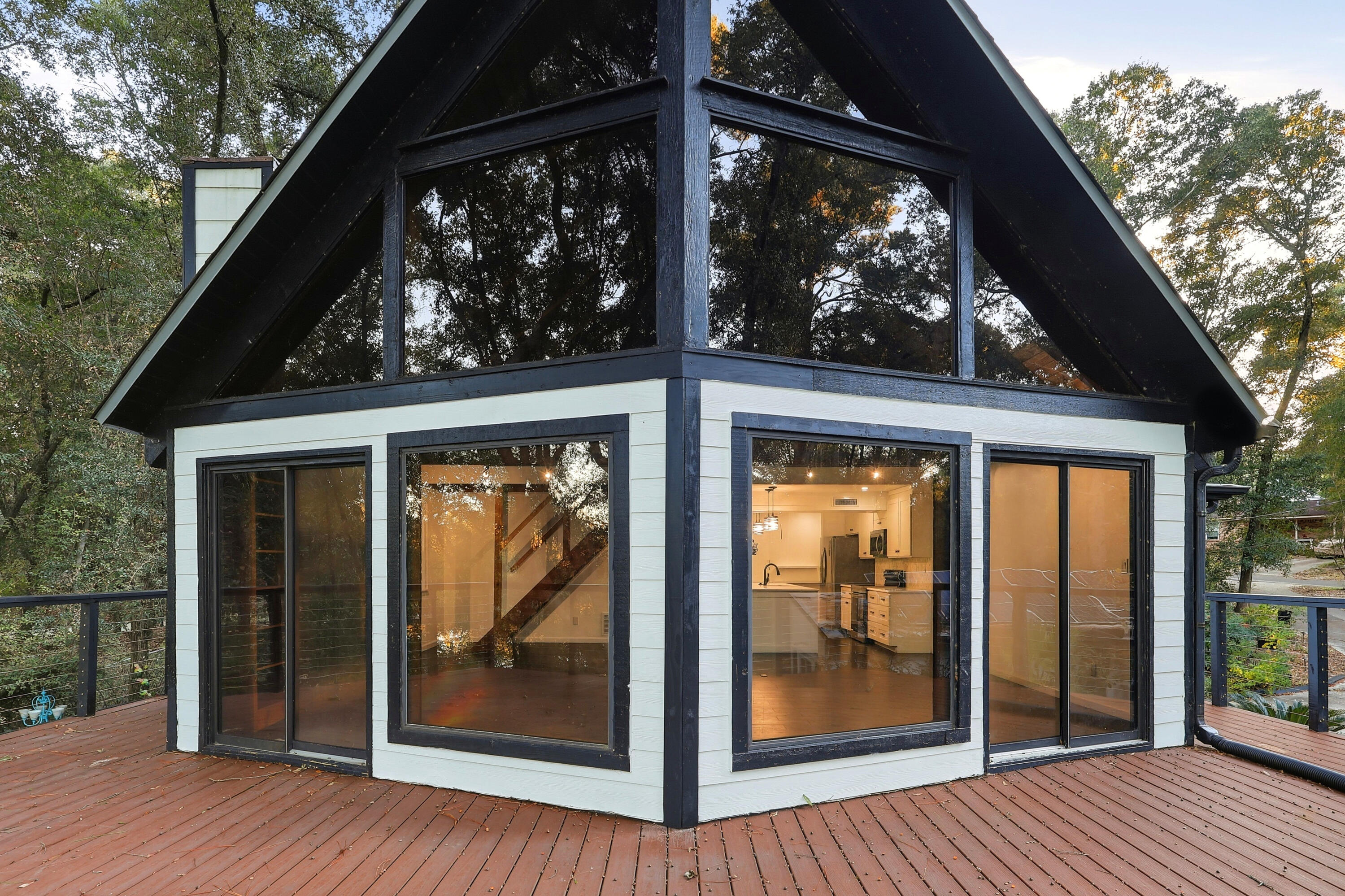 Discover the Pinnacle of Multi-Generational Lakefront Living! Welcome to 4578 Riley Road, a fully-renovated, solar-powered retreat where thoughtful design meets modern innovation. This extraordinary home is a rare find, offering two complete living quarters perfect for multi-generational families, an in-law suite, or ultimate guest privacy.This home shines with upgrades, including a fully-owned 14 kW solar system (completely paid off) with whole-home battery backup. Enjoy the best of lakeside living with the rare security of being high and dry--not in a flood zone. Step inside the main floor to a beautifully open layout with new laminate flooring. The chef-inspired kitchen is the heart of the home, boasting Samsung stainless steel appliances, quartz countertops, and custom cabinetry. This level also features a reimagined primary suite with a private ensuite bath. Above, the expansive loft has been transformed into a bright home office, complete with a half bath and its own mini-split for perfect comfort.