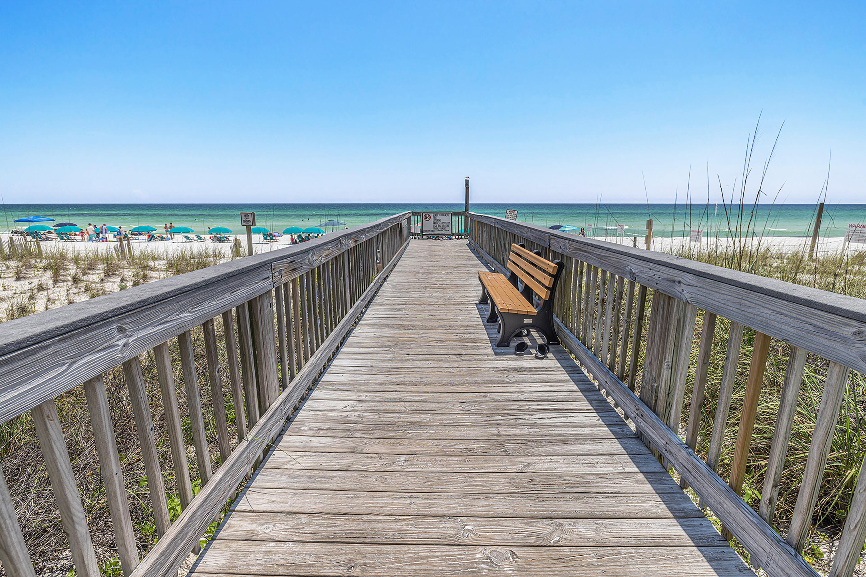 Enjoy stunning views of the Sound from this fourth-floor unit! This beautifully furnished 2-bedroom, 2-bath condo on Okaloosa Island offers a spacious layout with a large patio accessible from both the living area and primary bedroom. You'll appreciate the ample storage space--rare for a condo this size--making it perfect as a primary residence, second home, or vacation rental. Laundry facilities are conveniently located on the fourth floor, and you're just a short walk from the reserved beach area and the breathtaking views of the Gulf of America. El Matador offers 500 feet of private Gulf-front beach access along a beautifully developed shoreline. Community amenities include two swimming pools (one heated), tennis, pickleball, and basketball courts, a fitness center and sauna.
