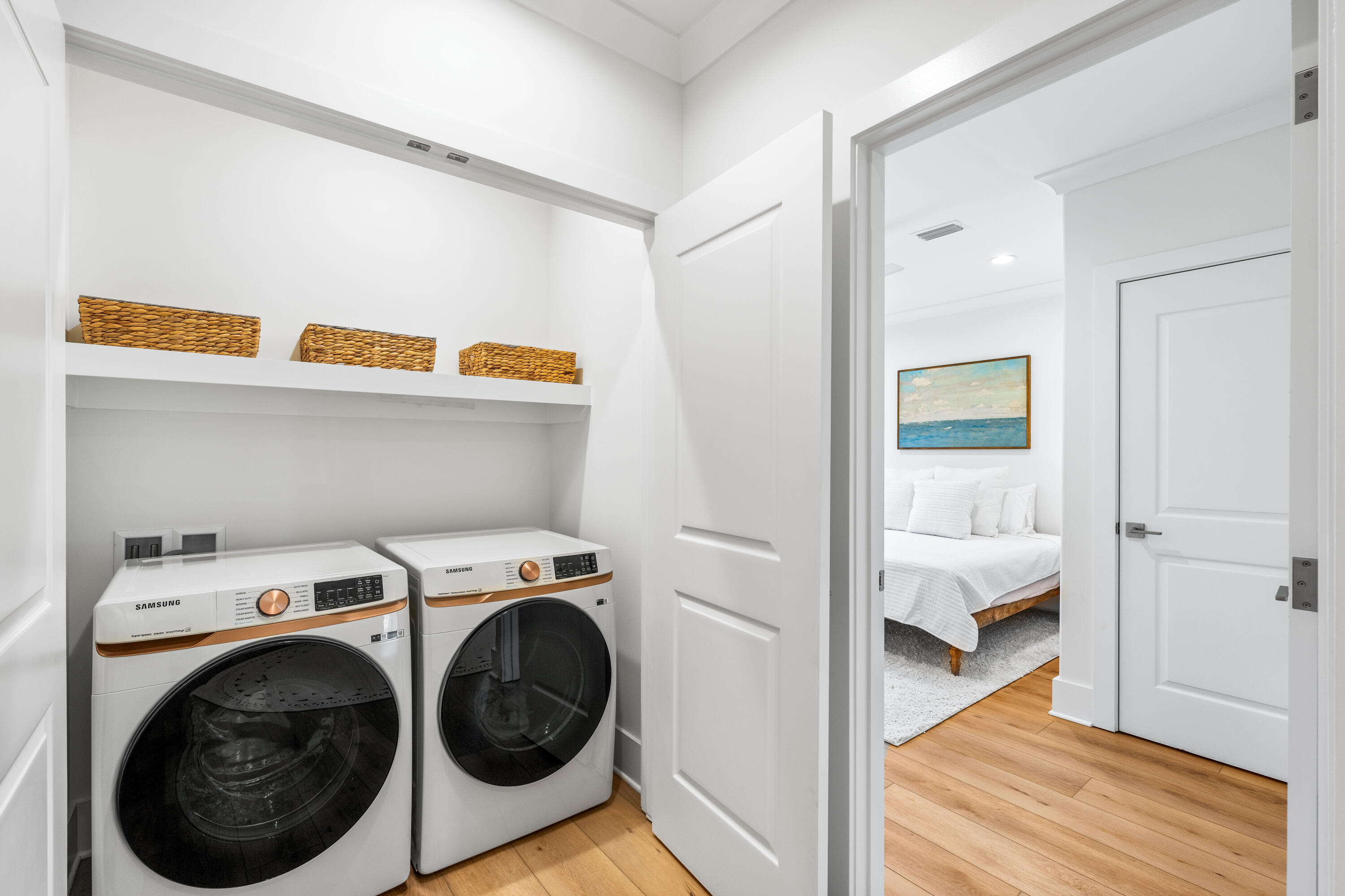 Coastal living meets modern elegance at this nearly new home perfectly situated south of Highway 98, offering convenient access to 30A's renowned beaches, upscale shopping, and dining. Designed by one of the premier builders on 30A, this 4-bedroom, 3.5-bathroom home beautifully blends thoughtful craftsmanship with functional design. Step into the open floor plan, where upgraded lighting fixtures and stainless-steel appliances, gold fixtures and marble countertops elevate the gourmet kitchen. Honey-toned wide plank wood floors and white walls create a soothing sanctuary throughout the home. The open living and dining areas are bathed in natural light and open to a covered patio overlooking the forest. The second-floor primary suite is a tranquil haven featuring a seamless glass shower with designer tile, while the first-floor guest suite boasts a private en-suite bathroom for added comfort. Two additional second-floor bedrooms share a bathroom. A one-car garage provides convenience and extra storage.