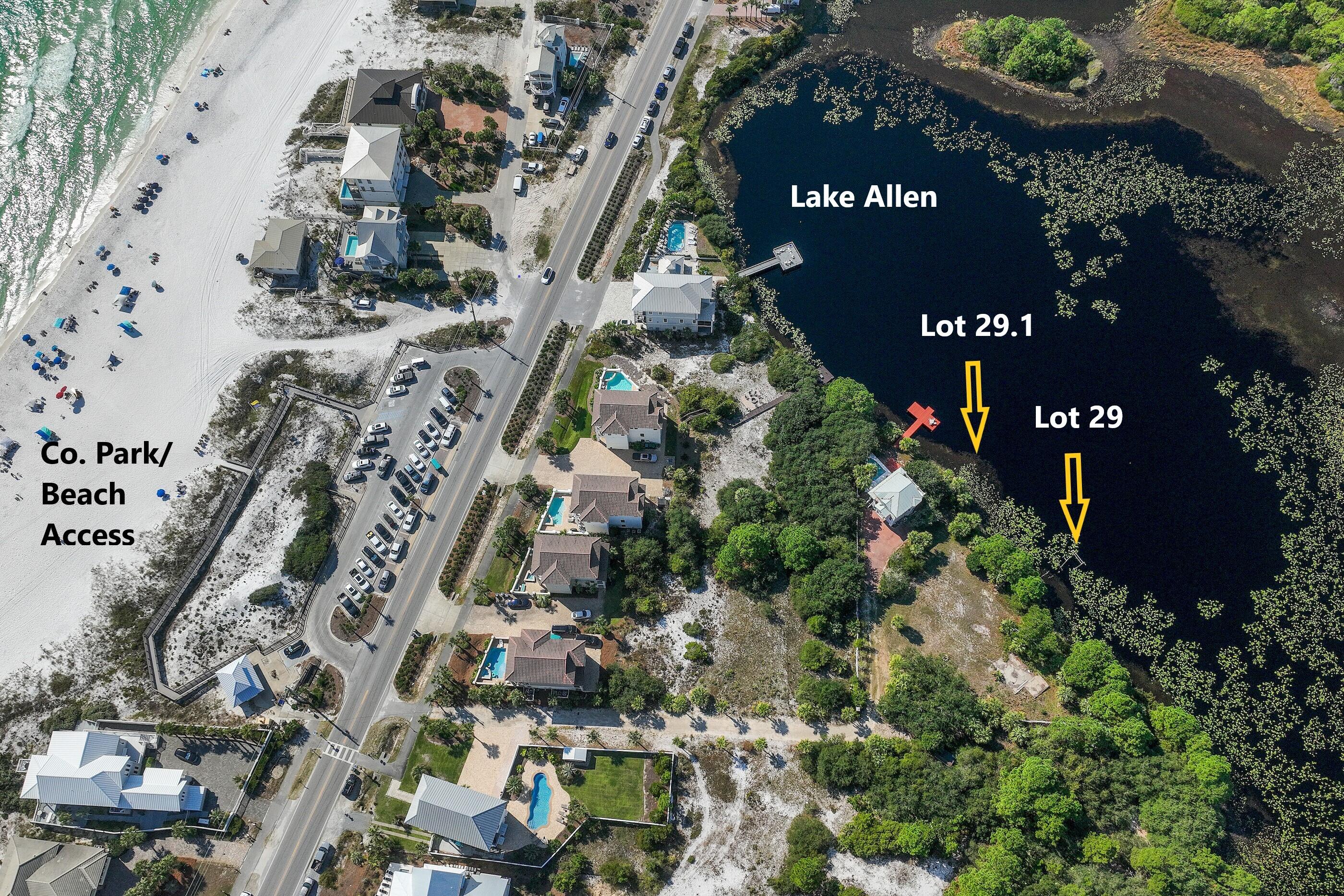 Rare Opportunity! 2 sizable, adjacent lots of record on premier coastal dune Lake Allen. Private setting totaling .84 acres with 334' lake frontage on pristine natural sanctuary in Dune Allen Beach. Only +-128 yards via private driveway to Fort Panic County Park/Beach Access. No HOA-County code applies. Zoned 'Neighborhood Infill.' Future Land Use 'Residential.' CDLPZ setback 50' from shoreline; 4 story 50' height limit; all Flood zone 'X' except immediate shoreline. Main & Carriage Houses allowed on each parcel. Panoramic lake views with possible Gulf views from multi-story residence.