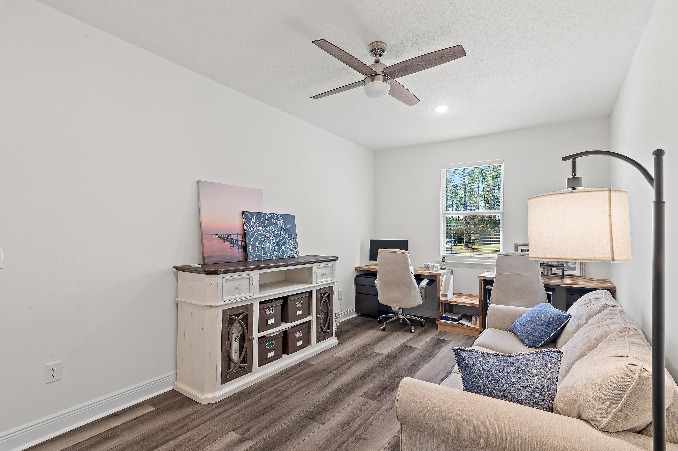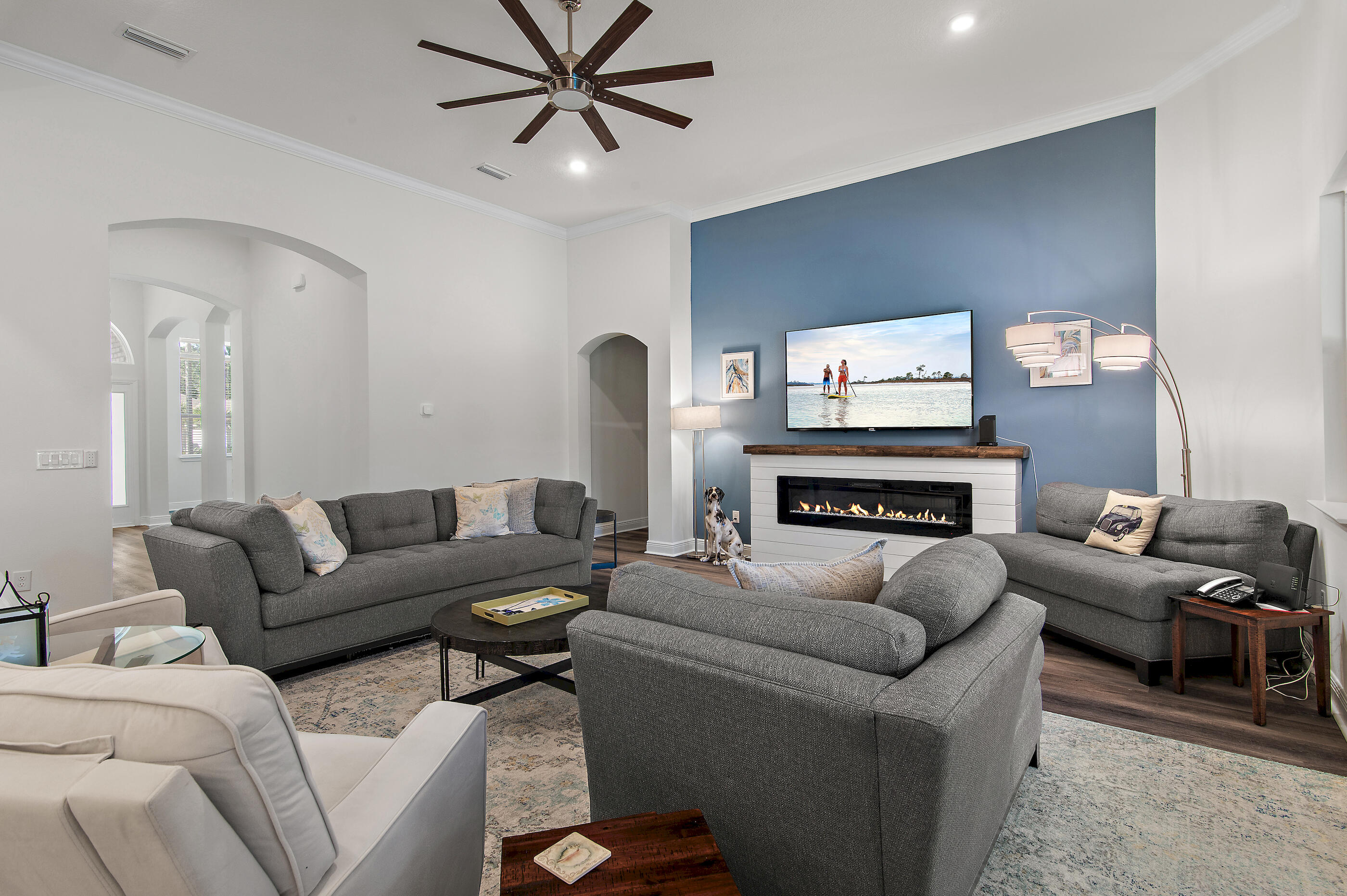 Seller is offering 10k towards buyer closing costs!! Situated on the 11th hole of the Windswept Dunes Golf Course, this stately home in the coveted community of Windswept Estates offers the perfect blend of elegance, comfort, and space. Set on nearly half an acre, this single-story residence welcomes you with soaring 12-foot ceilings and an open concept design that seamlessly connects the kitchen and great room; ideal for modern living and entertaining. Designed for large families or those who love to host, the home features 4 spacious bedrooms, a parolor, and a dedicated office/media room. The gourmet kitchen boasts a generous island, an eat-in breakfast area, and a formal dining room--perfect for gatherings of any size. An oversized two-car garage provides ample space for vehicles, a golf cart, or extra storage. The oversized laundry room offers flexibility to double as a craft or hobby space, adding even more functionality to the home. A private well and irrigation pump help maintain the beautifully landscaped yard with ease and efficiency. Step outside to your private backyard retreat and enjoy summers poolside while taking in the peaceful golf course setting. This property combines comfort, versatility, and a beautiful locationready to welcome its next owner.