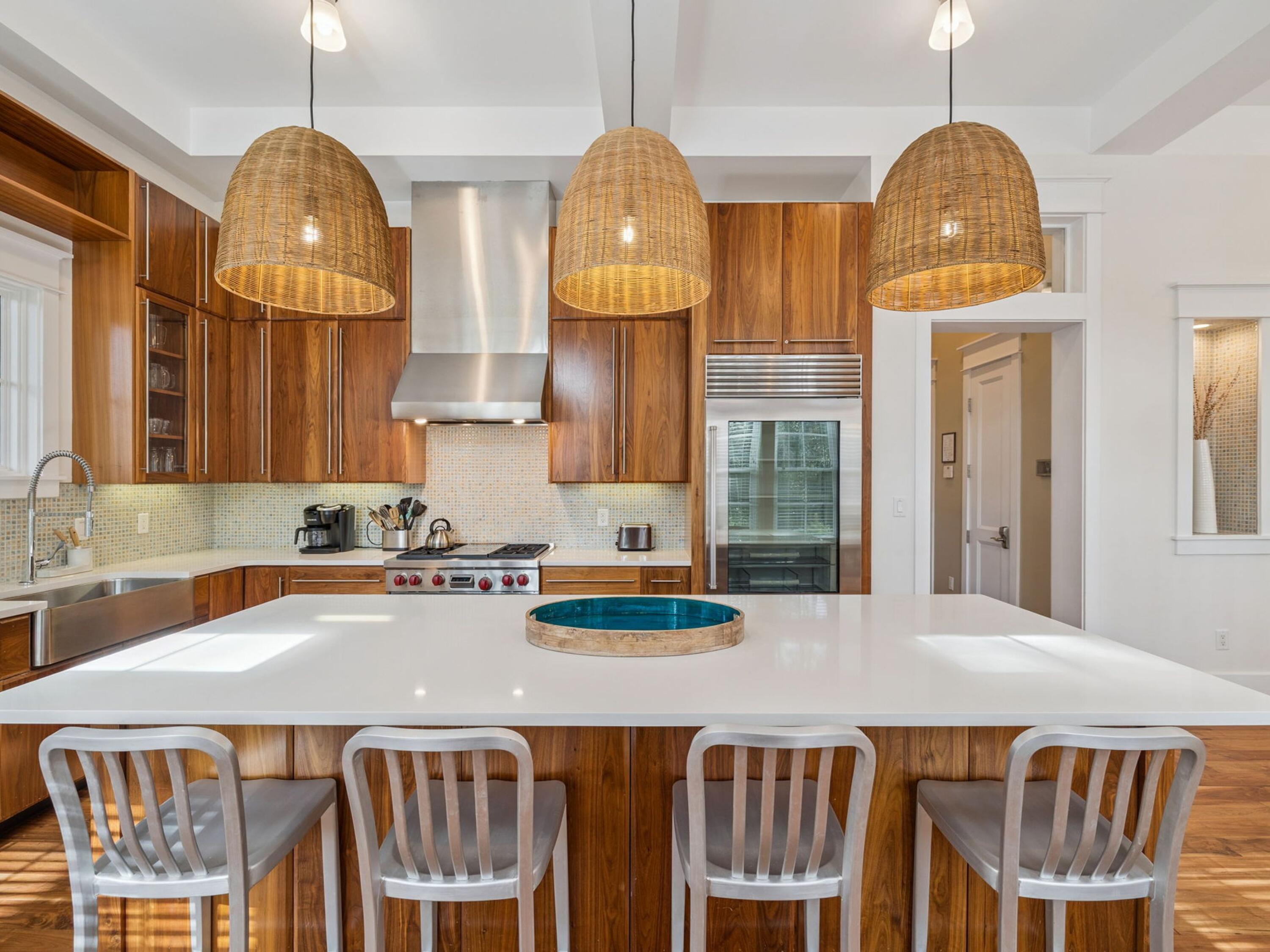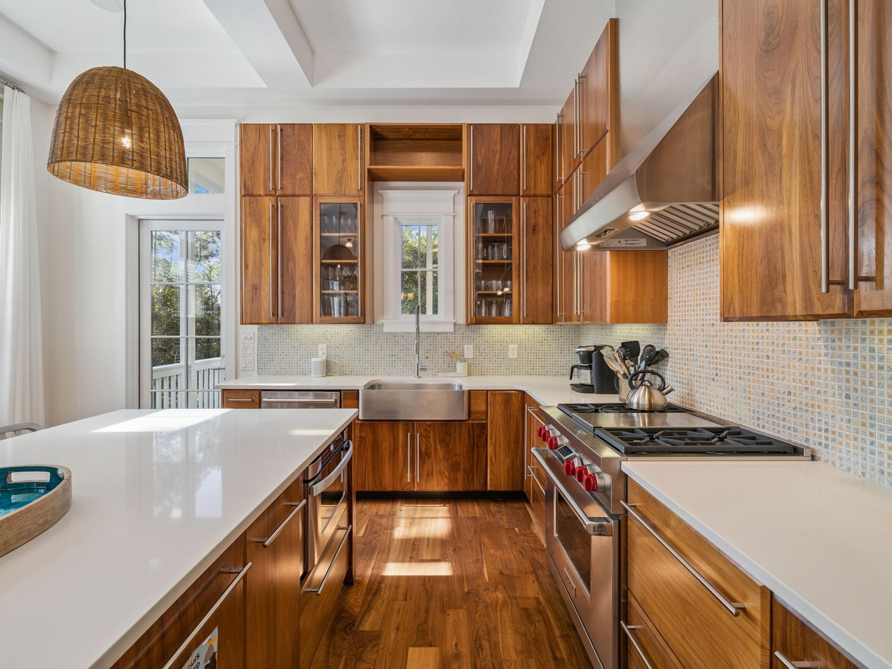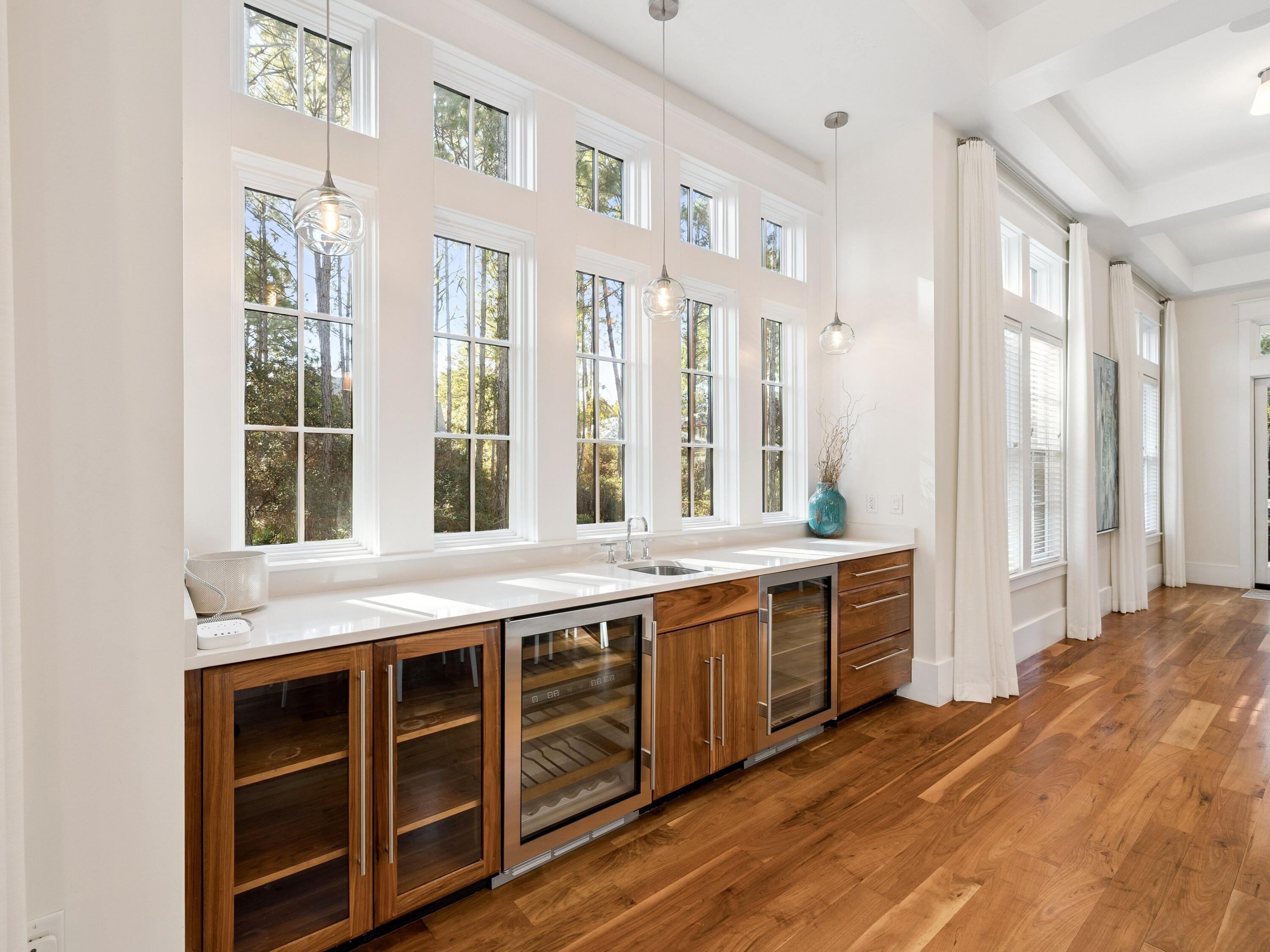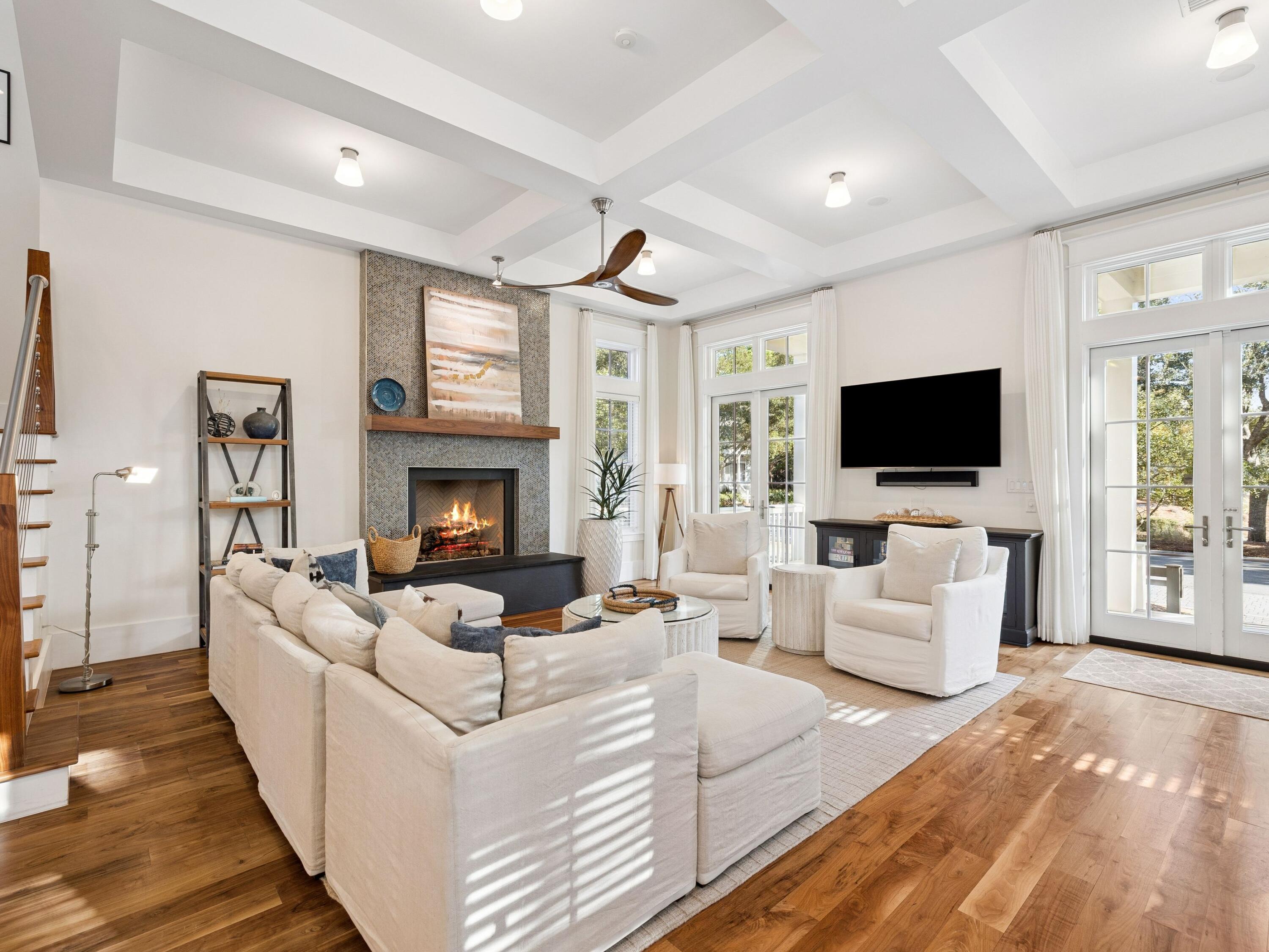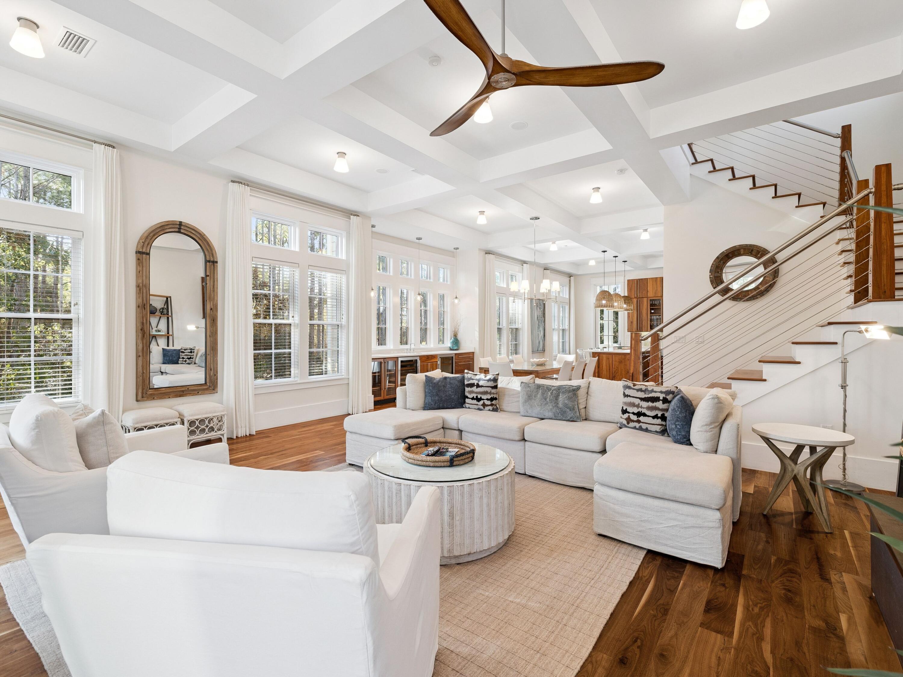 Perfectly positioned on the edge of Phase Two, this stunning five-bedroom, four-and-a-half-bathroom WaterColor home offers the ideal blend of privacy, luxury, and convenience. Designed by the renowned Geoff Chick, this architectural masterpiece embodies a seamless fusion of timeless coastal elegance and contemporary flair. Ideally located near Camp WaterColor, the home sits on a spacious, serene lot overlooking the lily pond, offering a tranquil setting with room to add a private pool. The first floor is designed for effortless entertaining and everyday living featuring open-concept living, dining, and gathering space with soaring ceilings and walls of windows that bathe the home in natural light. The warmth of American walnut floors flows throughout, adding timeless coastal elegance.