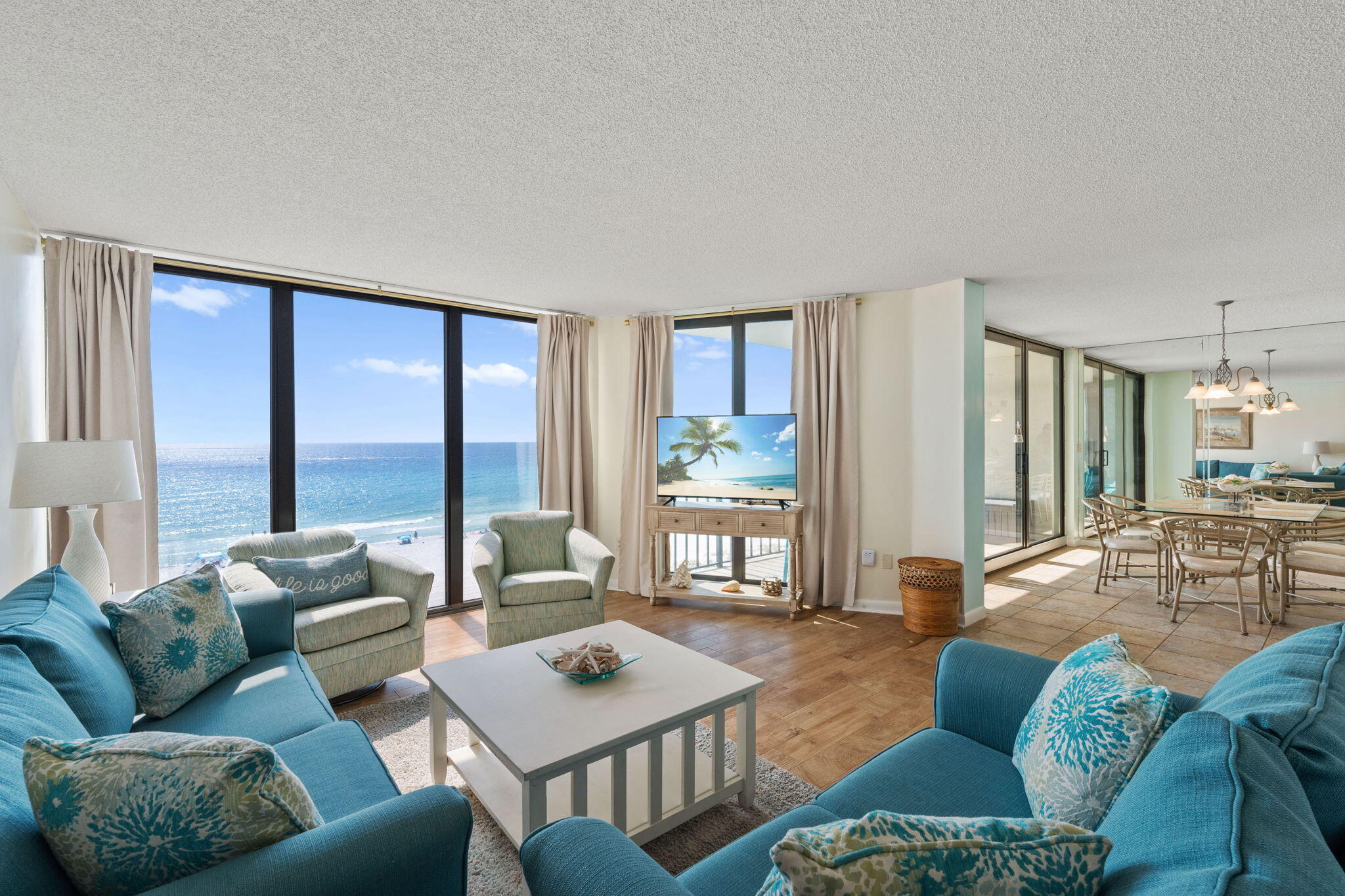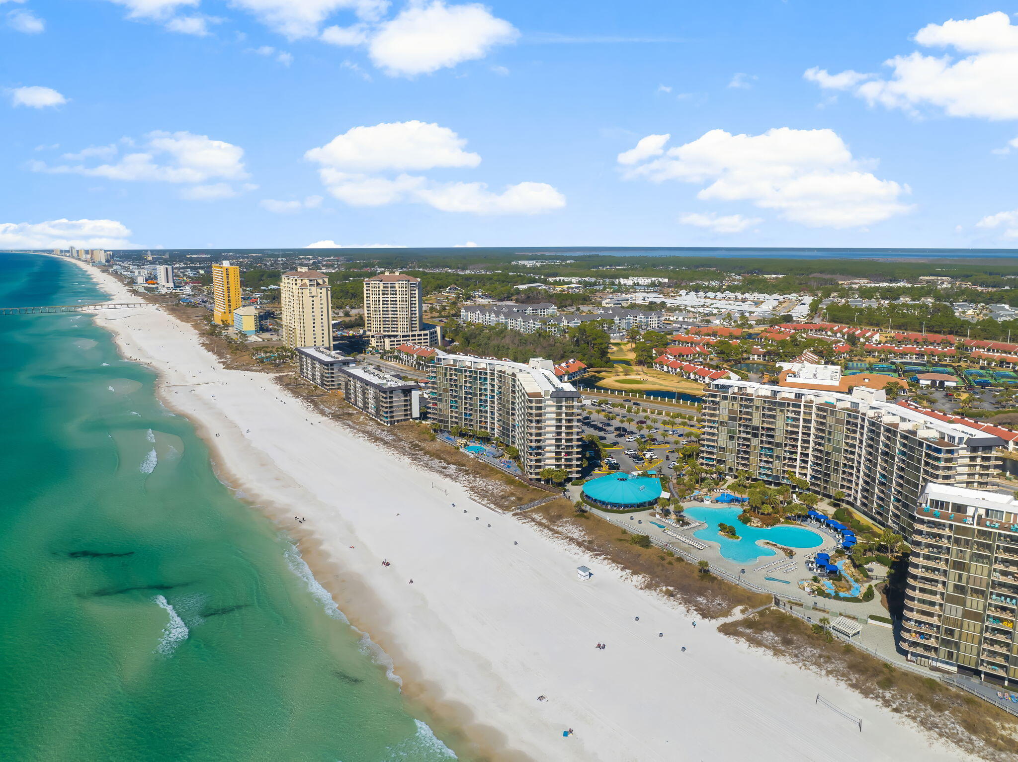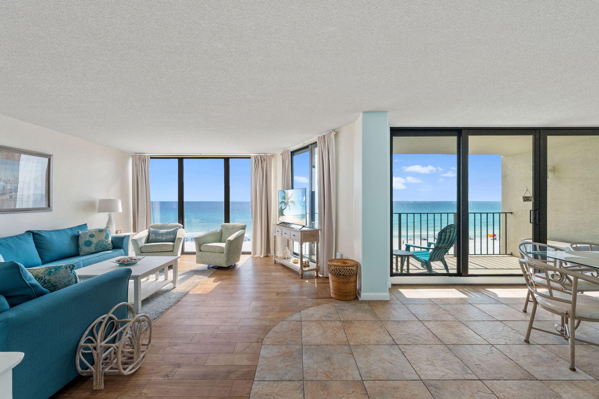From Highway 98 and Richard Jackson Blvd go south on Richard Jackson straight across Front Beach Rd and right into office for Edgewater. Get pass from Office and proceed thru gate to Tower Two. Unit is 507 on desirable fifth floor.