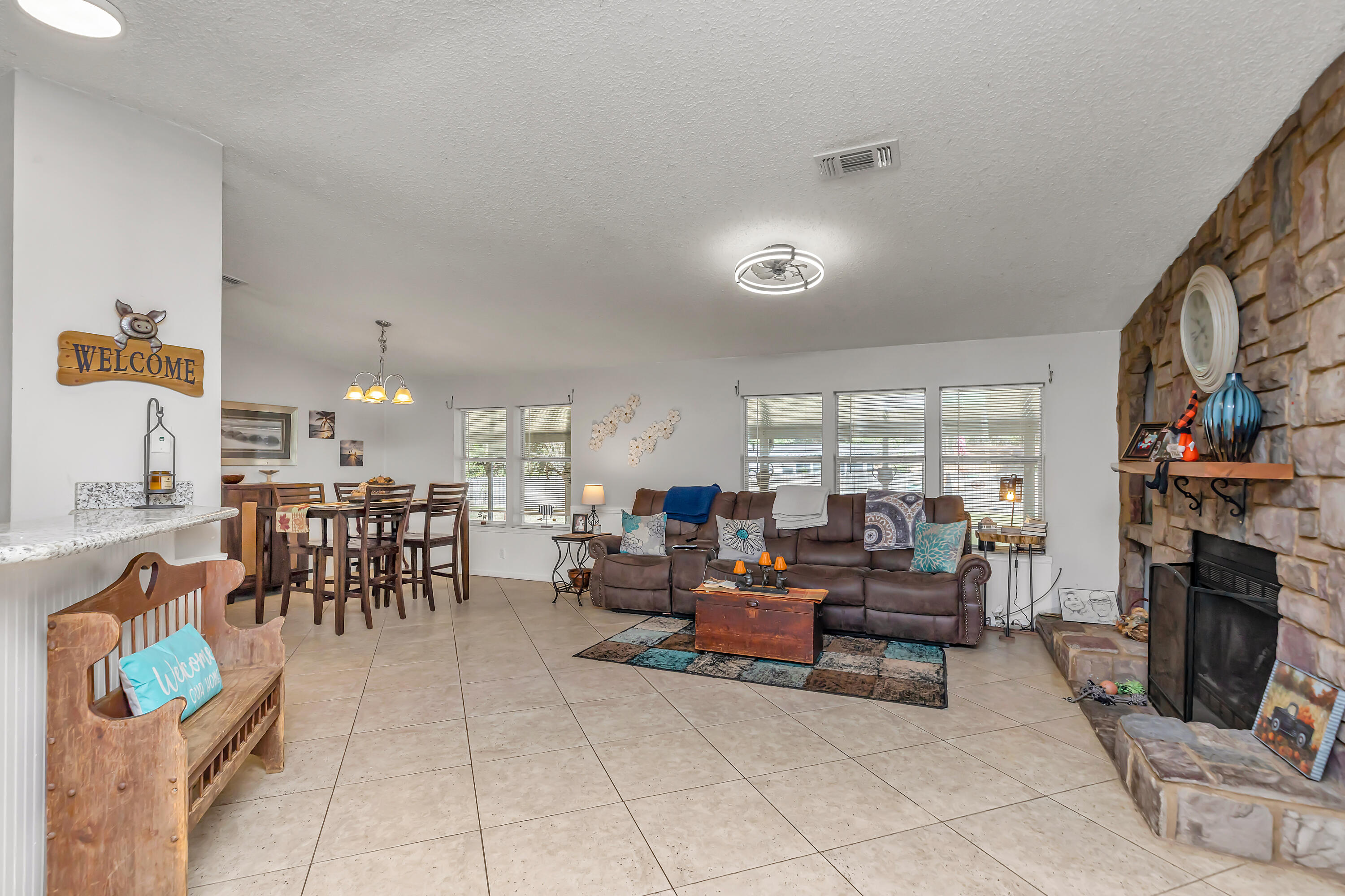 Situated on just under an acre of land! This beautifully maintained Navarre home offers 1,606 heated square feet and 2,901 total square feet under roof--providing space, comfort, and true Florida living. Inside, you'll find vaulted ceilings, tile flooring throughout, and a wood-burning fireplace that adds warmth and character. The primary suite features a jacuzzi tub, separate shower, and walk-in closet. Step outside to enjoy the screened-in Florida room, perfect for relaxing year-round, or cool off in the above-ground pool.The property also includes a metal roof, covered workshop, two-car carport, one-car RV port, and plenty of parking for your boats or extra vehicles. A boat and lawnmower convey with the sale for added convenience. Located just one mile from the Live Oak Street Dock boat ramp, this home offers easy water access while being close to shopping, schools, and Navarre Beach.
