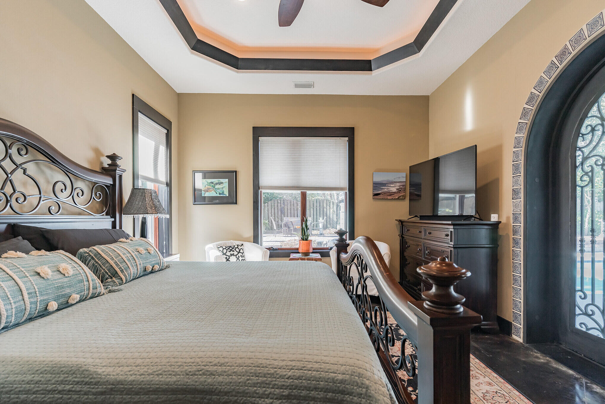 This amazing Mediterranean villa located in One of Destin's favorite neighborhoods, Destiny West is a gated community situated directly across Scenic 98 from the stunning white sand beaches and sparkling waters of the Emerald Coast! Besides the beach, Destiny's amenities include a clubhouse, fitness center, swimming pool, hot tub, tennis, basketball court and gated access. This home provides luxury, conveniences and a practical floorplan well suited to modern lifestyles! Made of ICF construction and located on a cul-de-sac, The primary living area is on the first floor, plus the property offers incredible outdoor living, dining, relaxing, and entertaining spaces surrounding the gorgeous salt-water pool.