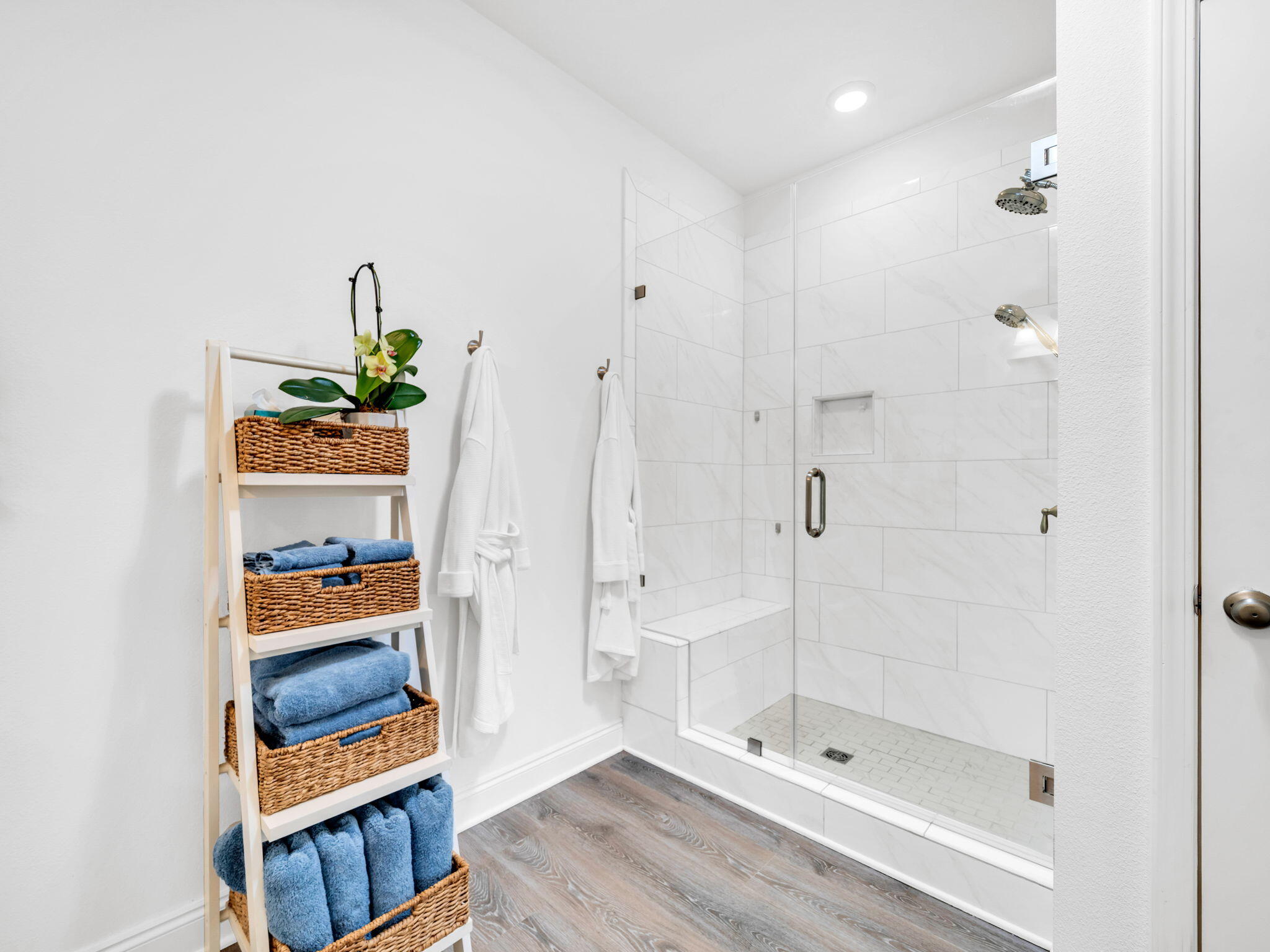 Cohesive and durable Luxury Vinyl Plank flooring runs throughout the home.