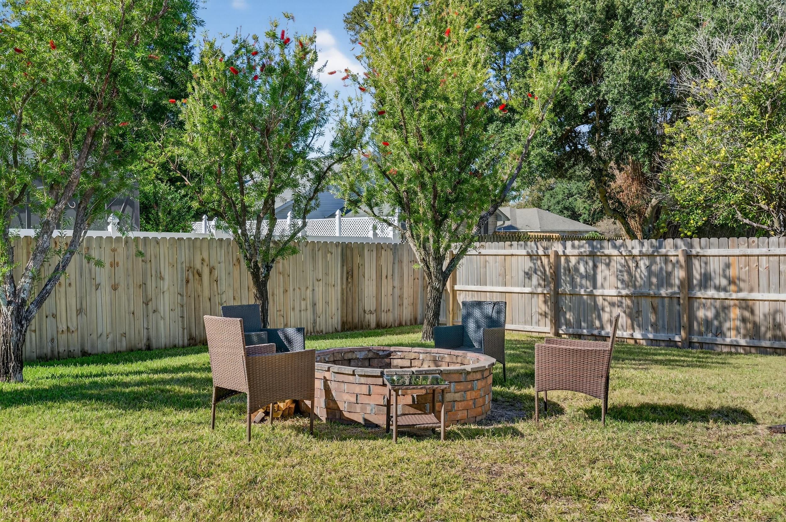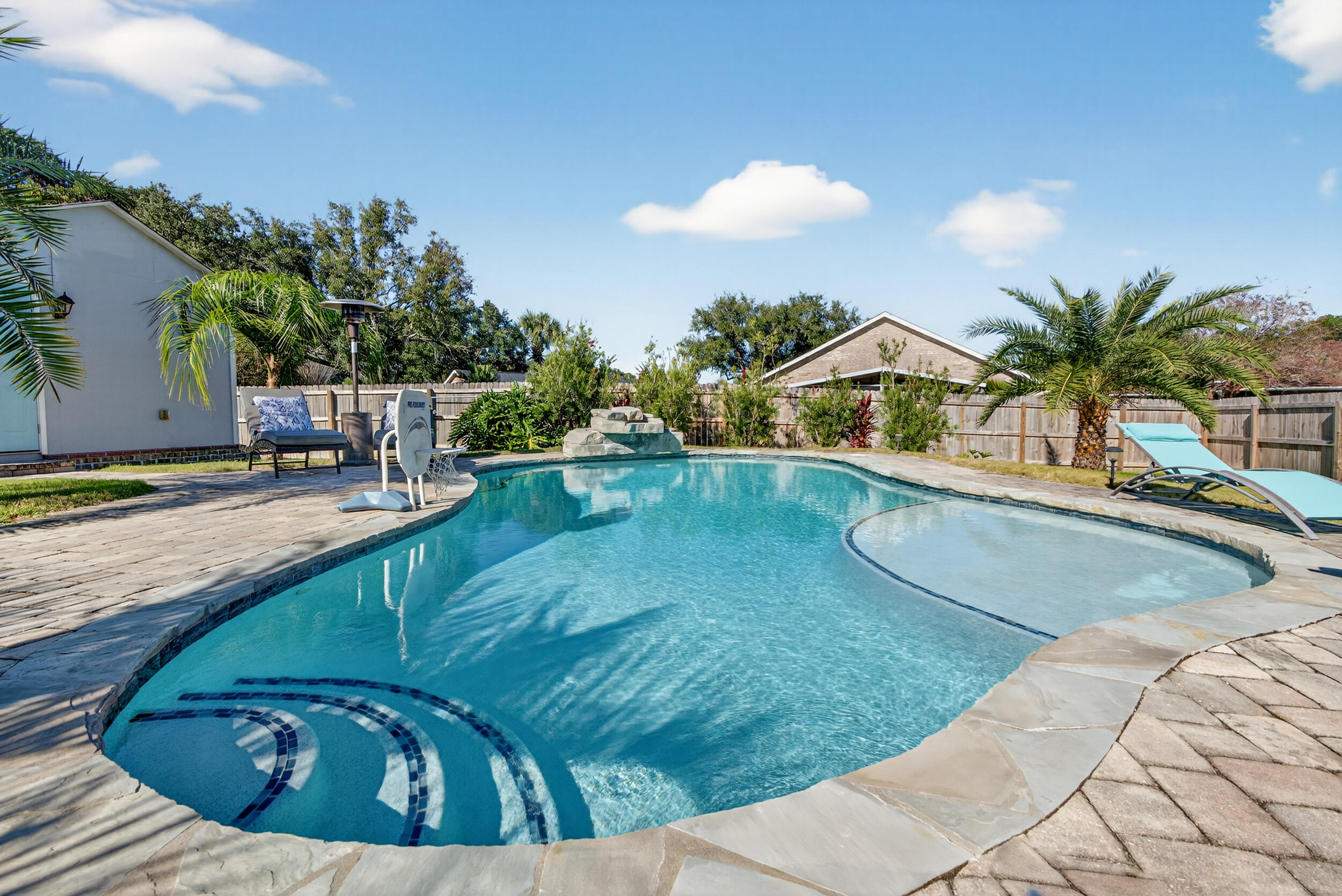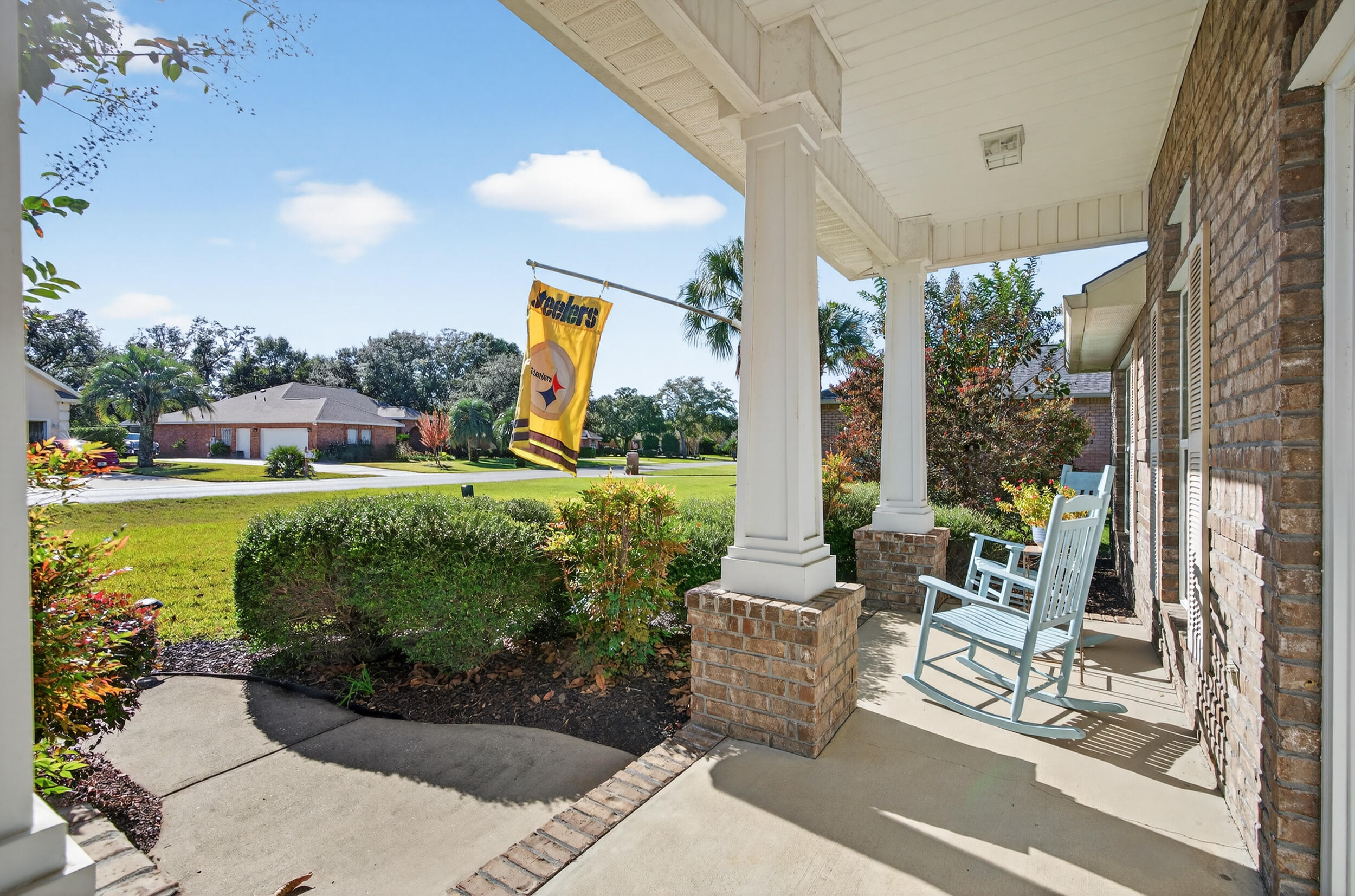 Under Contract subject to a 72 hour kick-out clause. This 4 sides brick home with private pool and pool house has been meticulously maintained by its owners. Located in the golf course neighborhood of Hidden Creek, this popular split floor plan boasts 4 bedrooms and 3 bathrooms with plenty of room to spread out. The kitchen is the heart of the home and is open to the living and dining area which is ideal for entertaining. There is a 3-car garage making storage of beach toys or a golf cart easy. The wow factor is in the large backyard. The sparkling in-ground pool and pool house makes this home the perfect staycation destination. Thoughtful updates include kitchen granite countertops and backsplash, crown molding, landscaping and palms, and newly installed hot water heater. Please request a full list or see the list under documents. As a resident of Hidden Creek, you'll enjoy access to a variety of upscale amenities including a clubhouse with resort-style pools, a fully equipped fitness center, golf membership, tennis courts, a waterfront park, and deeded access to Santa Rosa Sound perfect for boating, kayaking, or simply soaking in the natural beauty of the area. Septic was last pumped in 2023 and the filter was cleaned. Location is beind the master bedroom next to the patio. Transferable termite warranty for re-treat only. Add this special property to your holiday shopping list and schedule a showing today! Information is believed to be accurate, but buyer should verify anything deemed important. Link to virtual tour: