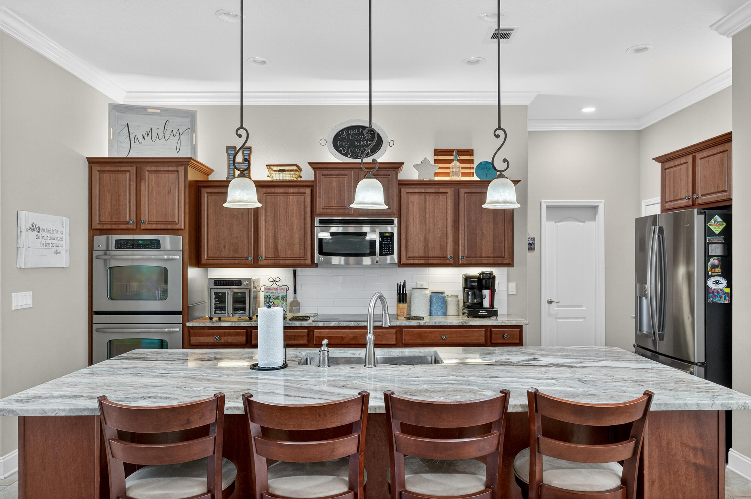 | INTERIOR | Ceiling Crwn Molding,Ceiling Raised,Ceiling Tray/Cofferd,Floor Tile,Floor WW Carpet,Kitchen Island,Lighting Recessed,Pantry,Split Bedroom,Washer/Dryer Hookup |