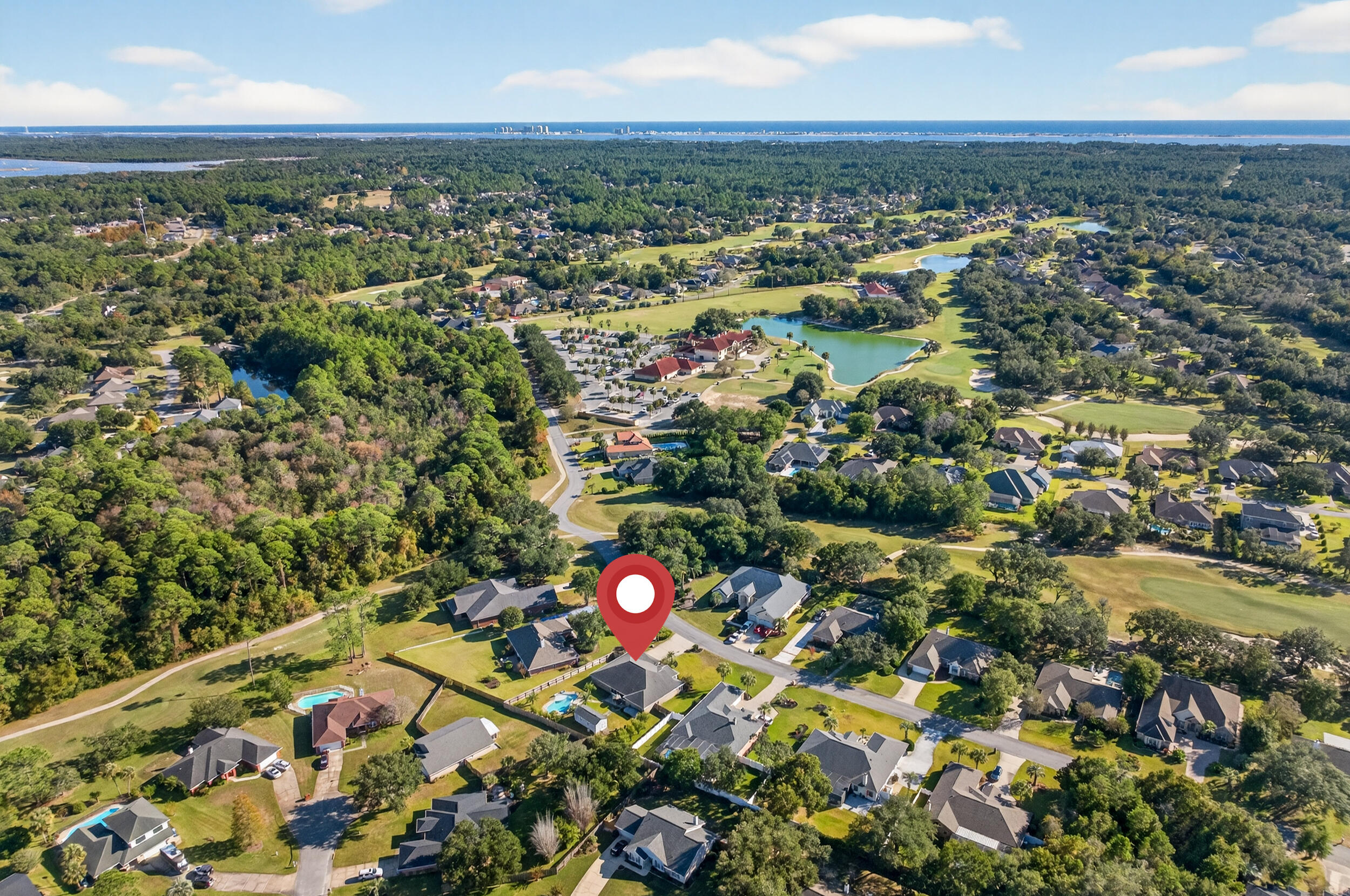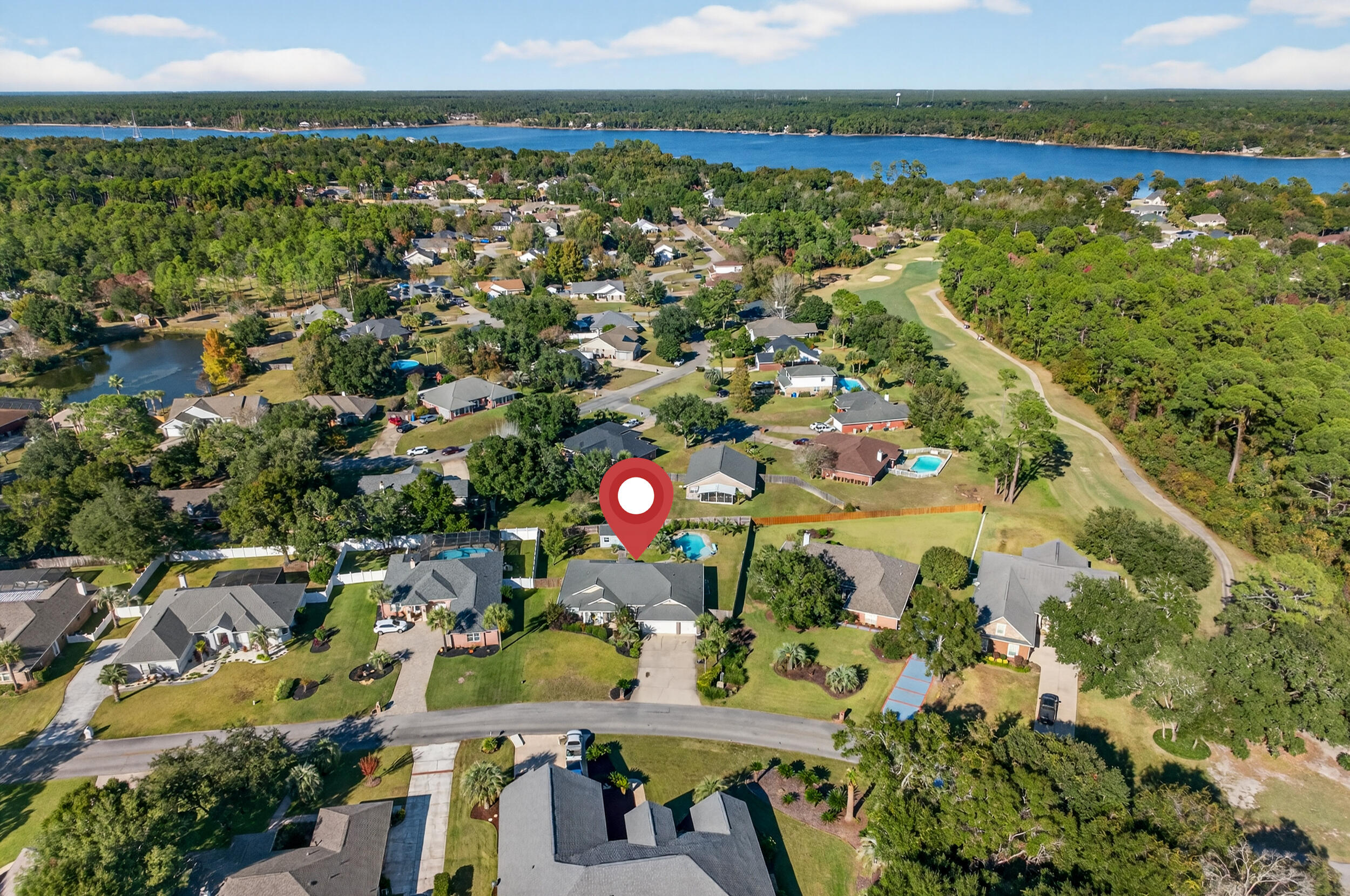 From US Hwy 98 turn right on to FL 87 N. for 2.2 miles then take a left onto E Bay Blvd for 3.4 miles and turn left onto PGA Blvd. The house is 0.5 miles on the right.