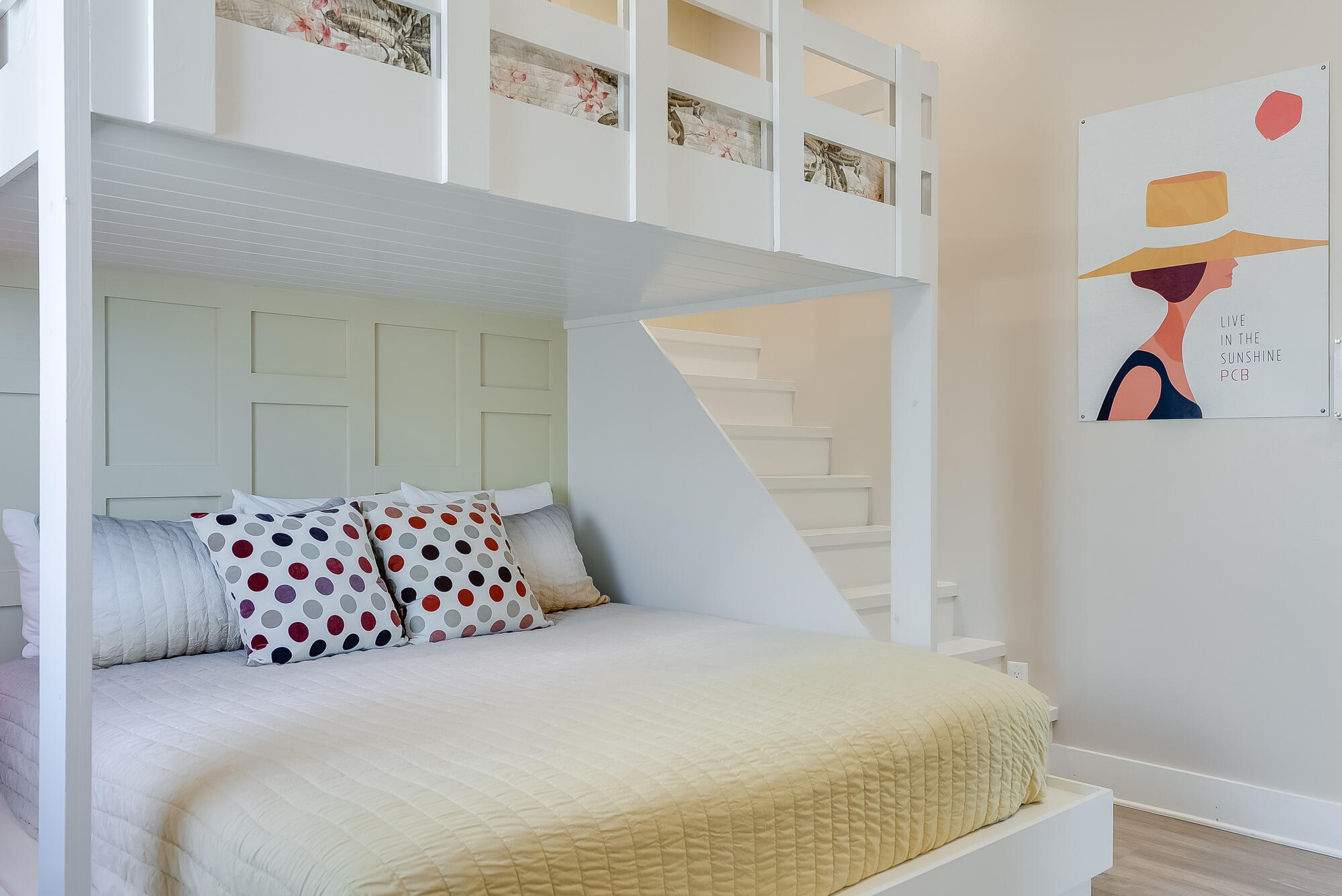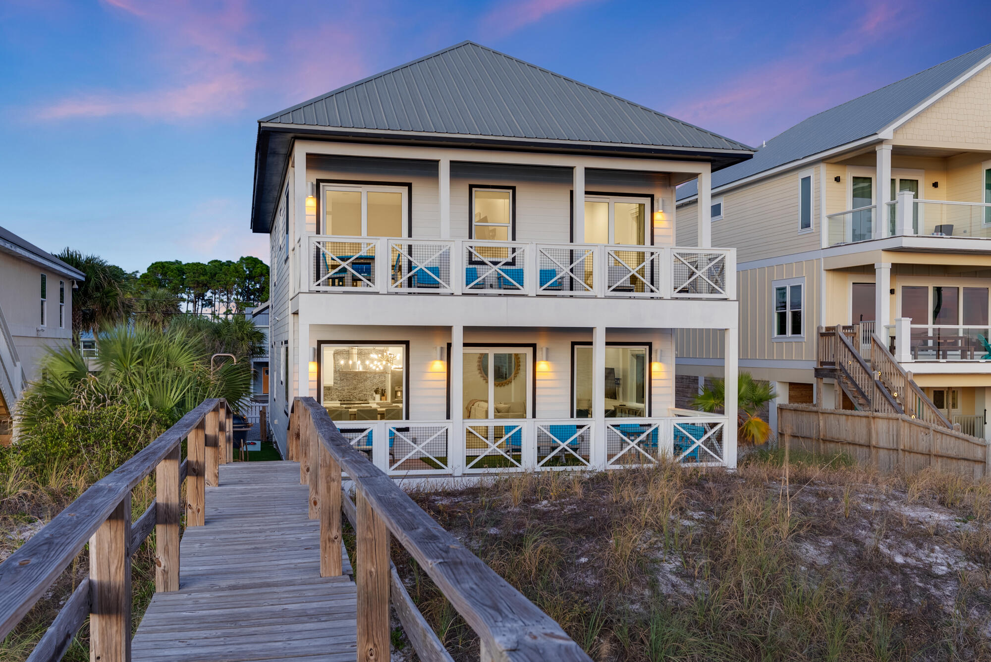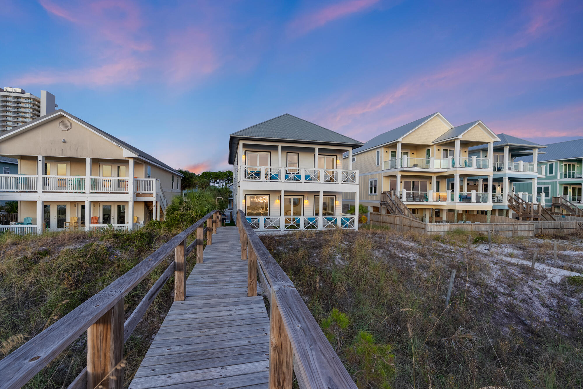Gulf-front living at its finest! Fully renovated in 2023, this 5-bedroom, 4-bath beachfront home sits on the ever so popular shores of Panama City Beach, seamlessly blending modern comfort with timeless coastal style. Luxury vinyl plank flooring extends throughout, complemented by custom-tiled bathrooms, high-end furnishings and a contemporary kitchen outfitted with stainless steel appliances and sweeping water views--also enjoyed from the spacious upstairs bonus living area.The bonus space features a wet bar, mini fridge, and ice maker, making it the perfect spot for relaxing or entertaining.Enjoy breathtaking sunsets from two Gulf-facing decks, one on each level, or take your private beach walkover straight to the sand. The exterior features an outdoor shower, a paver driveway with supplemental oyster-shell parking, and a turfed side yard ideal for games like cornhole. The 2-car garage has been transformed into a game room with shuffleboard, ping pong, and foosball. Additional features include an Avien tankless water heater, extra refrigerator and a mini-split AC system for the game room.