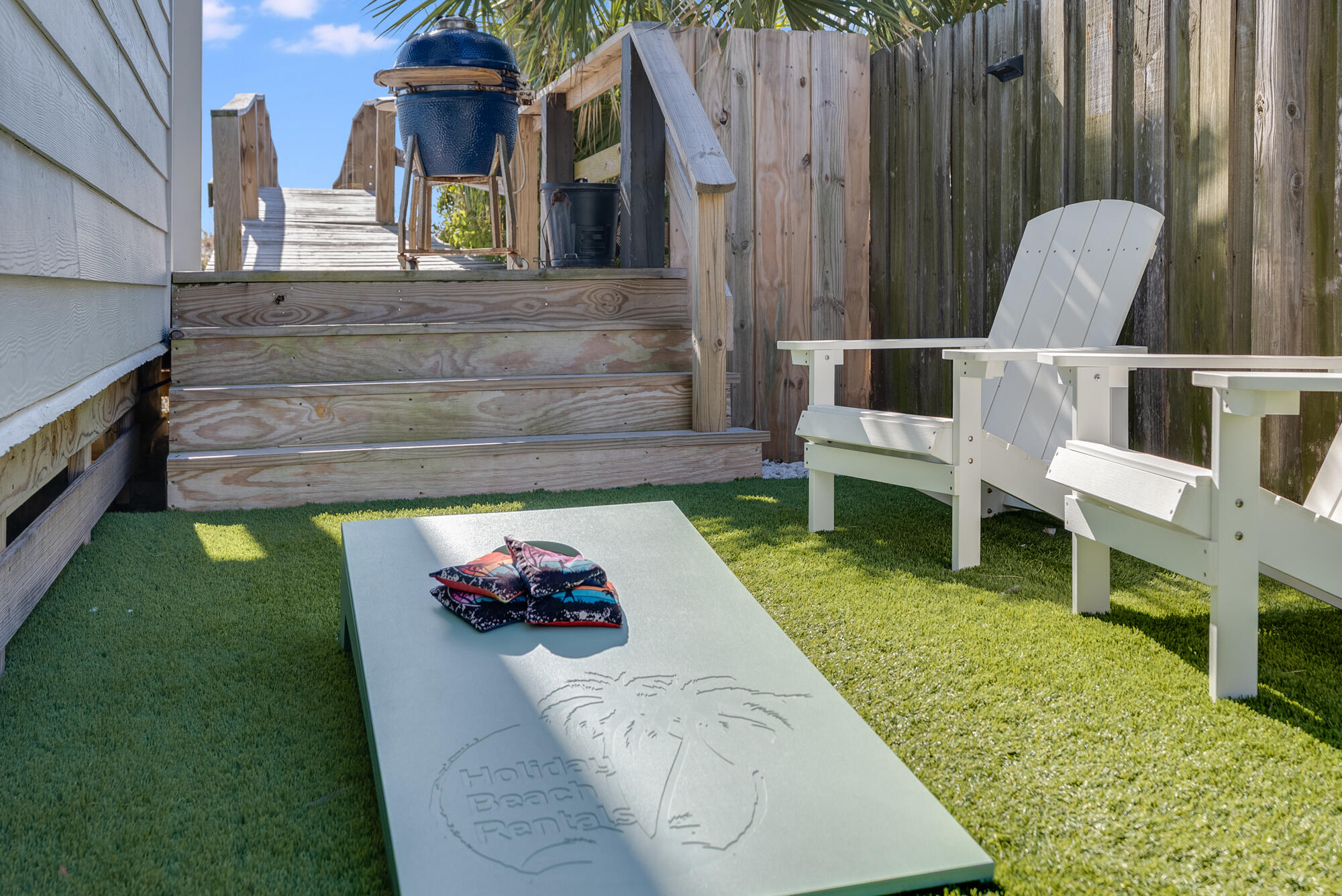 From Pineapple Willy's Restaurant on S Thomas Dr., head East on S Thomas Dr. for approximately .1 miles. Take a right on Beach Blvd. Continue East for another .1 miles and the Beach House will be on the right (Gulf Front Beach House). If you pass the public beach access, you have gone too far.