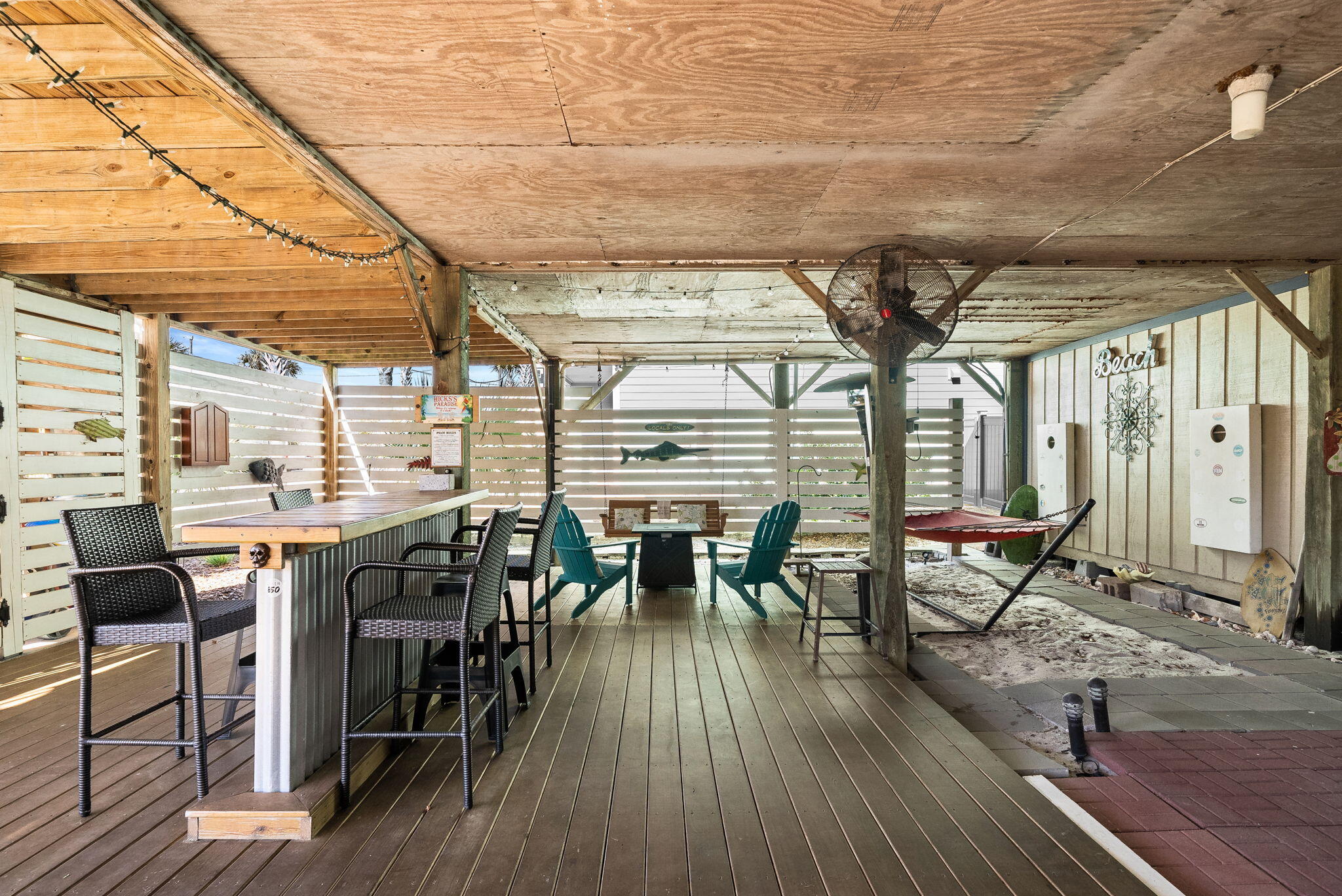 Welcome to your turnkey coastal retreat just 1,000 feet from the sugar-white sands of Panama City Beach. This short-term-rental-approved home is packed with updates, including a brand-new roof installed in 2025 with warranty, a tankless water heater added in 2023, a new AC system from 2022, and all new plumbing completed in 2020.Elevated on pilings, the property features a fun beach bar under the home, an outdoor shower, a hammock area, and a cozy firepit--perfect for Airbnb guests or your own weekend escape. The spacious wrap-around porch captures refreshing salty breezes and offers the ideal spot to unwind after a day at the beach. You can even see the beach access right from the driveway. This home comes partially furnished.