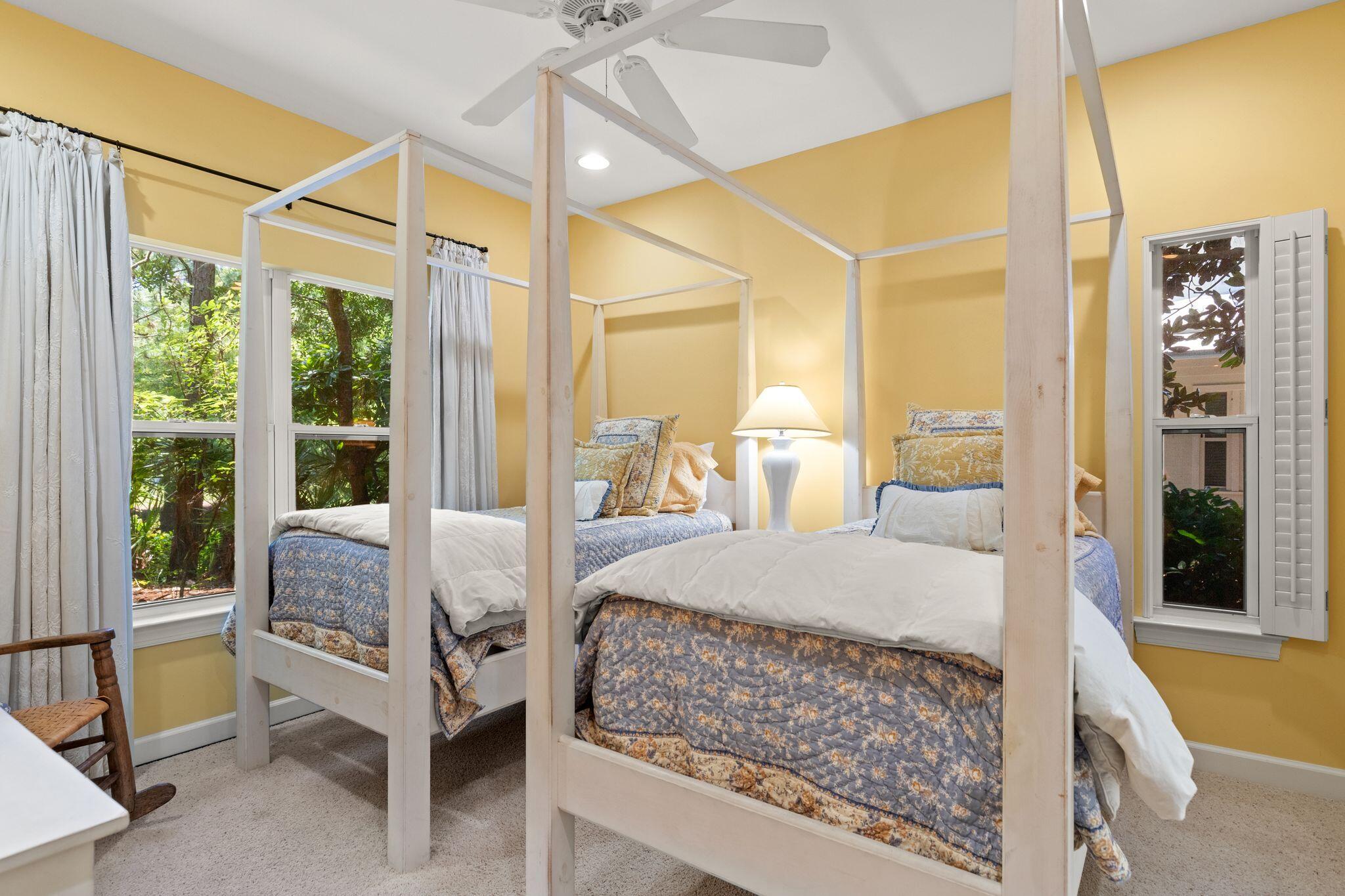 Southern coastal design and decor define this lakefront cottage in the popular Sandestin community of Prestwick Place. Perfect for families and entertaining, with three bedrooms /three baths. Two bedrooms ensuite are on the first floor and the entire second level is devoted to master suite with a huge deck overlooking the lake. A large front porch invites one to relax in the swing and enjoy seeing neighbors while the back porch is perfect for lingering over morning coffee or ending the day with family. Bring the fishing poles so kids can fish from the lakefront dock. Just steps from an SOA pool and the pro shop for two golf courses, Prestwick is convenient as well to the Village at Baytowne Wharf, Grand Boulevard and the beaches. Furnished w/exceptions.