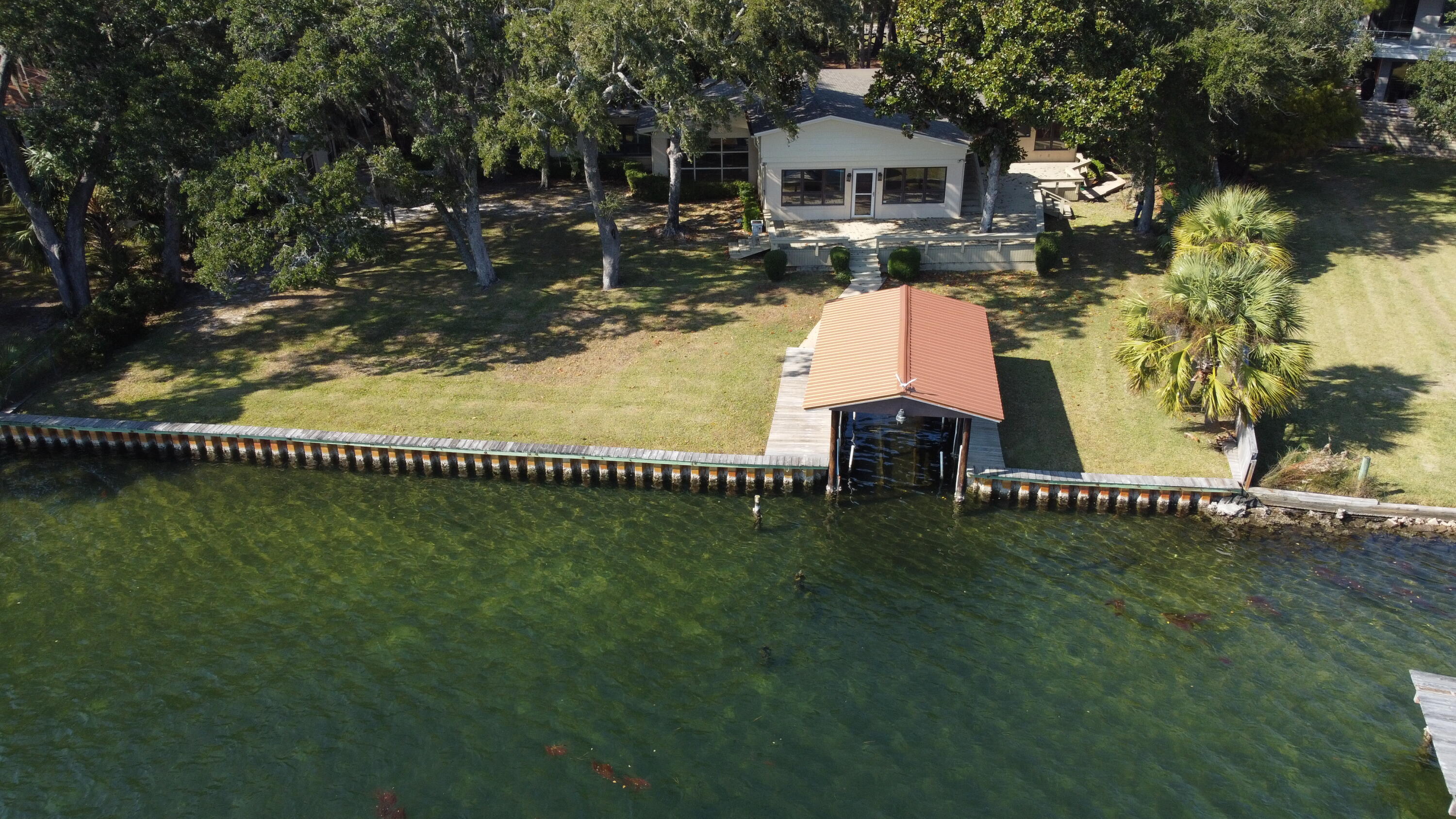 Rare opportunity: this 4,029 sq ft single-story residence claims 120 feet of waterfront on 0.8 acres--first time publicly offered since its original construction in 1960.The property delivers what waterfront buyers seek: direct bay access via private dock with boat lift, expansive deck and patio spaces designed for water-watching, and the kind of generous single-level floor plan that's increasingly difficult to find at this scale. 3-bedrooms, 3-baths, including a substantial primary en suite. The 22x45' garage features 22 feet of built-in cabinets and workspace, accessed via a circular driveway.The 1960 stucco-brick construction reflects the architectural confidence of its era--clean lines, thoughtful orientation to capture water views, and the kind of indoor-outdoor flow that defined mid-century living. Recent roof replacement (2022).
