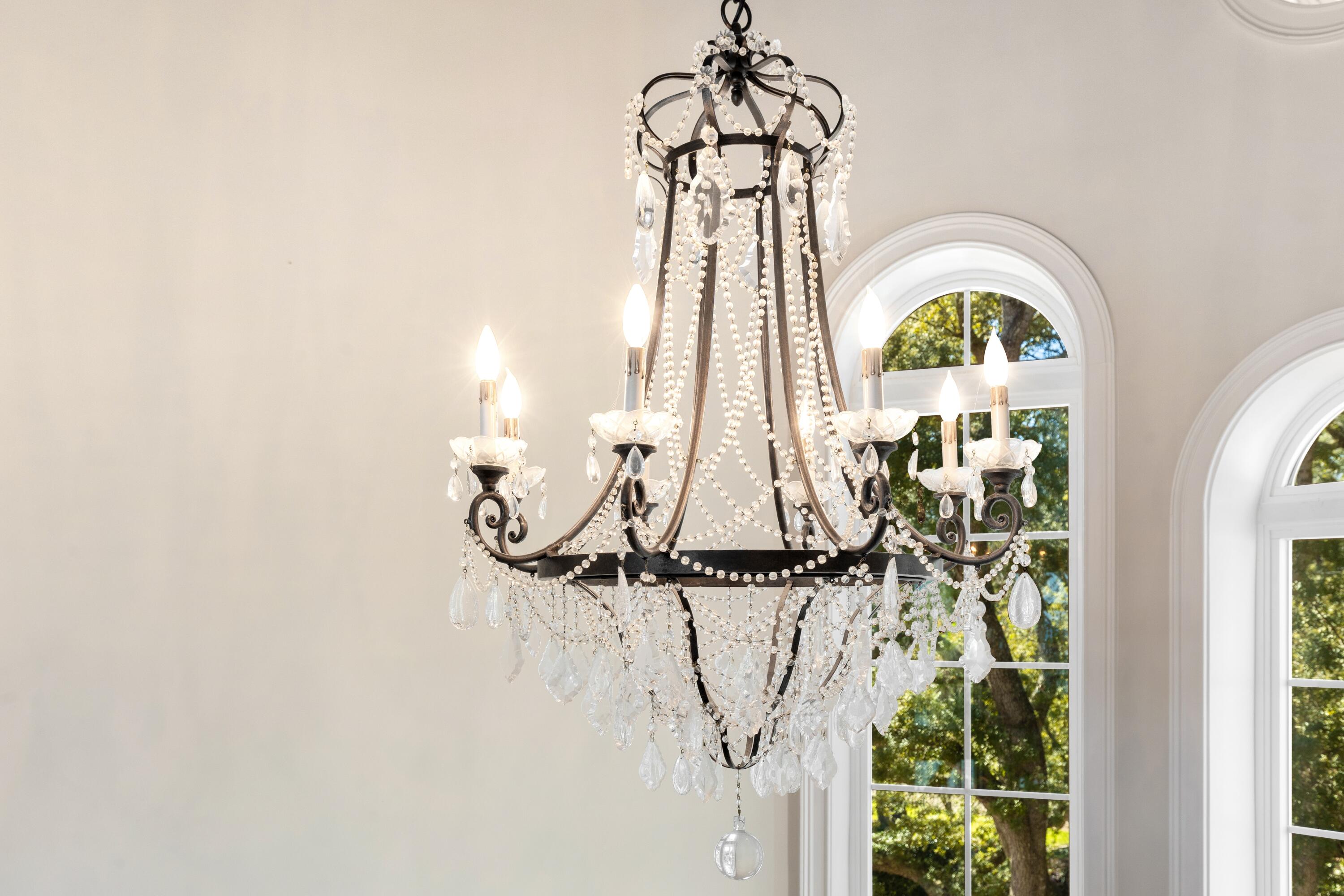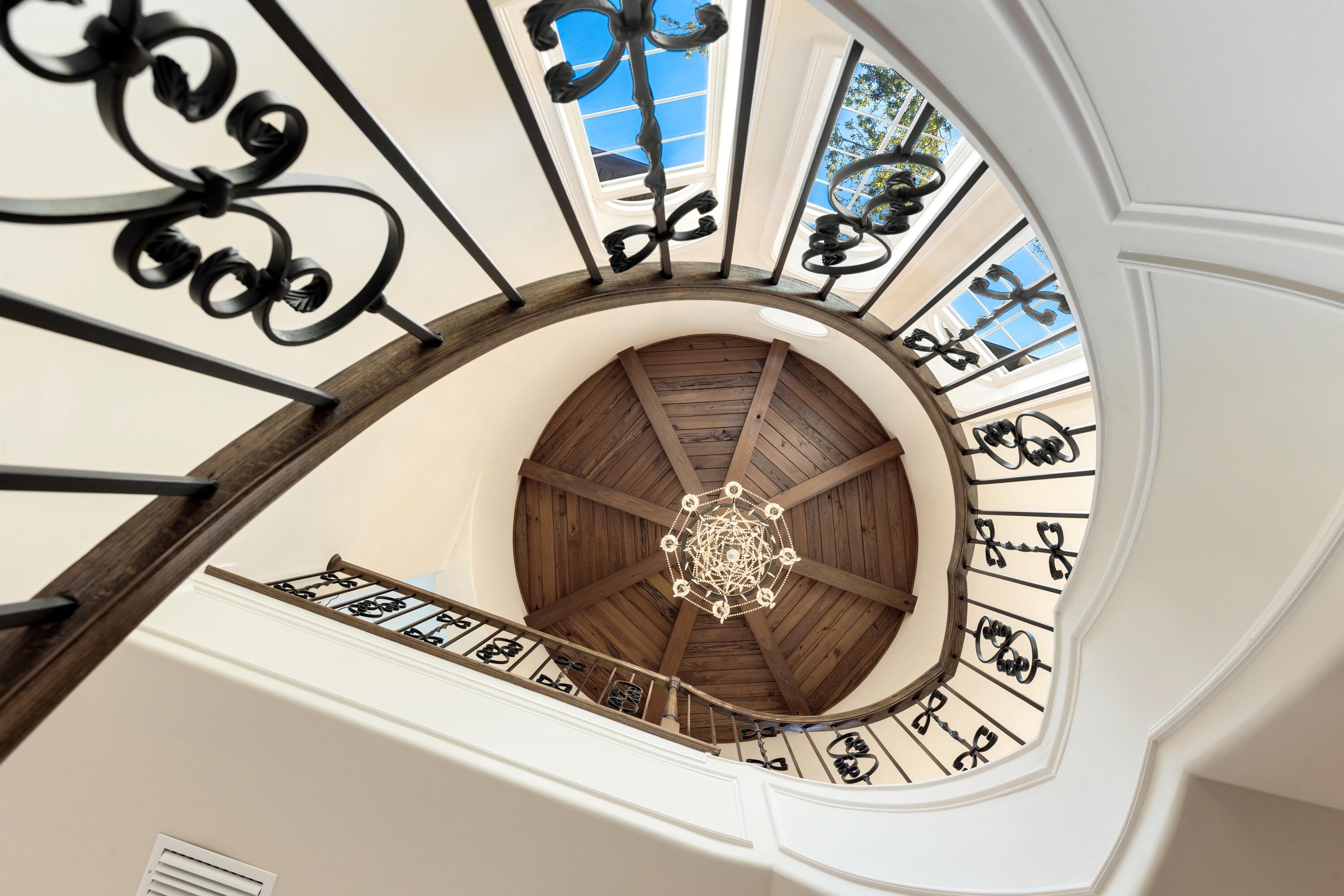 After walking up the paved driveway and past lush landscaping with mature trees, the grand entrance begins with bay views through custom 10-foot Spanish Cedar and beveled-glass front doors that lead into a foyer centered around a free-standing engineered travertine staircase crowned by a motorized chandelier set in Pecky Cypress ceiling. Chiseled marble flooring extends throughout the first floor, guiding you through expansive living and dining areas framed by two full-wall retractable sliding glass doors that open to sweeping bay views. Four gas fireplaces, custom wood cabinetry, granite surfaces throughout, and a dedicated wet bar with ice maker and wine cooler elevate both everyday living and entertaining.